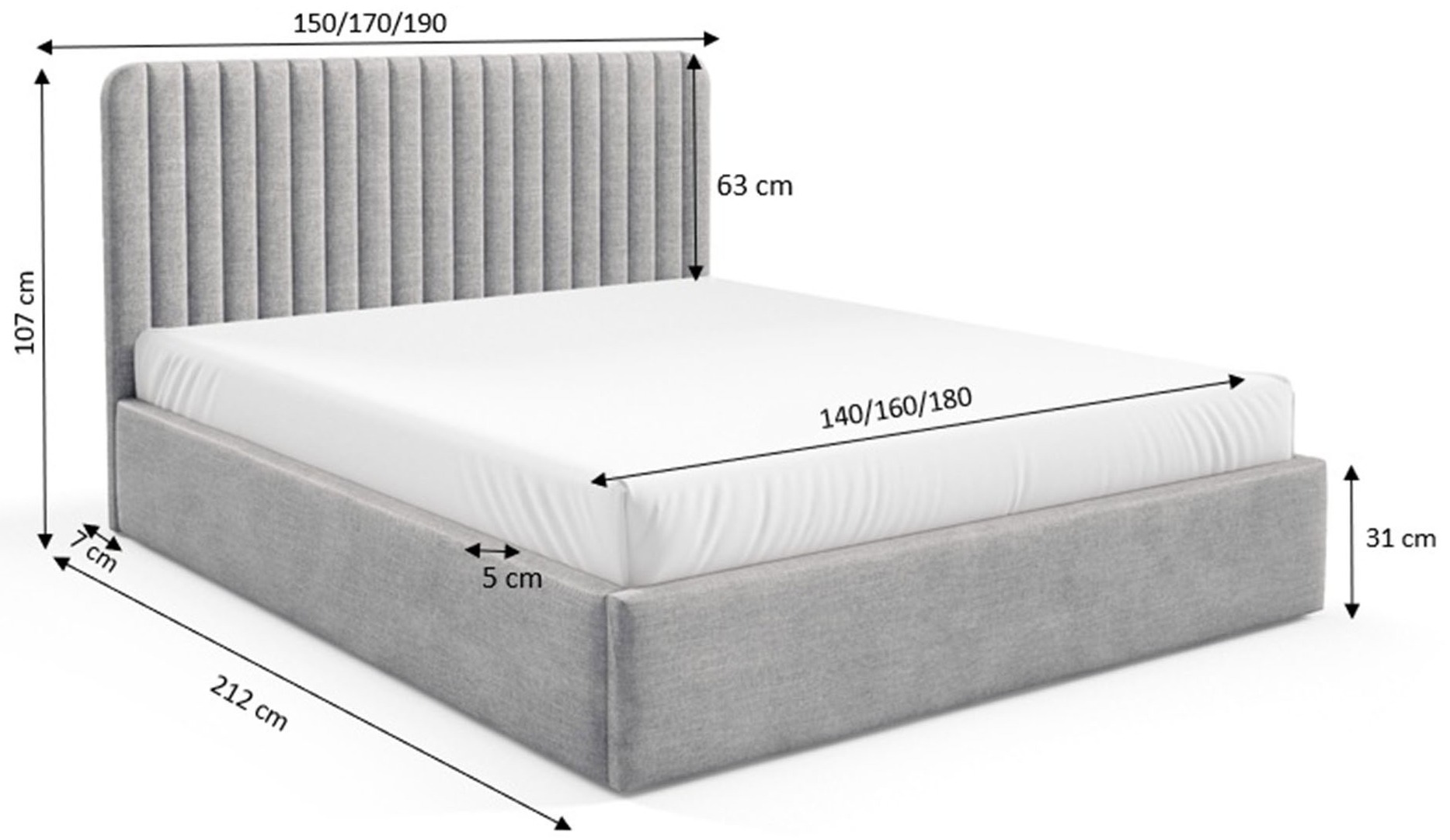 Łóżko tapicerowane z pojemnikiem BEST 2 o wymiarach 140x200 cm