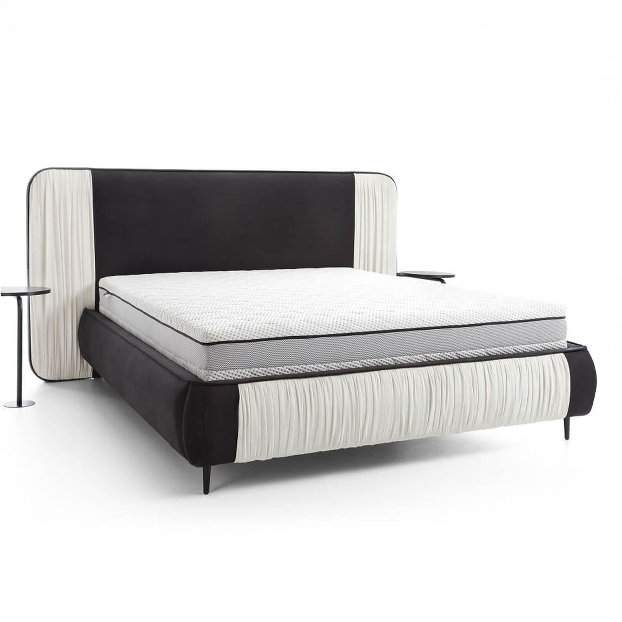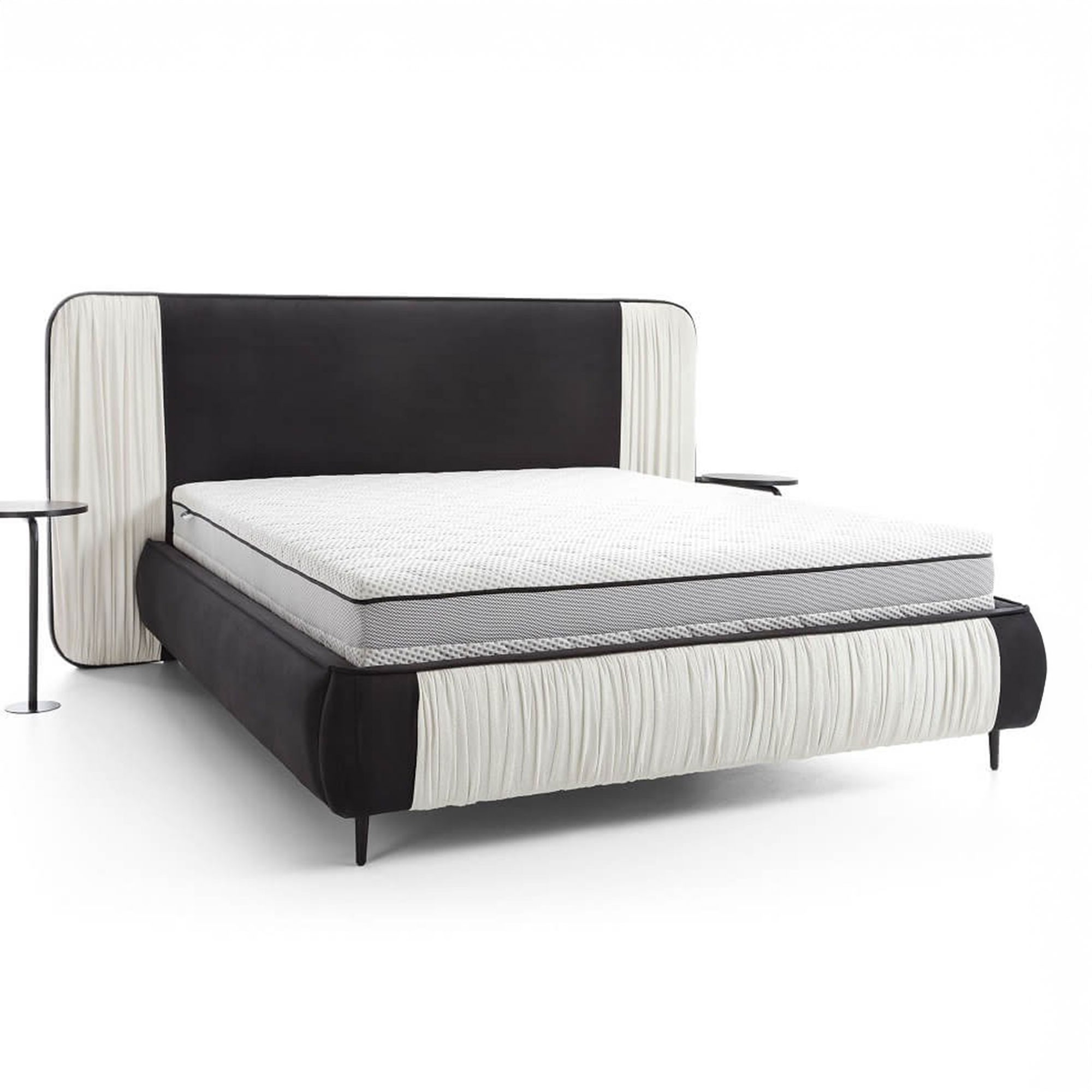Masz dość sypialni, która nie prezentuje się już najlepiej? To czas, żeby dodać jej trochę świeżości! Wyróżnij swoją przestrzeń i dodaj prawdziwego pazura wybierając łóżko CHIARO w rozmiarze 140x200 o szerokim wezgłowiu sięgającym 210cm. To połączenie niepowtarzalnego stylu, piękna i unikatowych marszczeń, które podkreślają nowoczesny design. Niesamowity projekt, który odmieni każdą aranżację i wniesie ciekawy trójwymiarowy efekt wizualny! Ponadczasowa kolorystyka łóżka w odcieniach czerni i bieli to odpowiedź na najnowsze trendy wnętrzarskie i wyjątkowa gra cieni. Mebel opiera się na smukłych, czarnych nóżkach pasujących do kompletnego stylu - są one bardzo praktyczne, pozwalają na zachowanie lekkiej formy, wjazd robota sprzątającego i utrzymanie porządku pod łóżkiem. Piękno łóżka CHIARO uwydatnia charakterystyczne oparcie, które pozwoli na pełen relaks i odprężenie. Świetnym dodatkiem i uzupełnieniem łóżka okazują się także czarne stoliki nocne, które ułatwiają codzienne korzystanie – możemy postawić na nich eleganckie lampki nocne i wyczarować przytulny klimat. To także świetne miejsce ne drobne przedmioty, telefon, książkę czy ulubione zdjęcia. Dzięki solidnej konstrukcji z metalu oraz wykonanie blatu z bejcowanego drewna, boczne dostawki są eleganckie i wytrzymałe. Zastosowanie pojemnika w podstawie łóżka to oczywiście przepis na harmonię i porządek. Mebel oferuje dodatkowe miejsce do przechowywania i organizację tekstyliów, a solidny metalowy stelaż z drewnianymi listewkami skutecznie amortyzują materac i zdecydowanie podnoszą komfort snu.