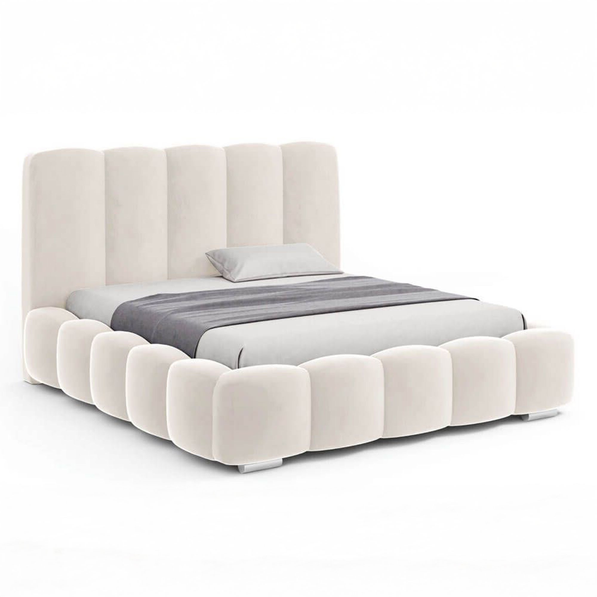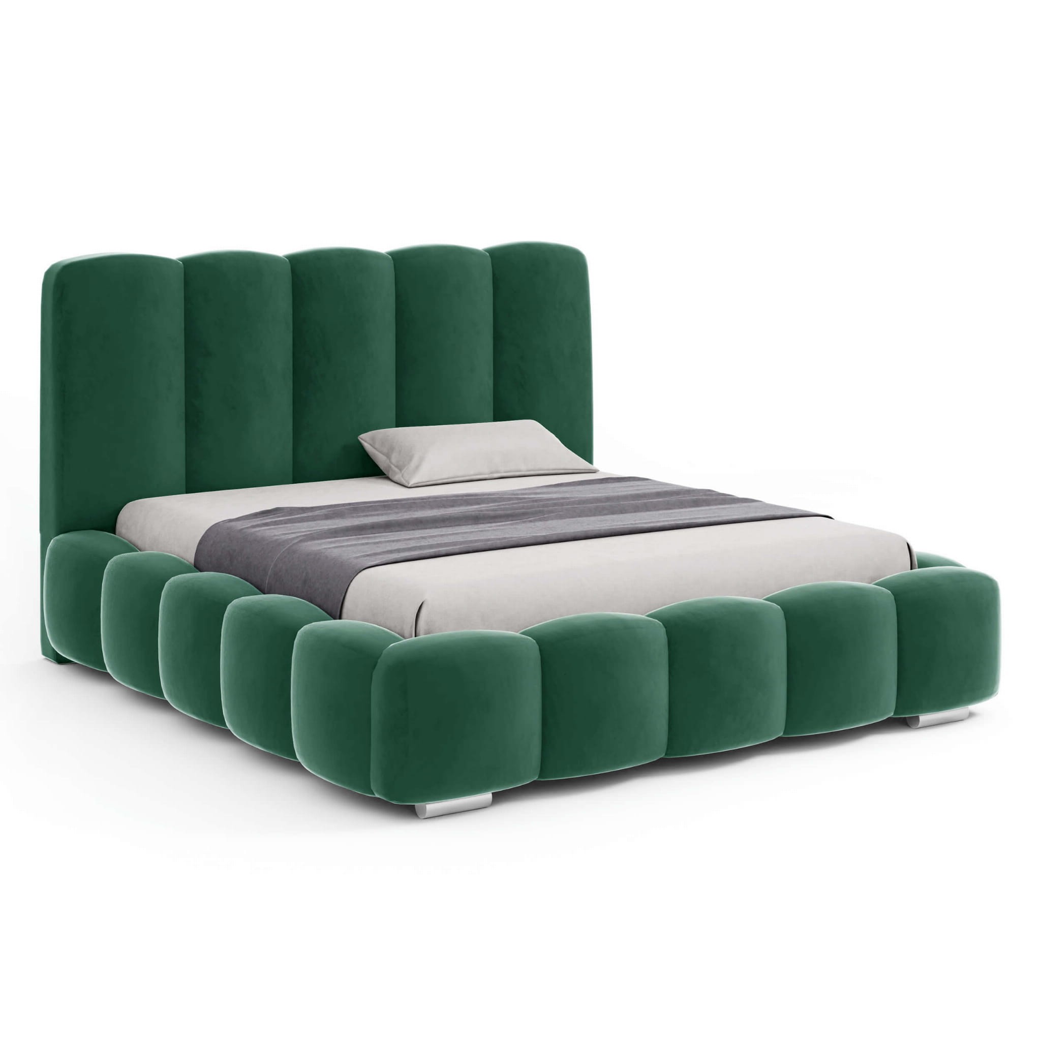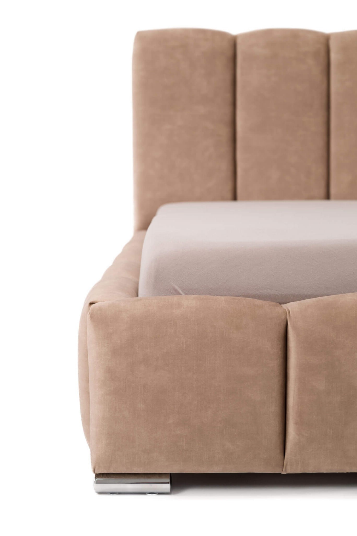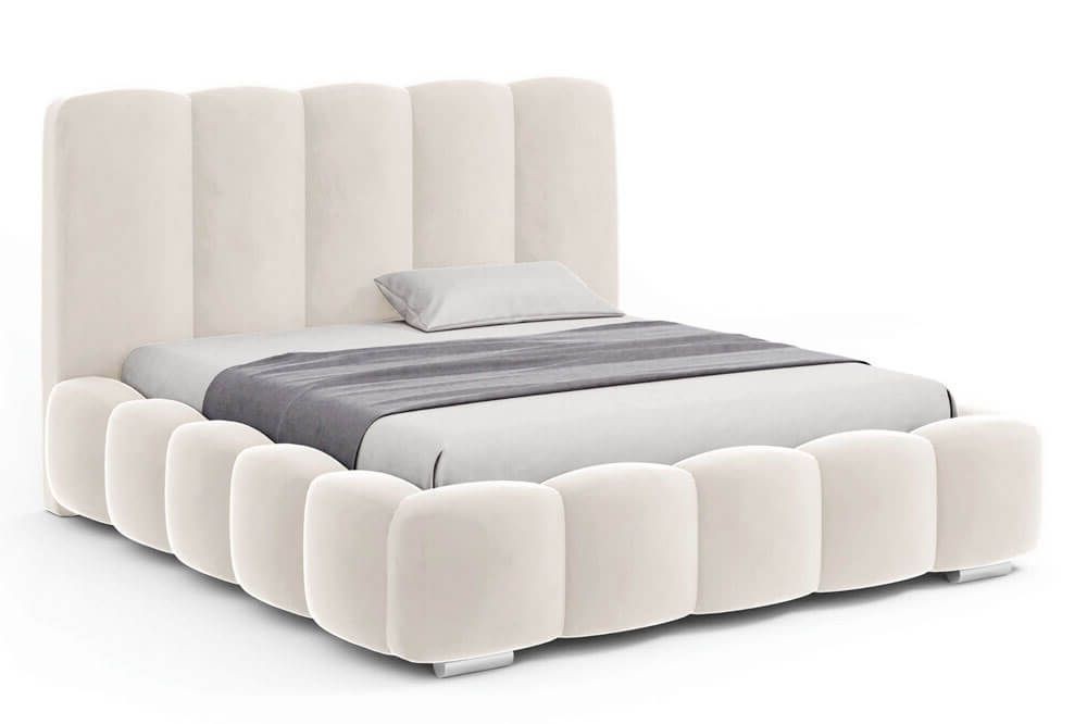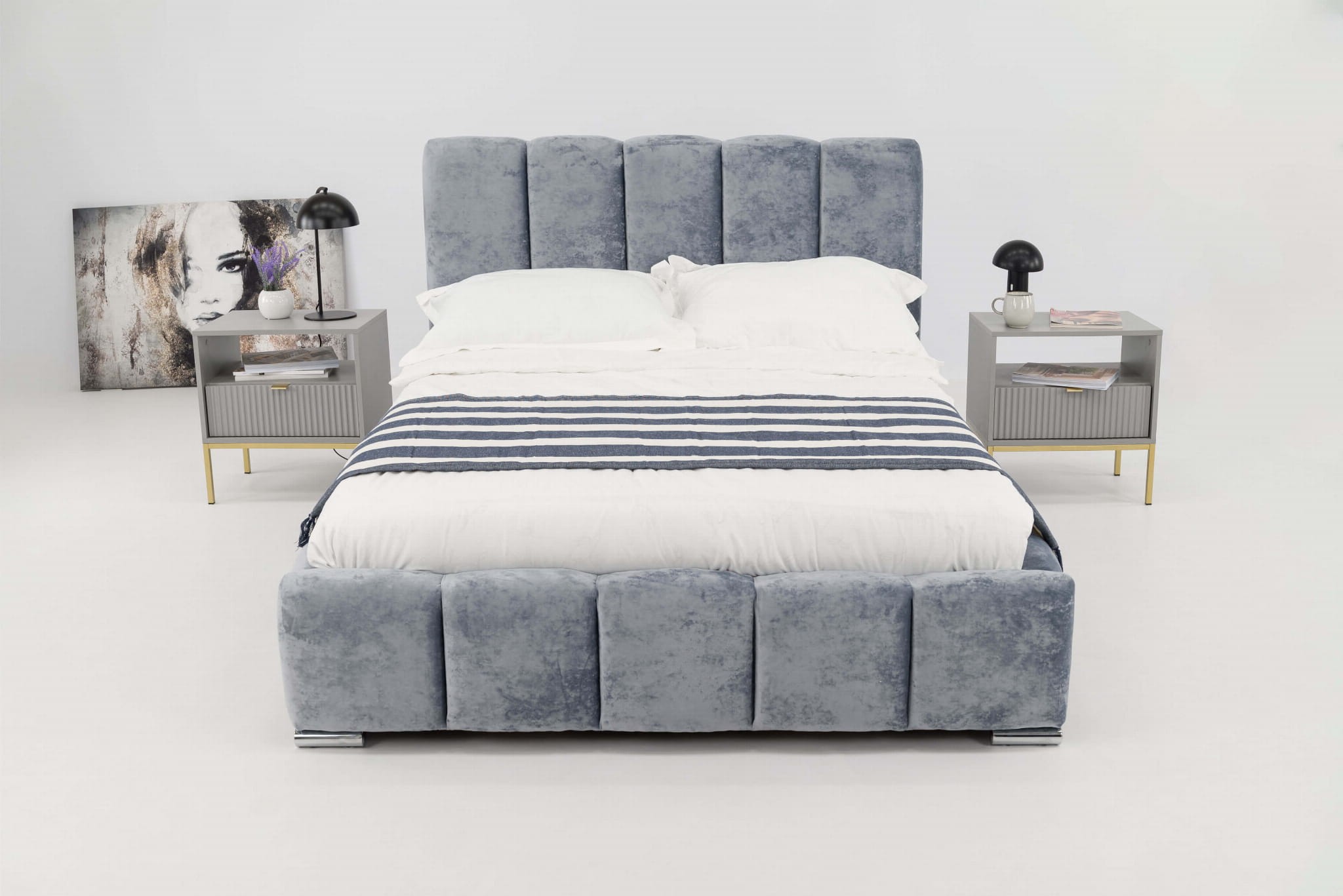 Przepiękne łóżko tapicerowane 160x200 z pojemnikiem, które zachwyca swoim designem! Wysoki zagłówek, który nawiązuje do popularnych paneli ściennych, prezentuje się stylowo, przytulnie, a przy tym stanowi cudowne oparcie podczas wypoczynku w łóżku z dobrą książką czy poranną kawą. Całość umieszczona jest na srebrnych nóżkach, które dodają lekkości, a także nowoczesności. Ramę łóżka wykonujemy z litego drewna oraz płyty laminowanej, dzięki czemu udaje nam się uzyskać naprawdę solidną konstrukcję. Łóżko 160x200 z pojemnikiem CLOUD posiada pojemnik na pościel oraz automat wspomagający otwieranie, dzięki czemu zyskujesz, także mnóstwo miejsce do przechowywania. Tkanina oraz kolor są do wyboru, dzięki czemu możesz idealnie dopasować swoje nowe, stylowe łóżko do aranżacji sypialni.