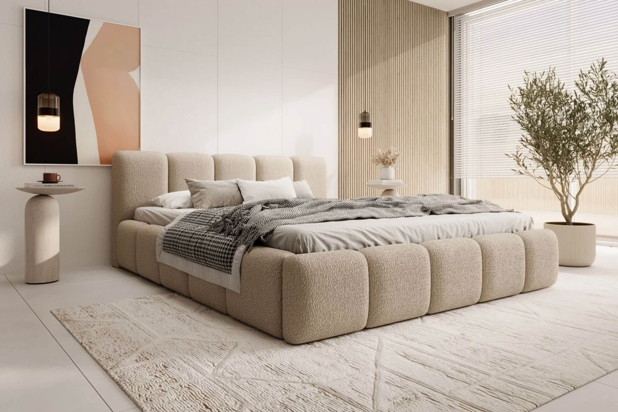 Łóżko tapicerowane z pojemnikiem FERO | 200x200 | Kolor do wyboru
