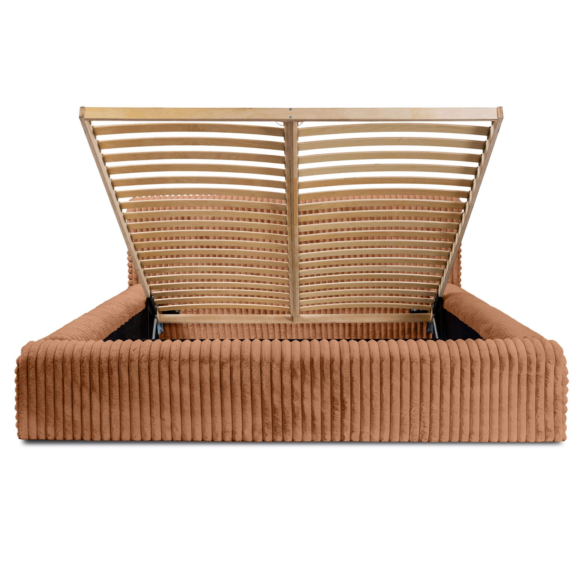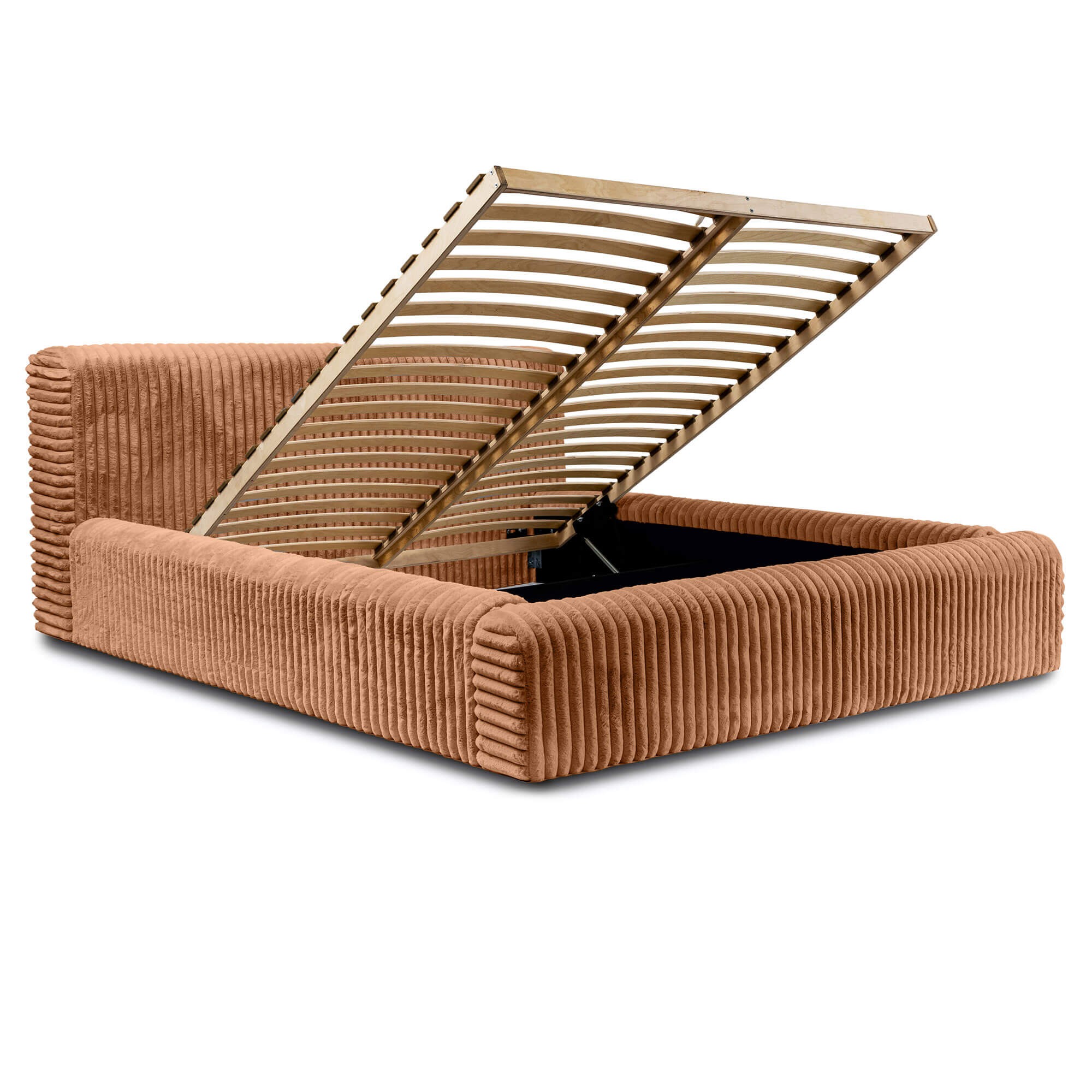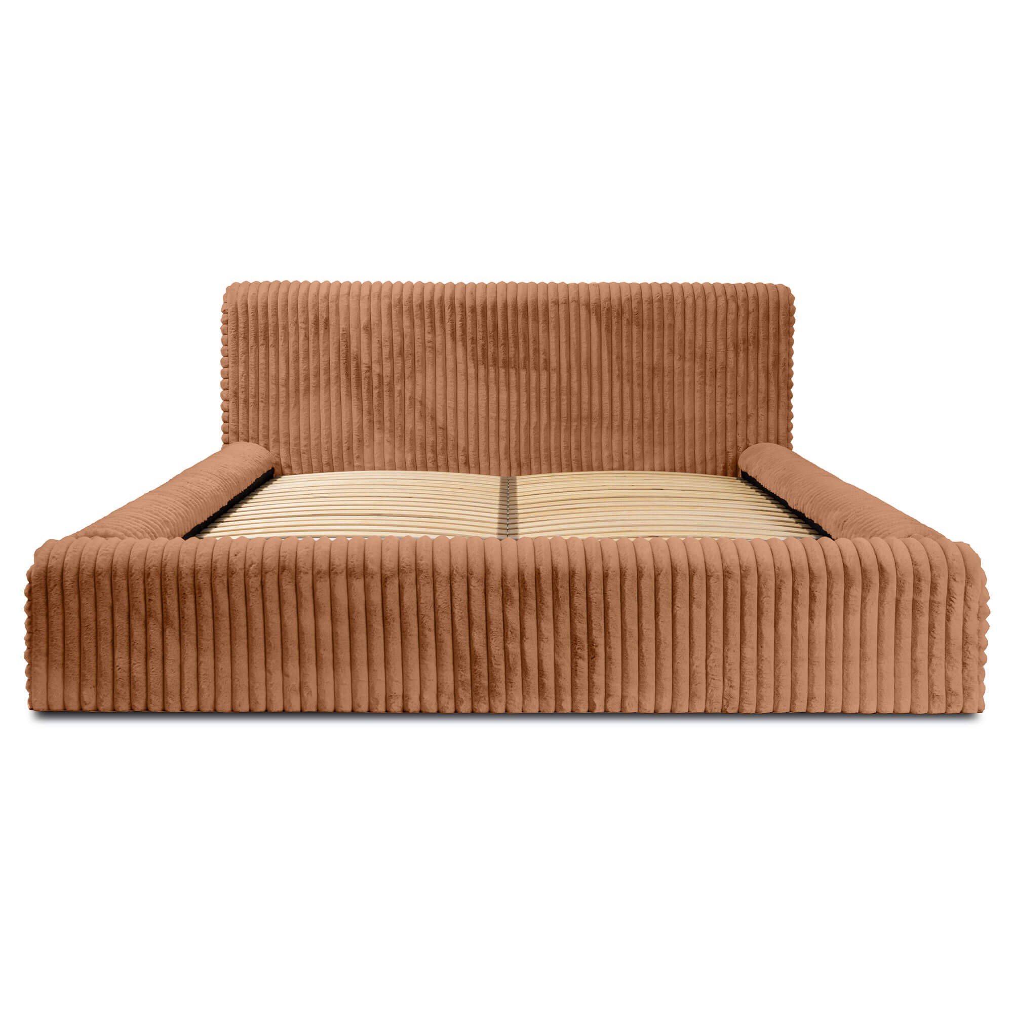 HANA to doskonały wybór dla osób poszukujących prawdziwego komfortu w swojej sypialni. Elegancka, prosta bryła o nowoczesnym wyglądzie i delikatnych zaobleniach, otulona futerkową tkaniną Vito idealnie wpasowuje się w różnorodne style wnętrz. Wybierając spośród licznych wariantów kolorystycznych oraz rodzajów tkanin z łatwością wyczarujesz sypialnię swoich marzeń. Jego kompaktowa konstrukcja, minimalistyczny charakter i duży rozmiar pod materac 180x200 pozwalają na niewątpliwie szybkie i łatwe dopasowanie do różnych przestrzeni. Dzięki solidnej konstrukcji zapewnisz sobie wyjątkowy wypoczynek, a możliwość wyboru koloru i stelaża pozwoli jeszcze dokładniej dopasować mebel do indywidualnych potrzeb. Stelaż pod materac to solidna baza złożona z drewnianej lub metalowej ramy oraz listewek sprężynujących dla dodatkowego komfortu oraz swobodnego przepływu powietrza, co ogranicza zbieranie się kurzu i wilgoci. Automatyczne podnośniki umożliwiają łatwe podnoszenie i opuszczanie materaca, dając łatwy dostęp do pojemnika na pościel, który znajduje się pod stelażem - oferuje on sporo miejsca na zestawy pościeli, koce czy inne przedmioty oraz pozwala skutecznie zaoszczędzić miejsce w sypialni.