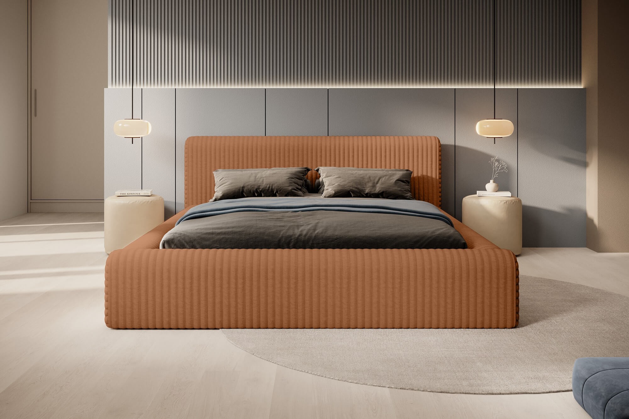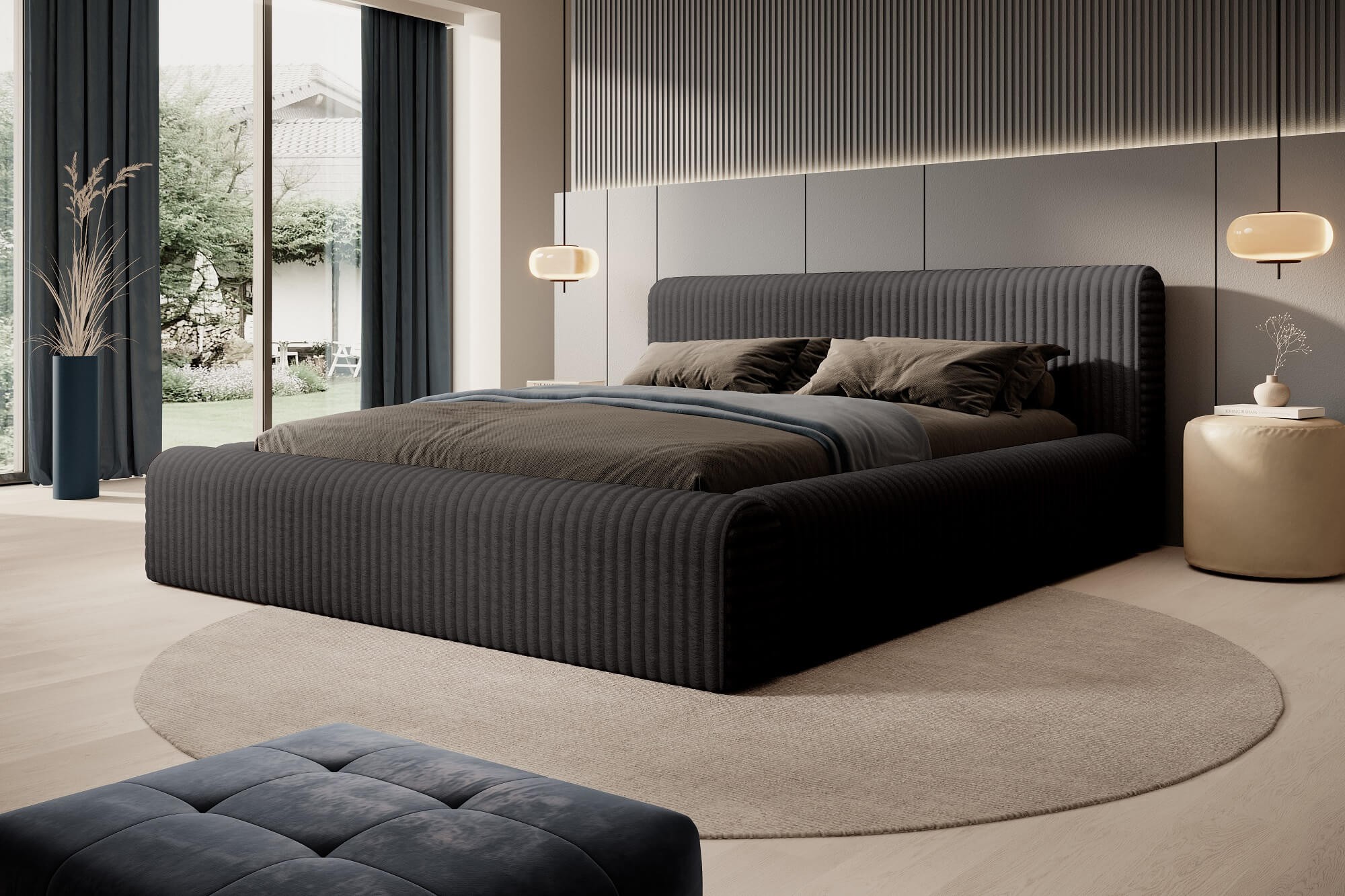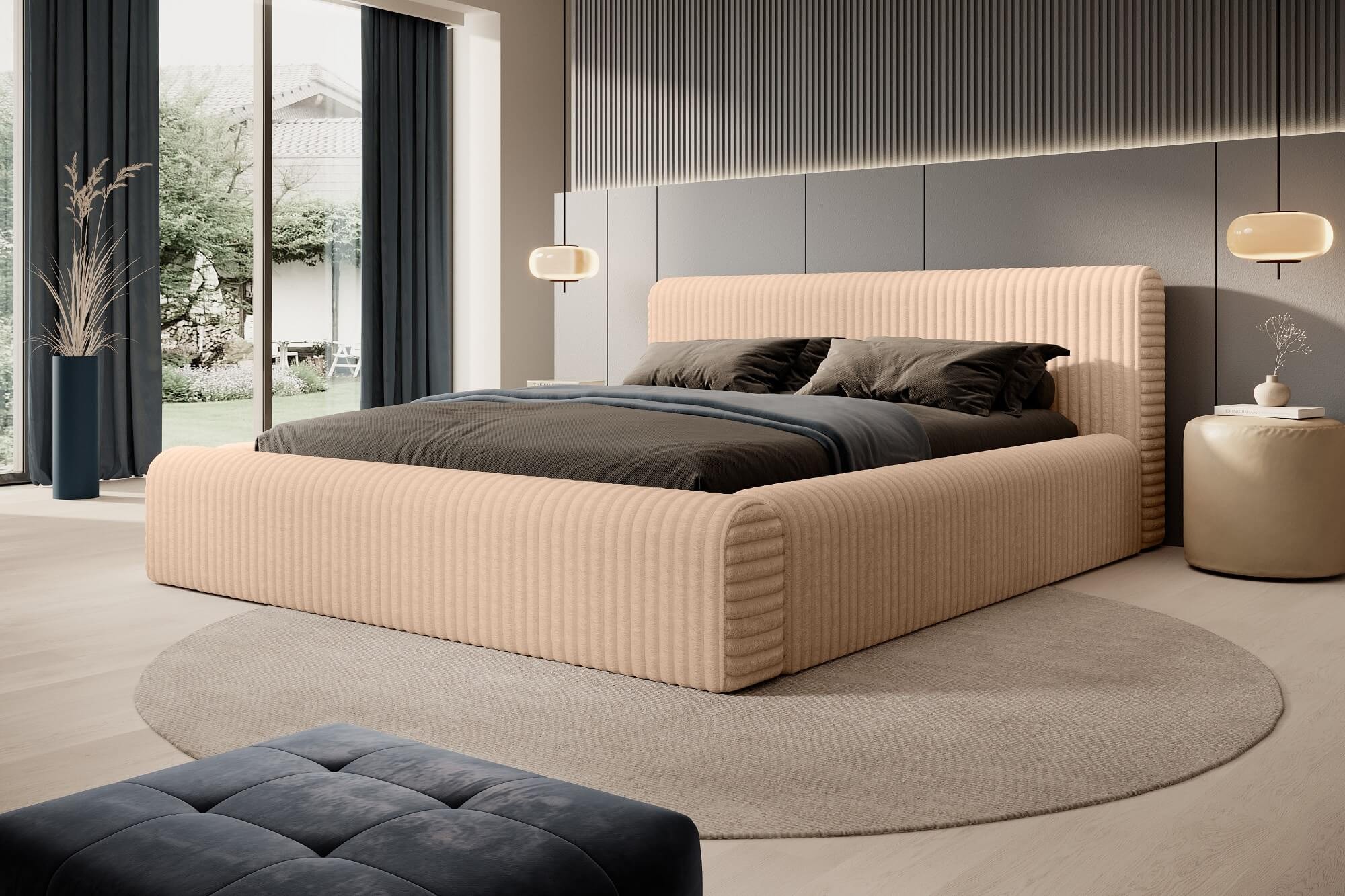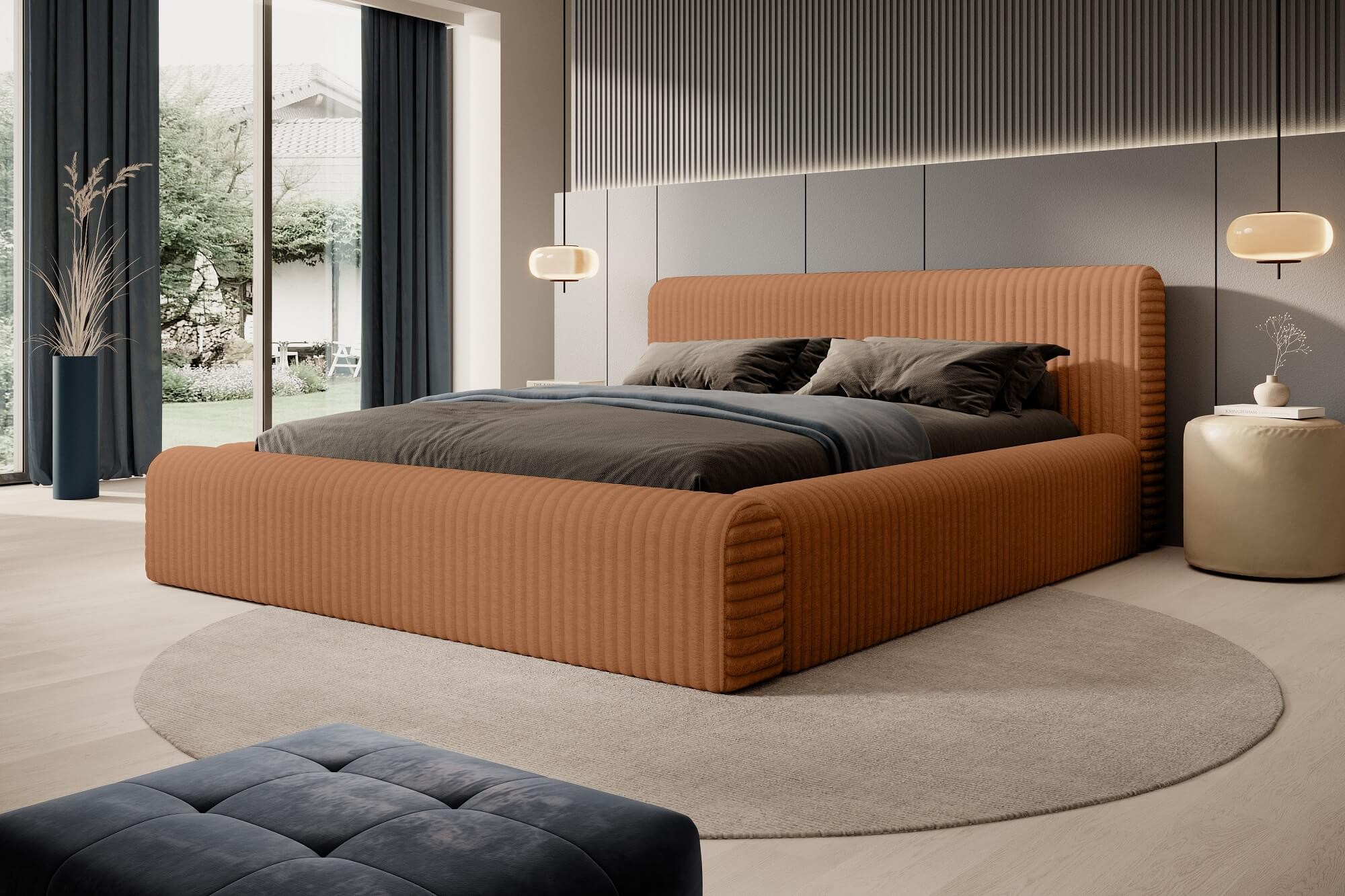 Prześliczne łóżko tapicerowane tkaniną Vito to idealny wybór dla wszystkich, którzy cenią sobie komfort i estetykę. Puszysta tapicerka przypominająca modnych sztruks o szerokich i grubych prążkach nadaje niezwykłej przytulności i lekkości. Jej włókna są gęste i długie, co sprawia, że cała powierzchnia jest bardzo miękka dla ciała, a zarówno oparcie, jak i rama są bardzo wygodne i urokliwe. Całość nadaje sypialni niesamowitego efektu. Wyjątkowa dzianina Vito charakteryzuje się także szerokim wyborem kolorystycznym, co umożliwia idealne dopasowanie łóżka do aranżacji i stylu sypialni.