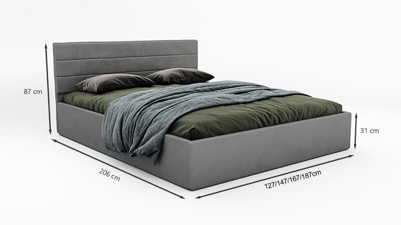 Nowoczesne łóżko 160x200 oferujemy w komplecie z drewnianym stelażem (istnieje możliwość dopłaty za zmianę na metalowy), ale to właśnie Ty zadecydujesz o jego kolorze i tkaninie obiciowej. W taki sposób doskonale dopasujesz mebel do aranżacji i stylu pomieszczenia.