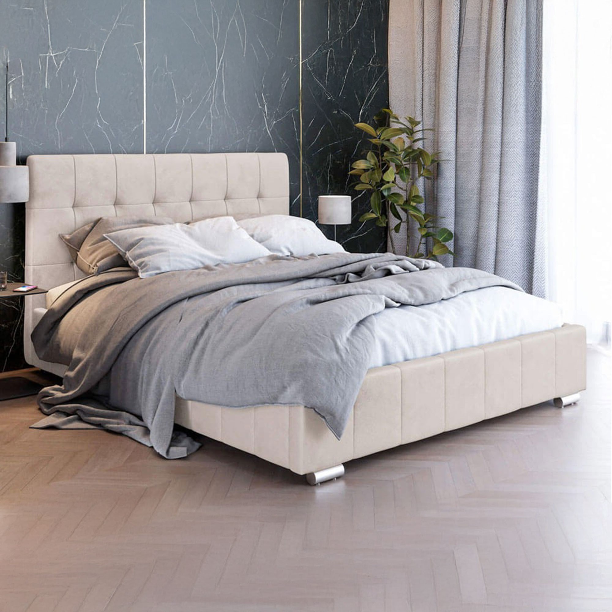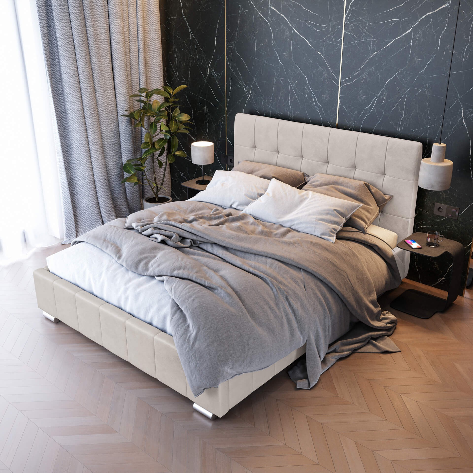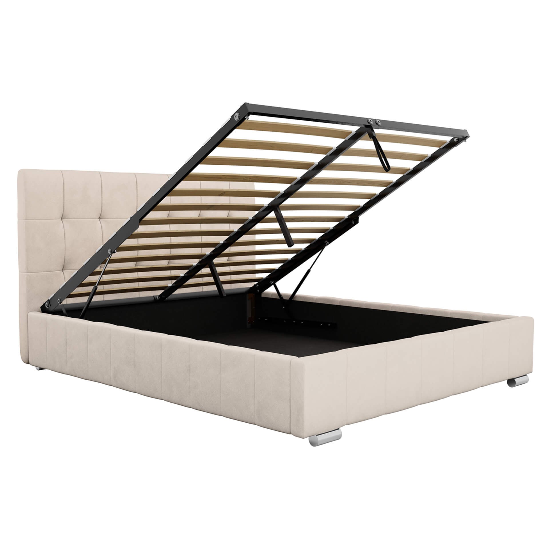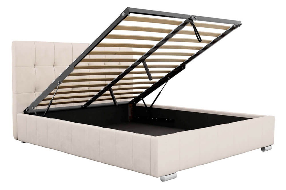 Łóżko tapicerowane z pojemnikiem LB-150P | 140x200 | Welur | Beżowy