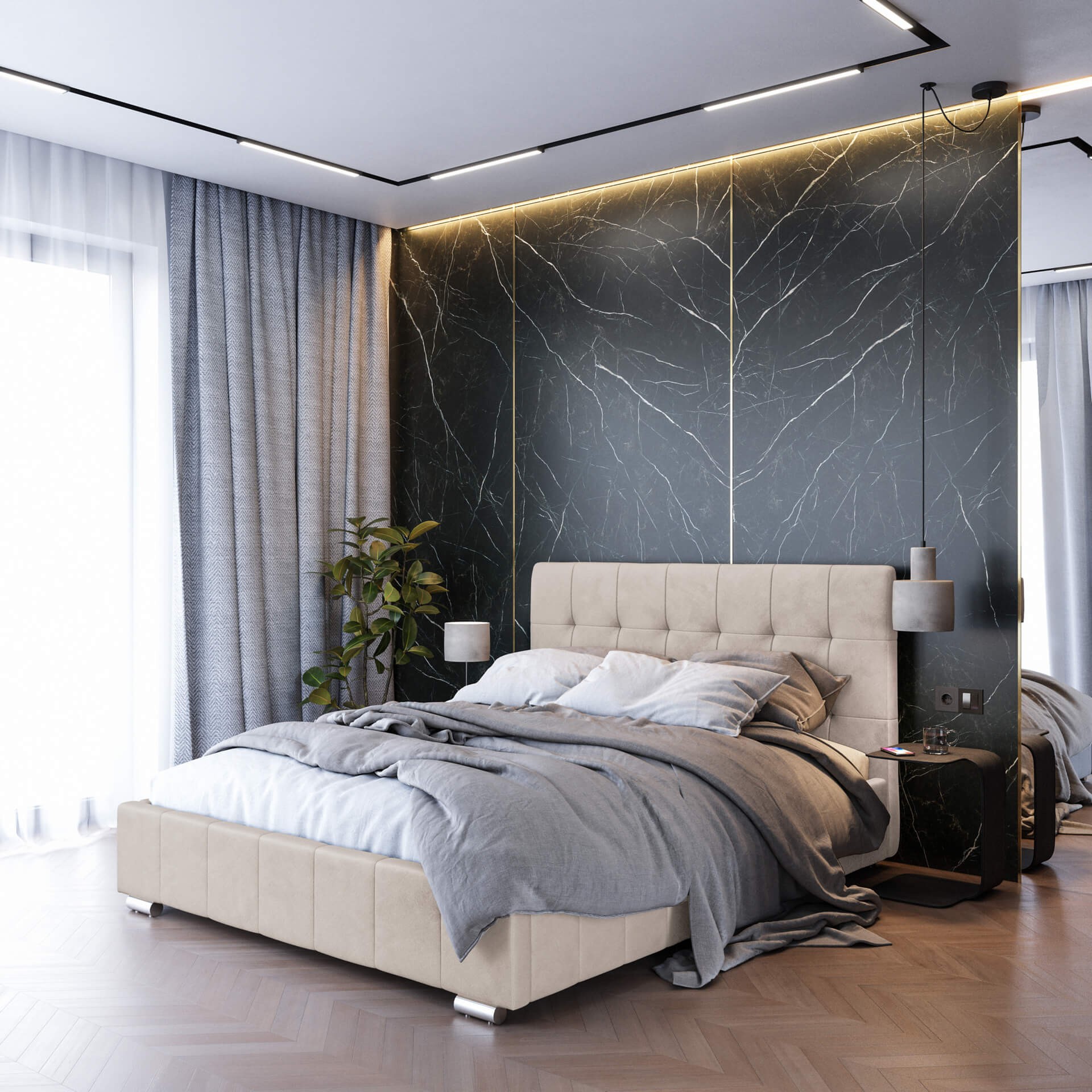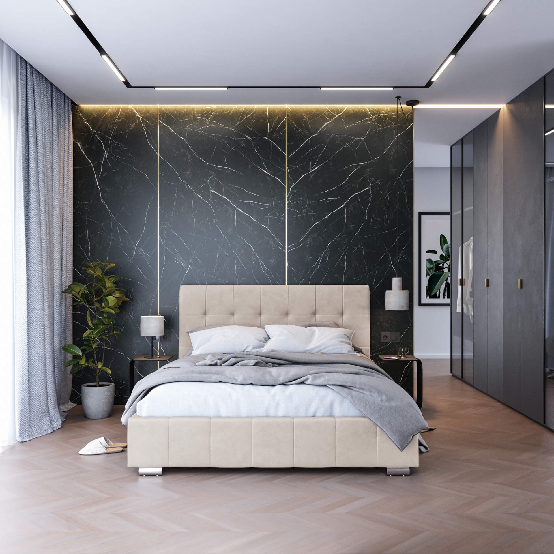 Subtelny odcień beżu prezentuje się bardzo lekko, harmonijnie, dzięki czemu łóżko welurowe stanie się delikatnym i przytulnym akcentem w sypialni. W takim otoczeniu cudownie się wypoczywa, kiedy barwy sprzyjają wypoczynkowi i skupieniu i mocno nie ingerują w wystrój, a więc również w nasze samopoczucie.