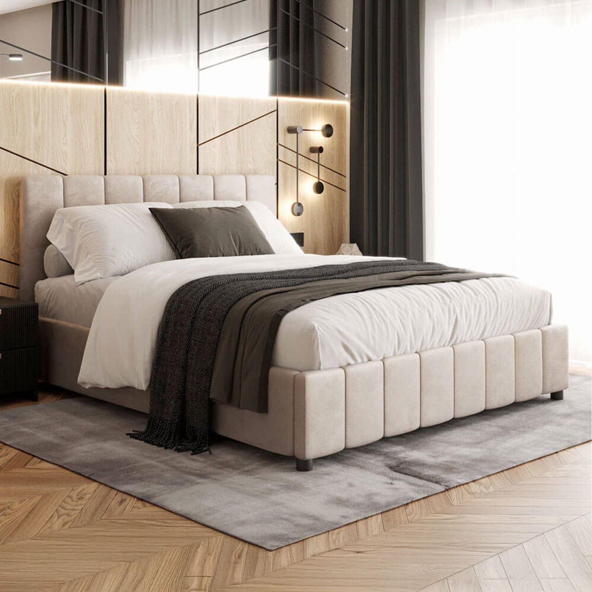 Jeżeli łóżko to ten element, którego zdecydowanie brakuje Ci w sypialni, nie czekaj i zdecyduj się od razu na proponowany przez nas tutaj wariant. Prezentowane łóżko 140x200 wyposażone w pojemnik zachwyca swoją tkaniną Velutto, a także bardzo atrakcyjnym wyglądem. Dzięki temu to łóżko oprócz spełnienia swoich podstawowych funkcji jest także fantastyczną ozdobą każdej sypialni, w której zostanie zaaranżowana. To mebel na lata, którego codzienne użytkowanie będzie naprawdę przyjemne. Nasi klienci mają możliwość dopasowania dla siebie interesującego koloru, tutaj konkretnie, przygotowaliśmy wersję beżową, która pomimo upływu czasu, wciąż cieszy się bardzo dużym zainteresowaniem. Wysoki zagłówek i odpowiednie wyprofilowanie tego łóżka sprawia, że codzienne korzystanie z niego jest bardzo komfortowe i maksymalnie wygodne. Ten konkretny wariant sprawdzi się bardzo dobrze zarówno w mniejszych, jak i większych sypialniach.