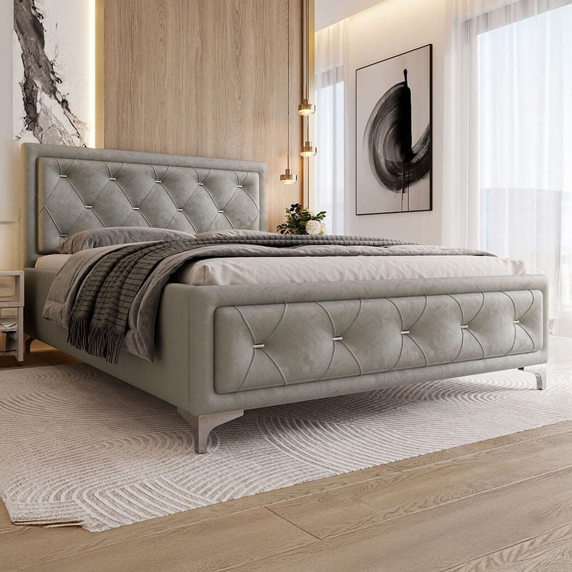 • Stylowy, pikowany zagłówek oraz przód łóżka