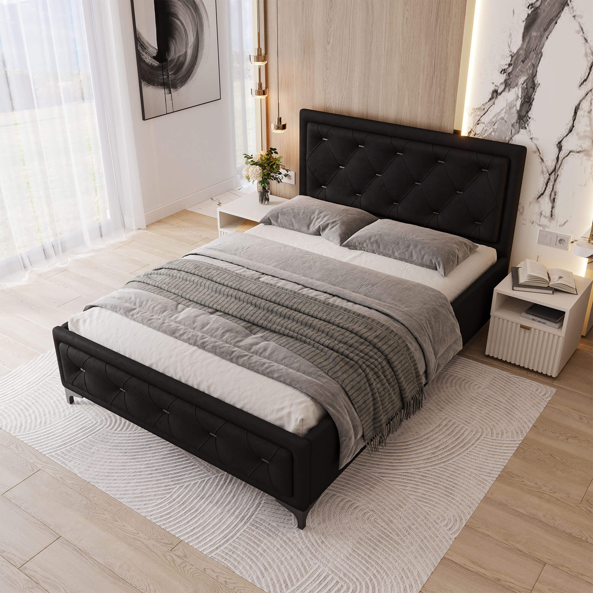 • Stylowy, pikowany zagłówek oraz przód łóżka