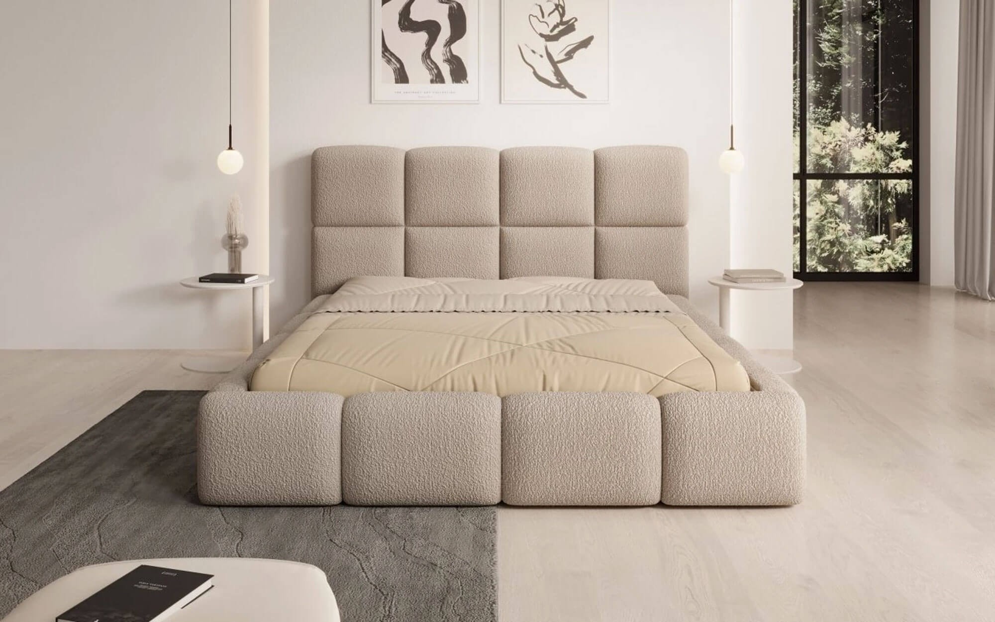 Łóżko tapicerowane z pojemnikiem MERIDA 160x200 to stylowy i komfortowy mebel, który doskonale wkomponuje się w nowoczesną sypialnię. Wysokie, miękkie wezgłowie o wysokości 110 cm gwarantuje wygodne podparcie podczas czytania, oglądania filmów czy relaksu. Subtelnie zaokrąglone krawędzie i precyzyjne wykończenie sprawiają, że łóżko prezentuje się elegancko i ponadczasowo. Model MERIDA wyposażony jest w pojemny schowek na pościel, który otwiera się lekko dzięki mechanizmowi sprężynowemu. Głęboka komora zapewnia dużo miejsca do przechowywania, co pozwala utrzymać porządek w sypialni. Stelaż wykonany ze sklejki drewnianej zapewnia trwałość oraz cyrkulację powietrza, chroniąc materac przed wilgocią i zapewniając komfortowy sen. Łóżko MERIDA 160x200 to połączenie eleganckiego designu, wygody i solidności. Polskie wykonanie gwarantuje wysoką jakość i trwałość, dzięki czemu łóżko posłuży przez długie lata, zapewniając komfortowy wypoczynek i estetyczny wygląd wnętrza.