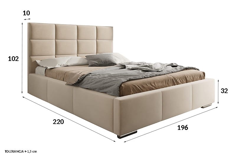 | Wymiary: | 220x196x102 cm (Dł. x szer. x wys. cm) Wysokość boku: 32 cm Grubość boku: 8 cm Grubość frontu: 8 cm Grubość zagłowia: 10 cm Tolerancja: +-1,5cm |