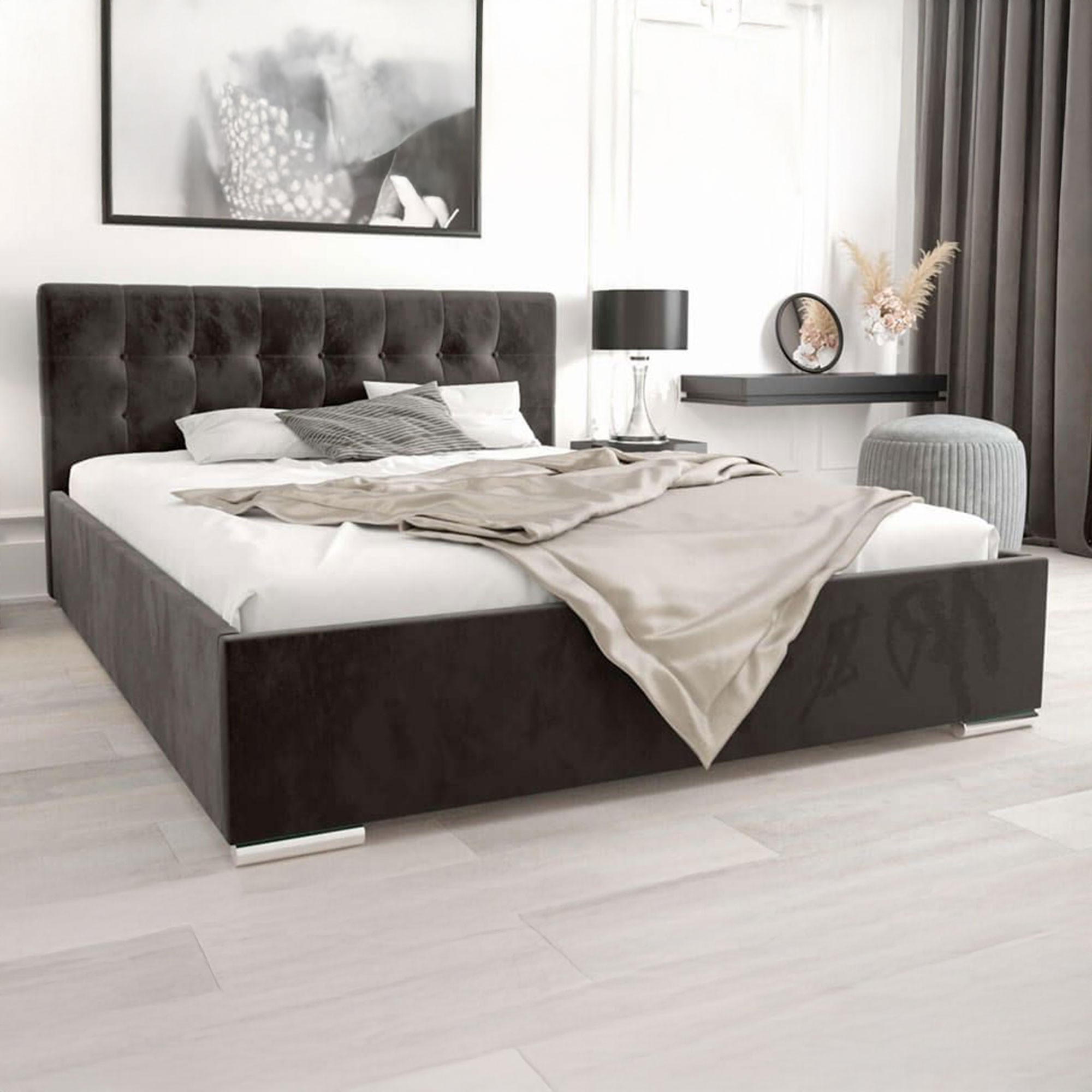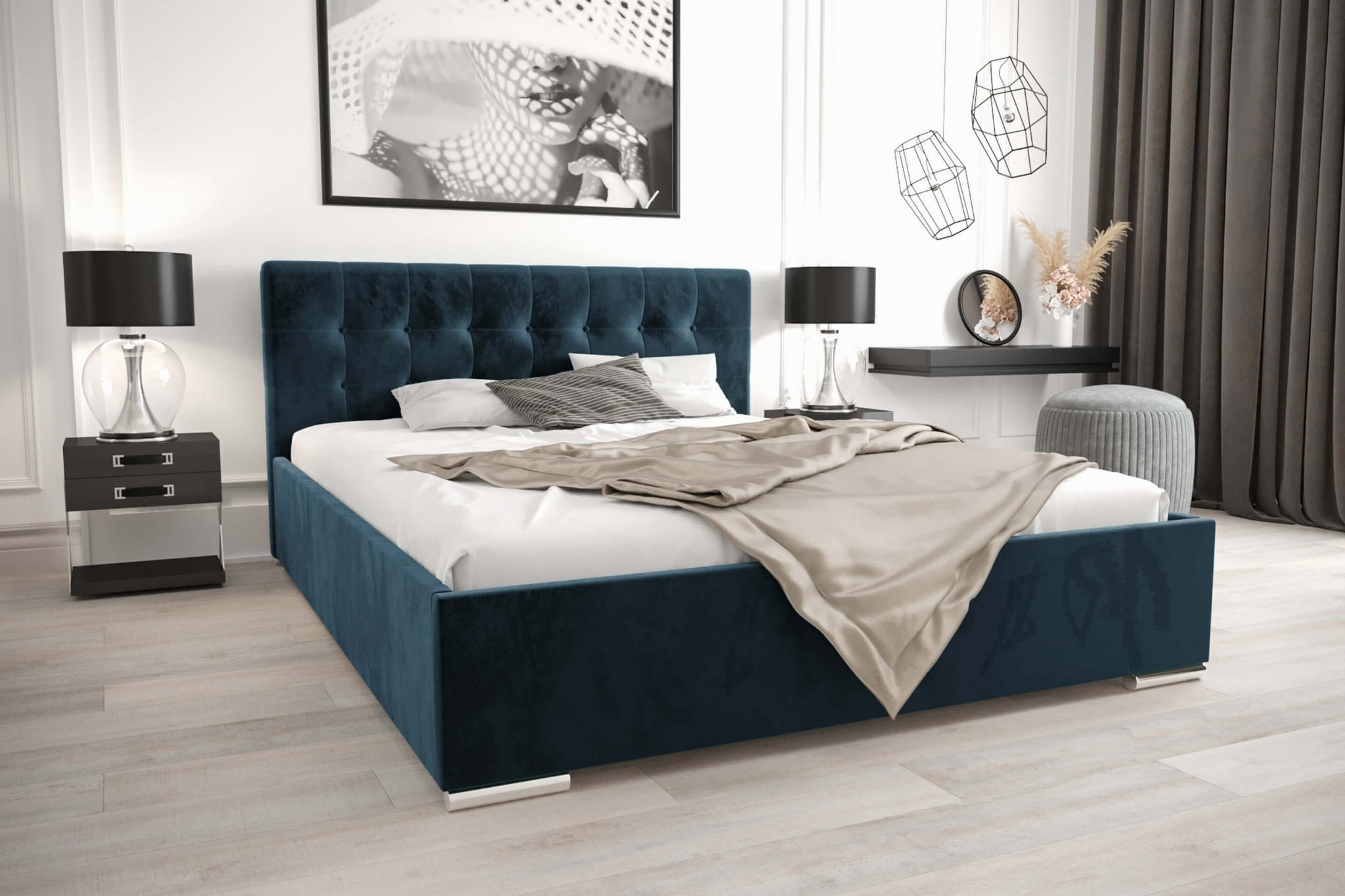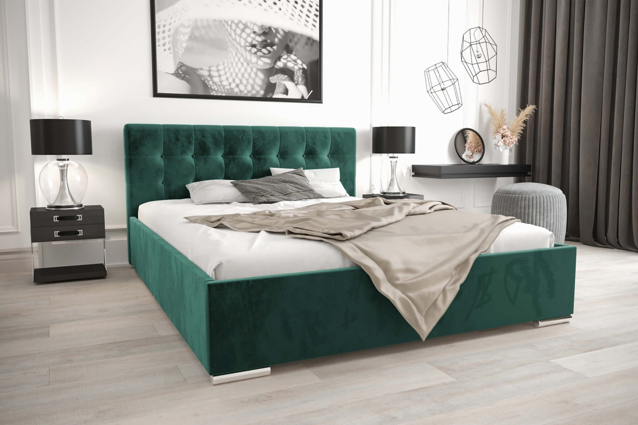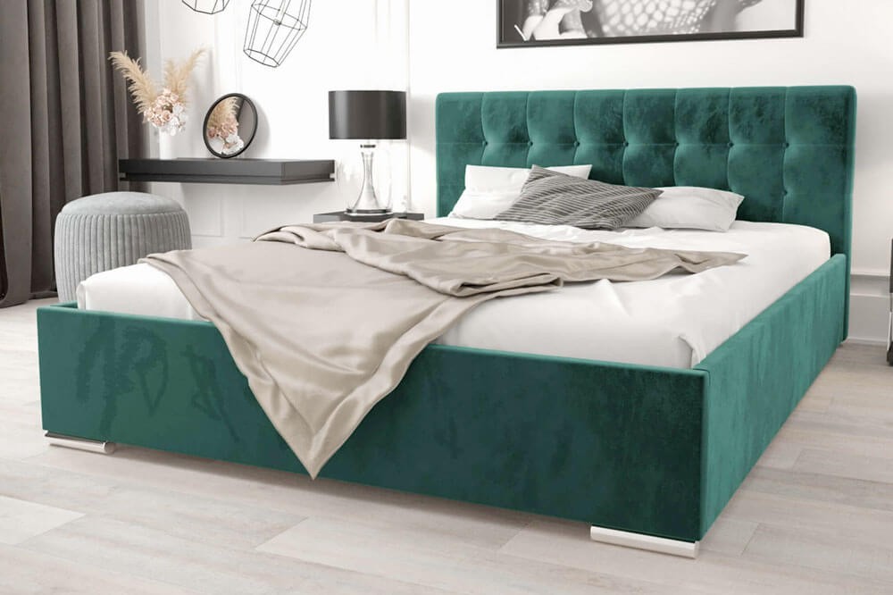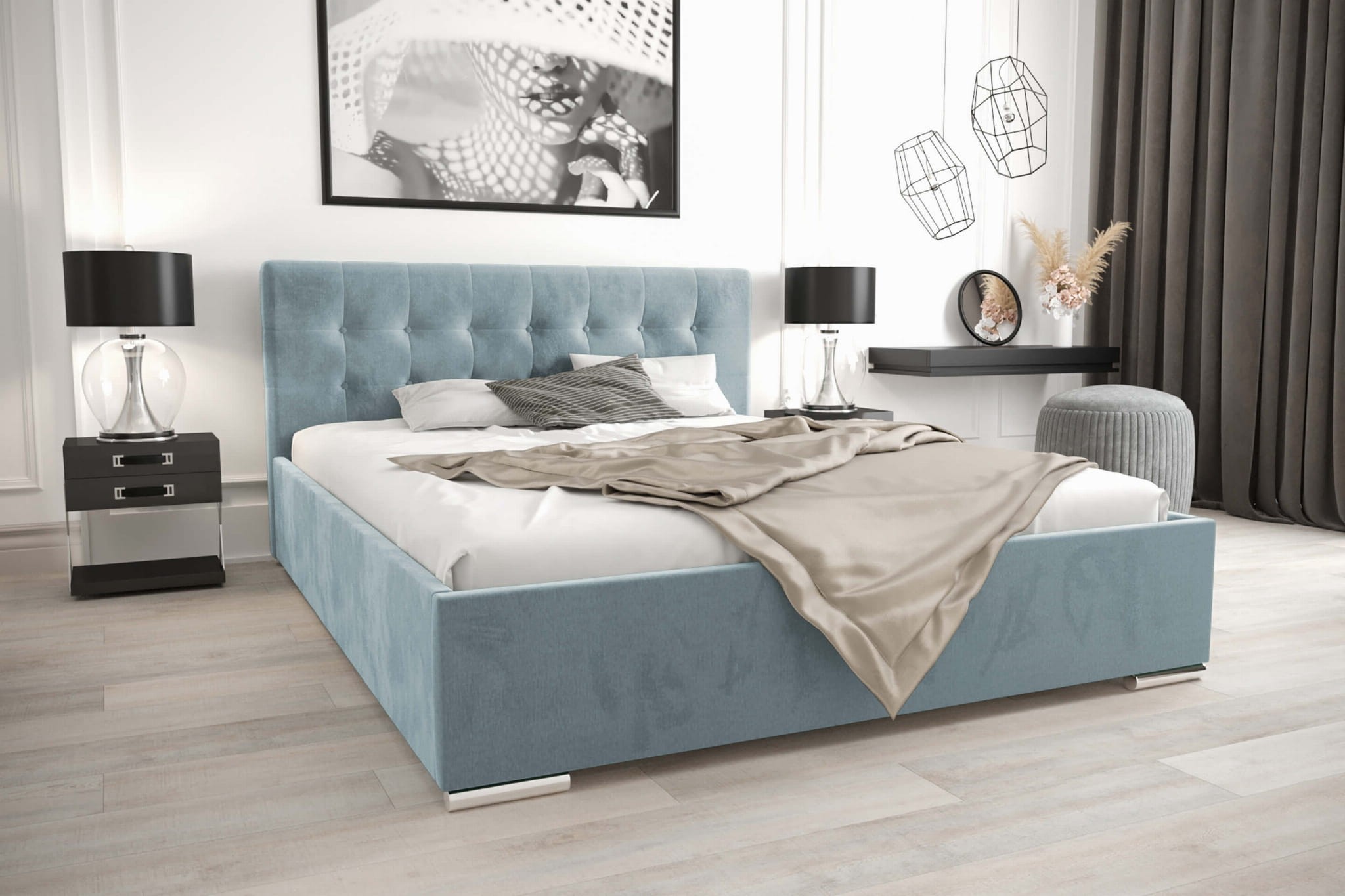 Połączenie klasycznego i nowoczesnego stylu to gwarancja wyjątkowego wyglądu mebli. Dzięki tego rodzaju rozwiązaniu są one uniwersalne i pasują do wnętrz urządzonych w różnych nurtach. Przykładem jest łóżko MISTRAL w całości tapicerowane wysokiej jakości tkaniną Monolith dostępną w wielu opcjach kolorystycznych. Zieleń doskonale sprawdzi się w eleganckich sypialniach, z kolei szare łóżko to doskonały pomysł do nowoczesnych wnętrz. MISTRAL o wymiarach 120x200 wspaniale zaprezentuje się w niedużej sypialni. Na uwagę zasługuje wspaniałe połączenie prostej bryły i pikowanego zagłówka, który zapewnia nie tylko wygodę podczas siedzenia, ale jest także ozdobą wnętrza. Dodatkowym atutem jest praktyczny pojemnik na pościel, dzięki któremu tekstylia domowe mają swoje miejsce i są zabezpieczone przed kurzem oraz zabrudzeniami. Elegancki wygląd, trwałość i funkcjonalność – prezentowany model to wyjątkowa propozycja do Twojej sypialni.