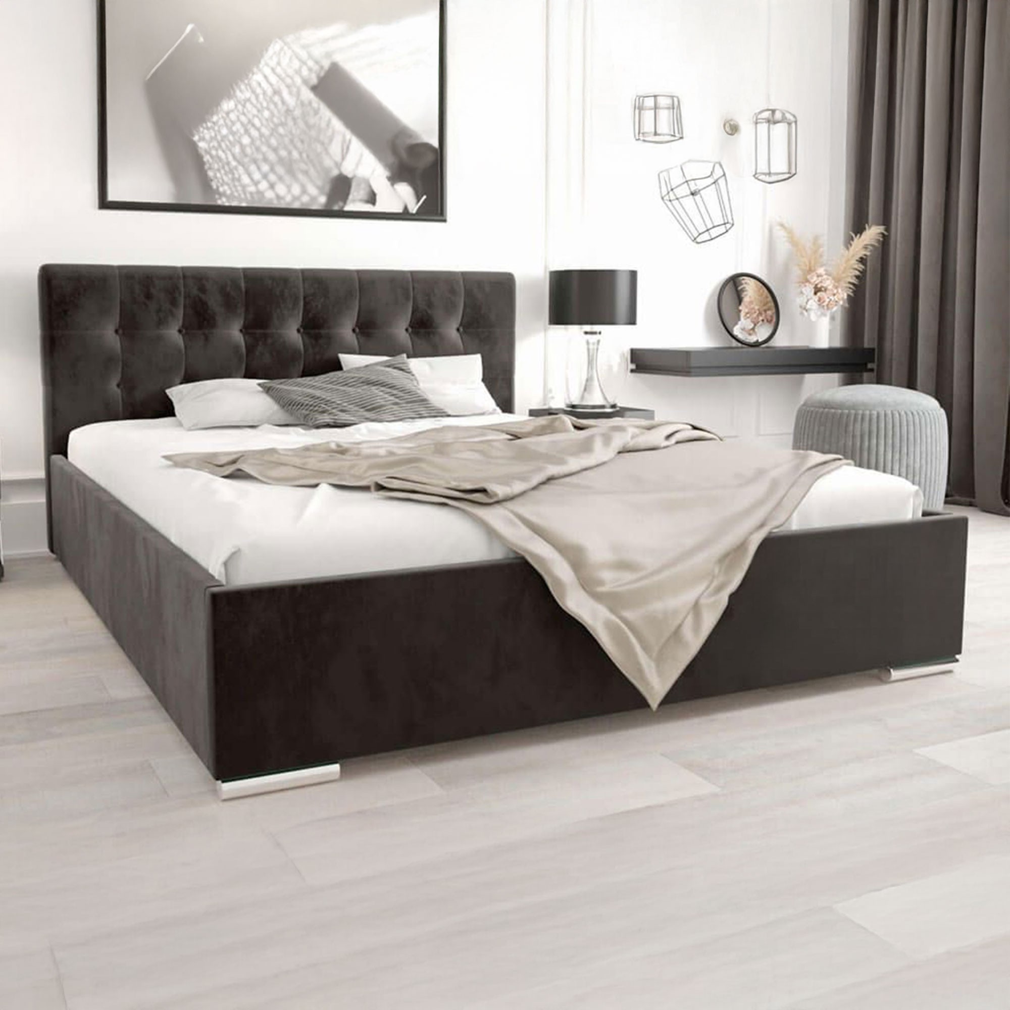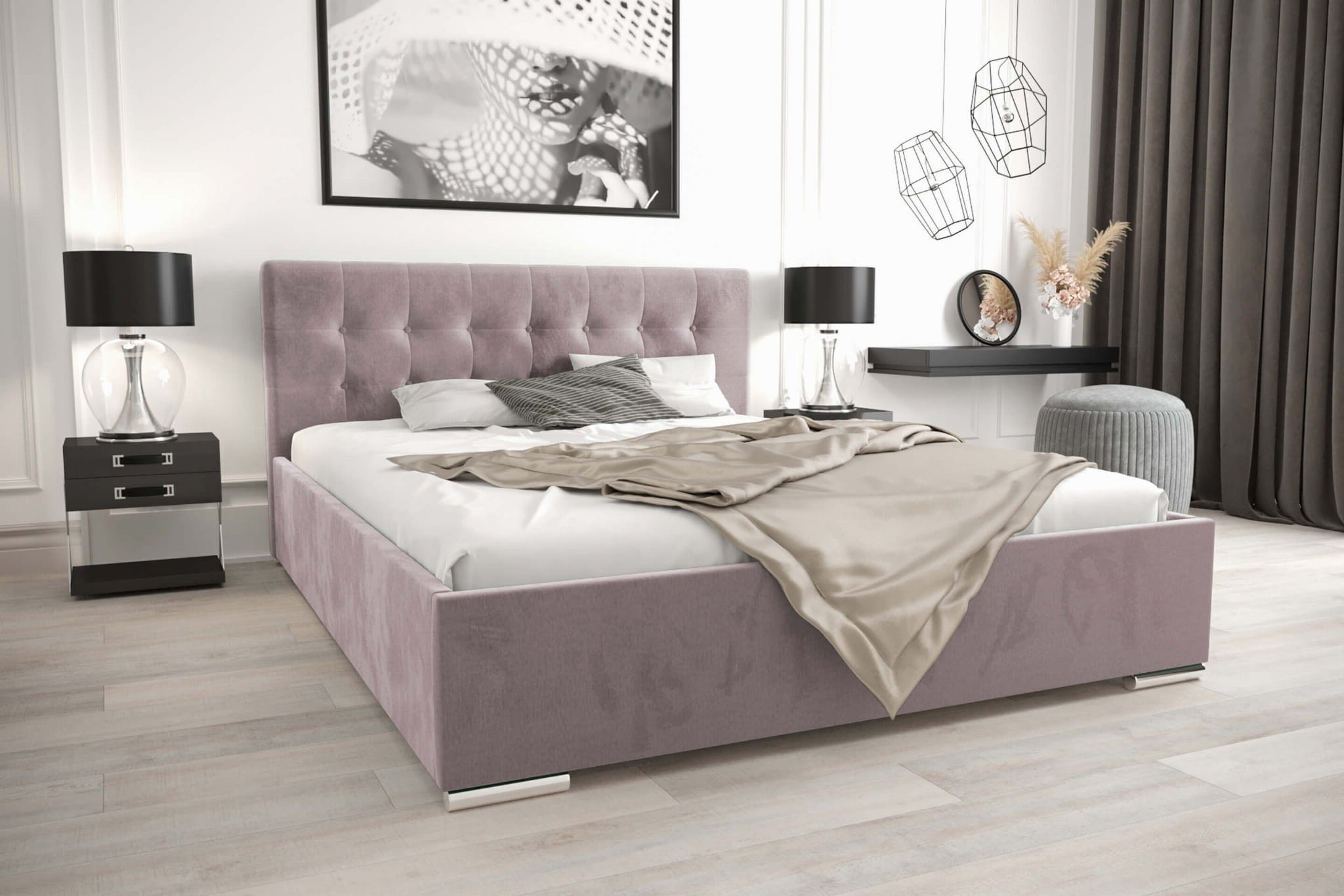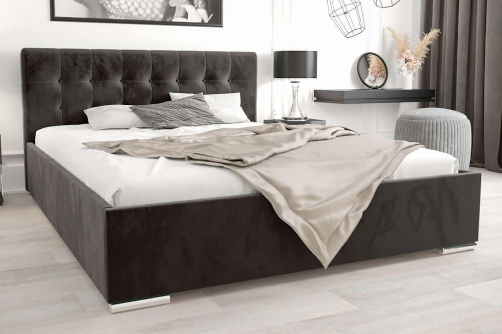 Łóżko tapicerowane 140x200 na chromowanych nóżkach – piękny, komfortowy model z wygodnym zagłówkiem, powstający na indywidualne zamówienie klienta w wybranym kolorze, dzięki czemu z pewnością doskonale sprawdzi się w każdej sypialni, gdzie oprócz wygody liczy się również design i wspaniała, subtelna stylistyka. Kompaktowy rozmiar 140x200 idealny dla dwóch osób, ale nie na tyle duży, by przytłoczyć sypialnię, a także pakowny pojemnik na pościel z twardym dnem to kolejne atuty modelu MISTRAL. Z pewnością docenisz je, gdy zechcesz urządzić niewielką sypialnię, gdzie każdy centymetr ma ogromne znaczenie. Pojemnik na pościel pomoże Ci przechowywać niezbędne przedmioty w sypialni. Podczas zakupu istnieje możliwość wyboru rodzaju stelaża.