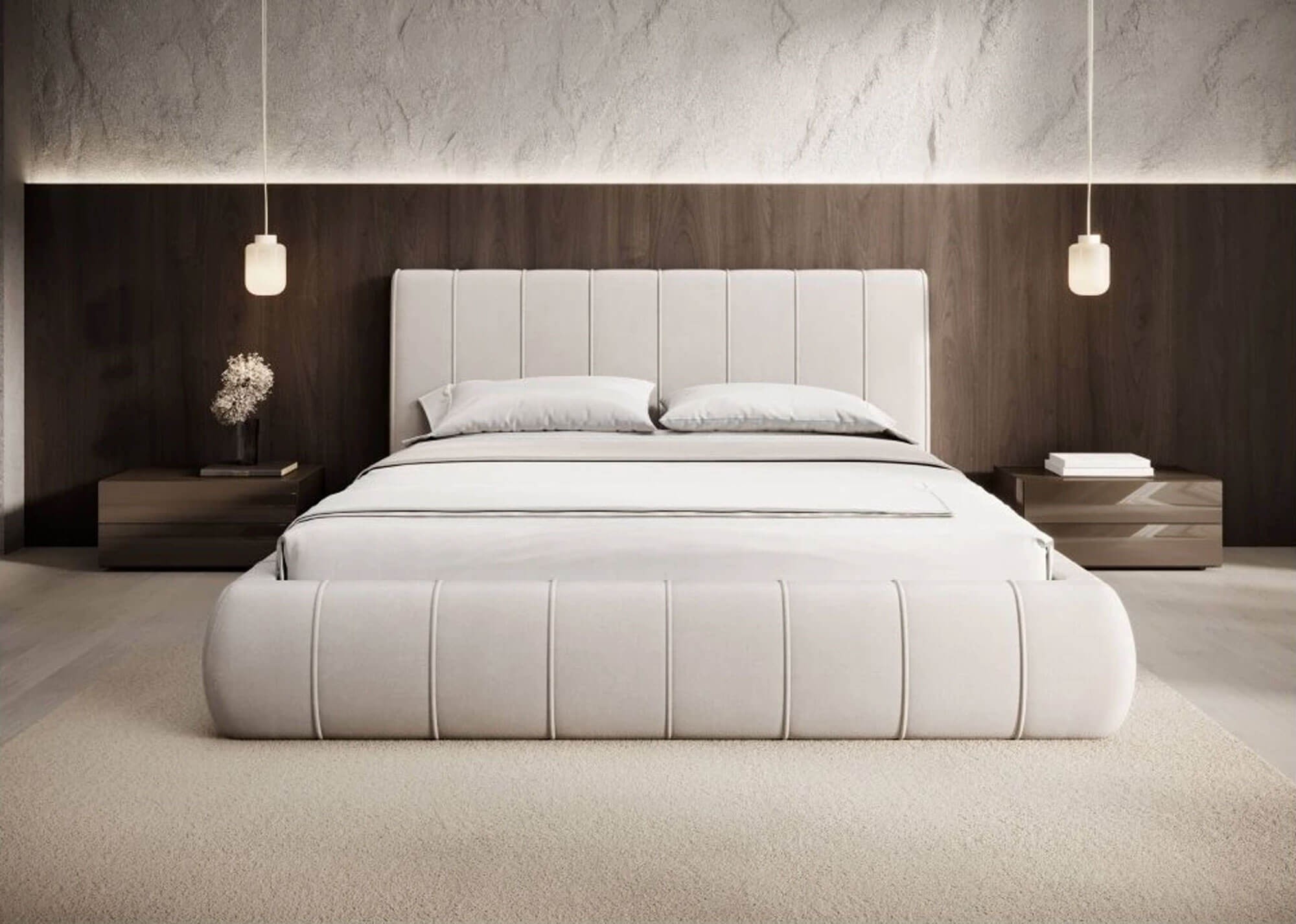 Łóżko tapicerowane MOLLY to elegancki i praktyczny wybór do każdej sypialni. Łączy w sobie nowoczesny wygląd z funkcjonalnością, dzięki czemu doskonale pasuje do współczesnych aranżacji wnętrz. Solidna konstrukcja z drewna i płyty meblowej gwarantuje trwałość, a efektowny zagłówek nadaje całości wyjątkowego charakteru. Dzięki wbudowanemu pojemnikowi na pościel zyskujesz dodatkowe miejsce do przechowywania, a mechanizm podnoszenia sprawia, że jego otwieranie jest lekkie i wygodne. Tapicerowane wykończenie, dostępne w różnych kolorach i fakturach, pozwala dopasować łóżko do indywidualnego stylu wnętrza. Łóżko MOLLY to połączenie elegancji, komfortu i solidnego wykonania. Powstało z myślą o osobach, które cenią jakość, estetykę i praktyczne rozwiązania. Polski producent zadbał o każdy detal, tworząc mebel, który posłuży przez wiele lat i będzie ozdobą każdej sypialni.