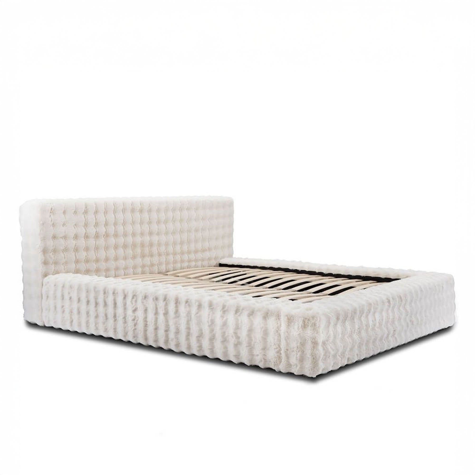 Jedyne w swoim rodzaju, przytulne, kremowe łóżko Nadia w kompaktowym rozmiarze 140x200 to mebel, który od razu przykuwa uwagę. Wezgłowie oraz pogrubiona rama pokryte są gęstym, długim włosiem przypominającym naturalne futerko, co sprawia, że jest niezwykle przytulne i unikatowe. To właśnie oryginalny wygląd zdecydowanie wpływa na atmosferę pokoju, a nawet zdolność relaksu, która jest tak ważnym elementem w przestrzeni sypialni. Delikatny i naturalny kolor gwarantuje szerokie możliwości personalizacji, wprowadza spokój, harmonię oraz świeżość, a do tego bez trudu skomponuje się z każdą aranżacją.