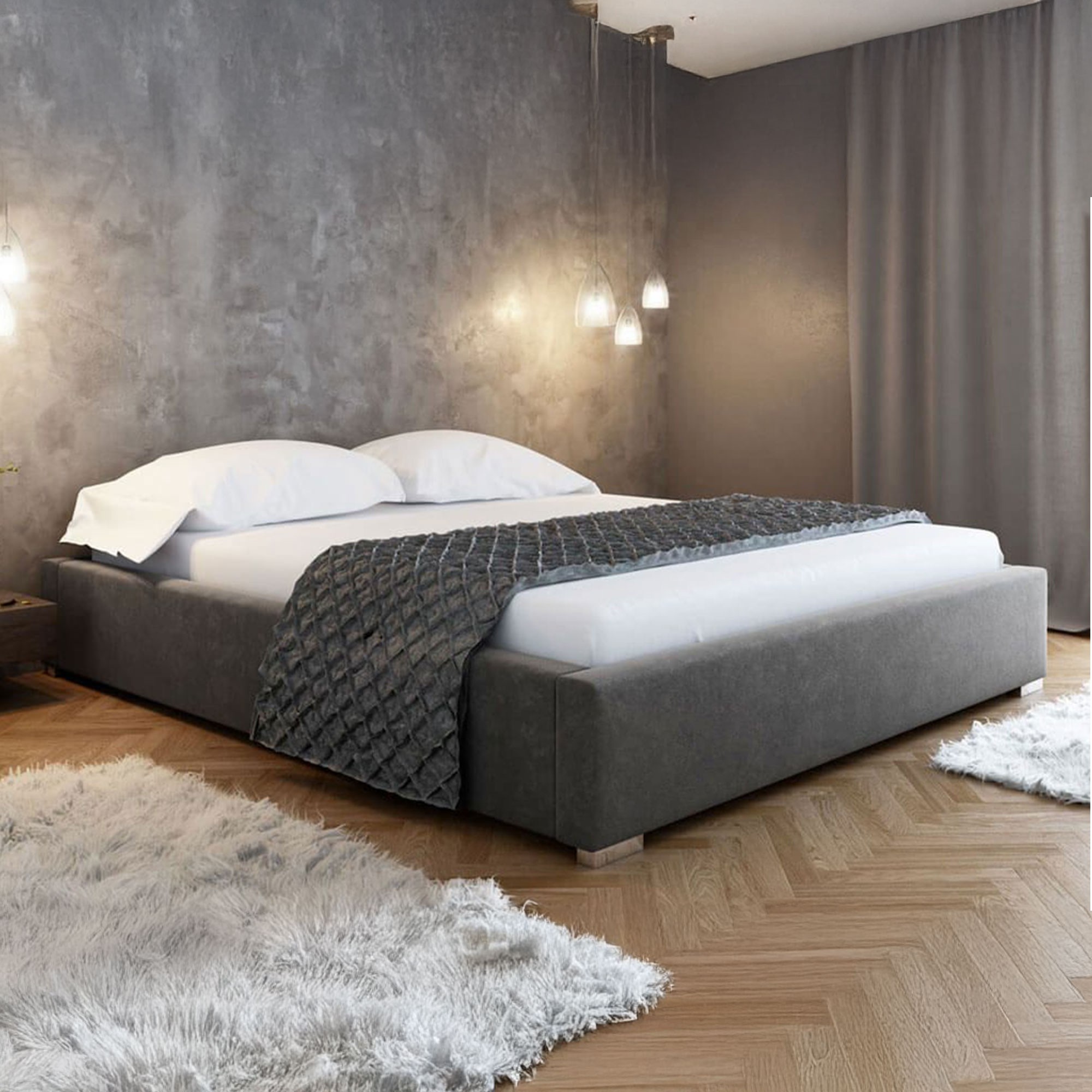 Z pewnością zachwyci Cię piękna tapicerowana rama, która pozwoli bezpiecznie wypoczywać na łóżku, a także kompaktowy rozmiar łóżka 160x200 bez zagłówka, idealny dla par.