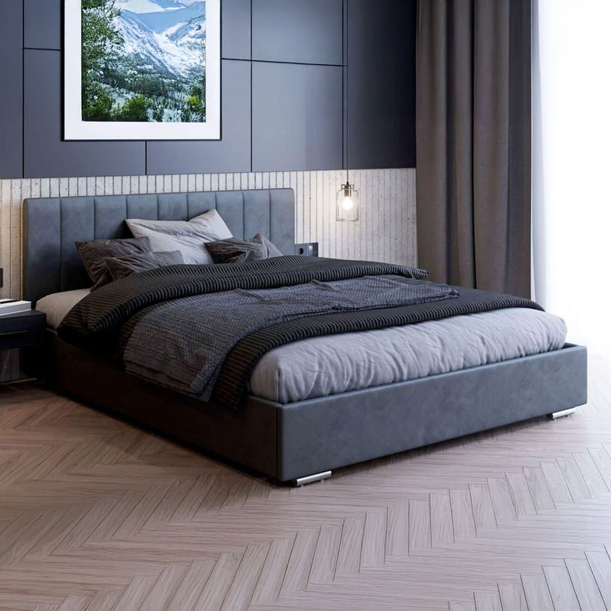 Łóżko tapicerowane 140x200 z pojemnikiem PORTO to mebel, który wyróżnia się pięknie wykończonym zagłówkiem. Panelowe wezgłowie to wyjątkowa ozdoba tego modelu, ale i ściany za łóżkiem w sypialni, która często jest wykończona klasyczną farbą.