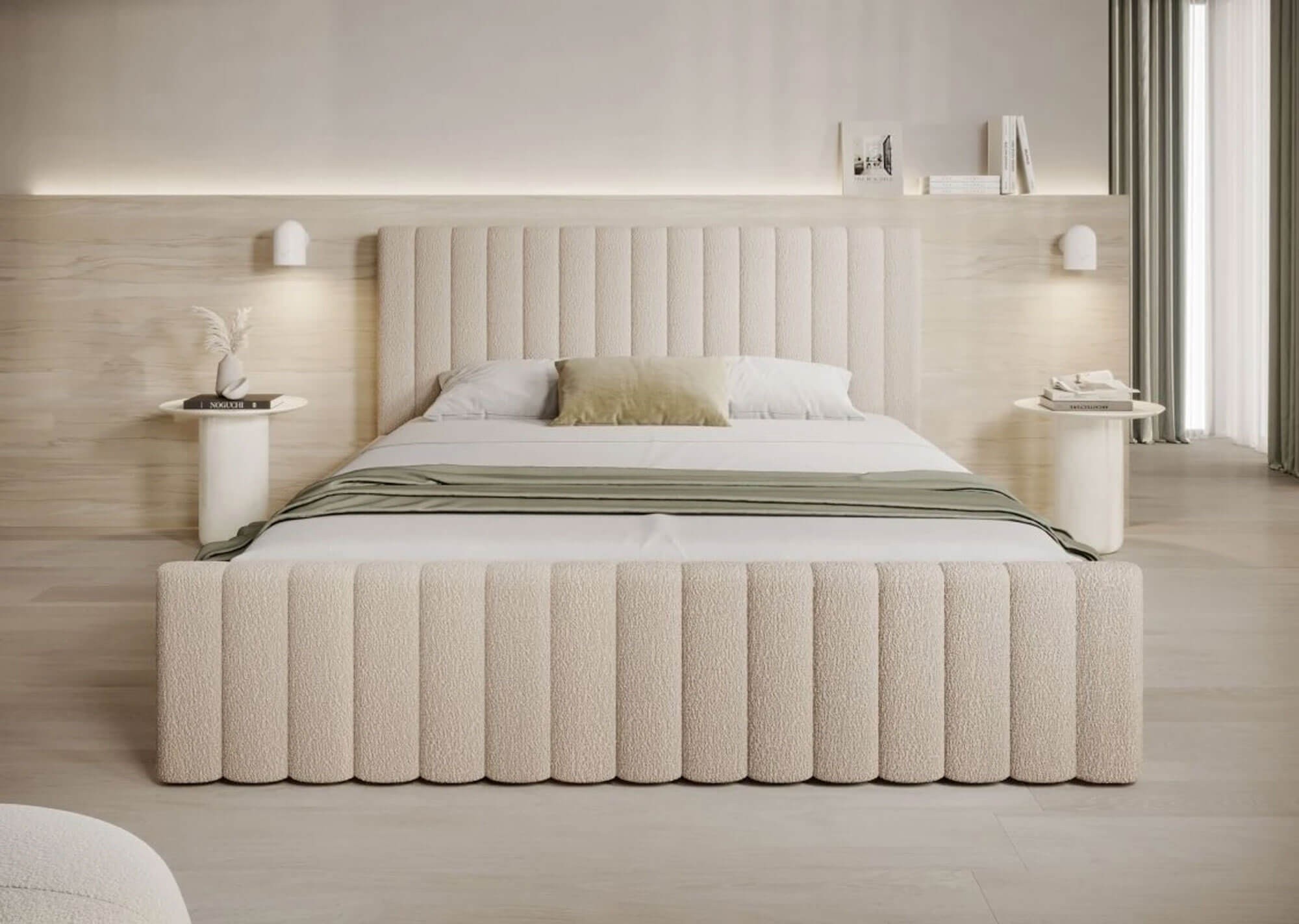 Łóżko tapicerowane ROSA to elegancki mebel stworzony z myślą o komforcie i estetyce. Jego ponadczasowy wygląd i dopracowane detale sprawiają, że idealnie komponuje się z nowoczesnymi, jak i klasycznymi wnętrzami. Charakterystyczny zagłówek z ozdobnymi przeszyciami nadaje łóżku wyjątkowego uroku, jednocześnie zapewniając wygodne oparcie podczas czytania lub relaksu. Model ROSA został wykonany z trwałych materiałów, co gwarantuje stabilność i solidność na lata. Miękka tapicerka wprowadza do sypialni przytulny klimat, a szeroka paleta kolorów pozwala dopasować łóżko do indywidualnych gustów. Łóżko wyposażono w praktyczny pojemnik na pościel, który pozwala utrzymać porządek i maksymalnie wykorzystać przestrzeń w sypialni. ROSA to połączenie funkcjonalności, wygody i elegancji – idealne rozwiązanie dla osób, które pragną stworzyć stylowe i komfortowe miejsce wypoczynku.