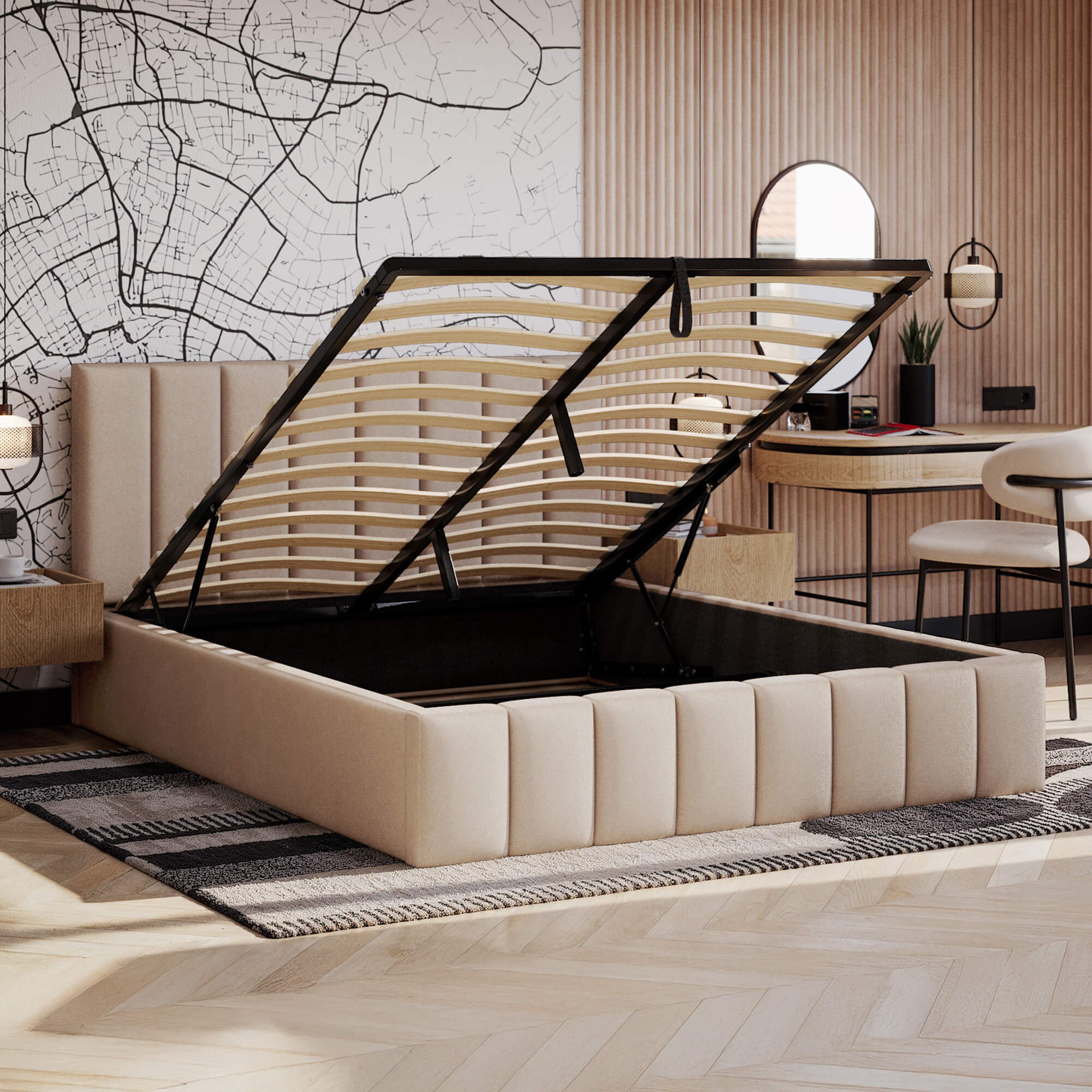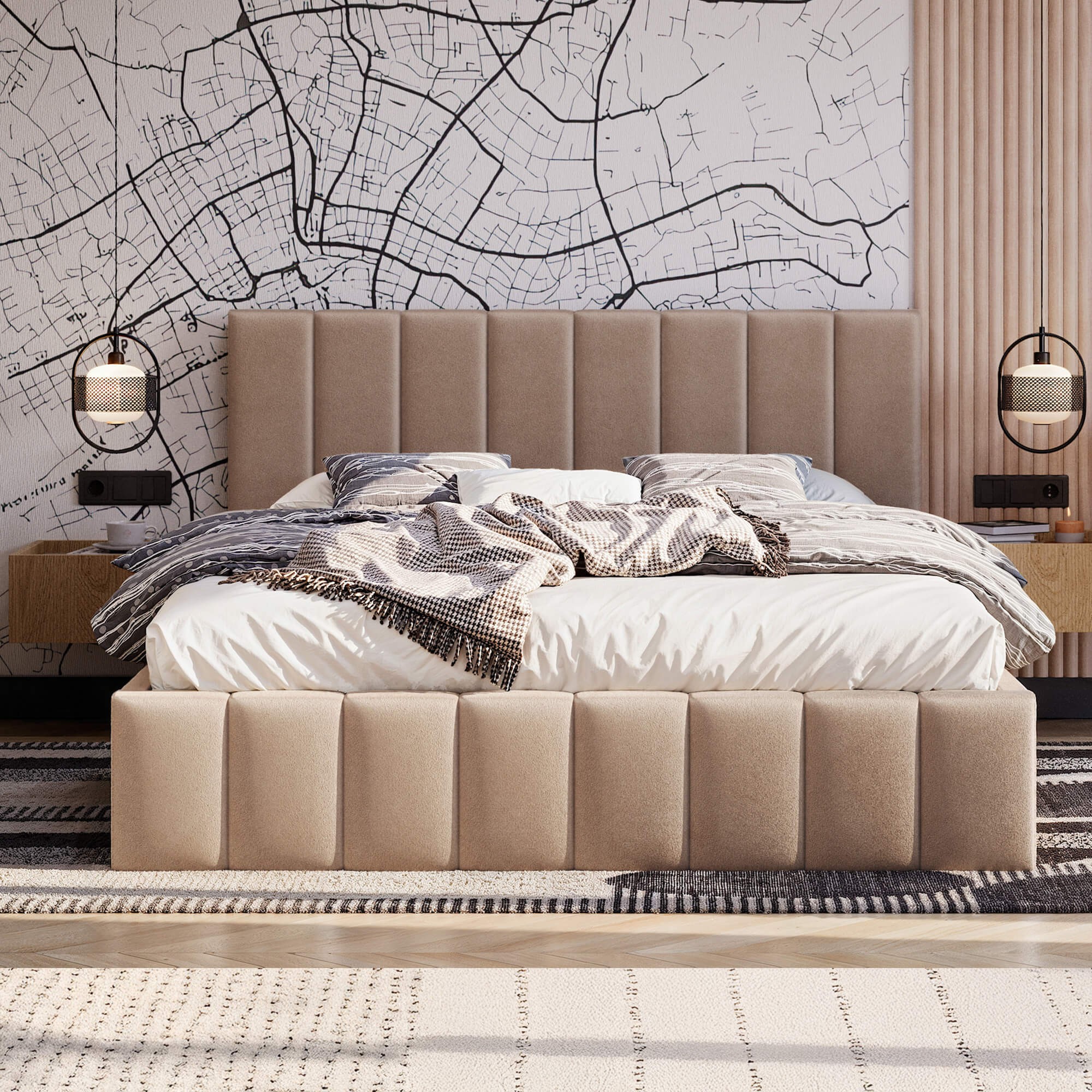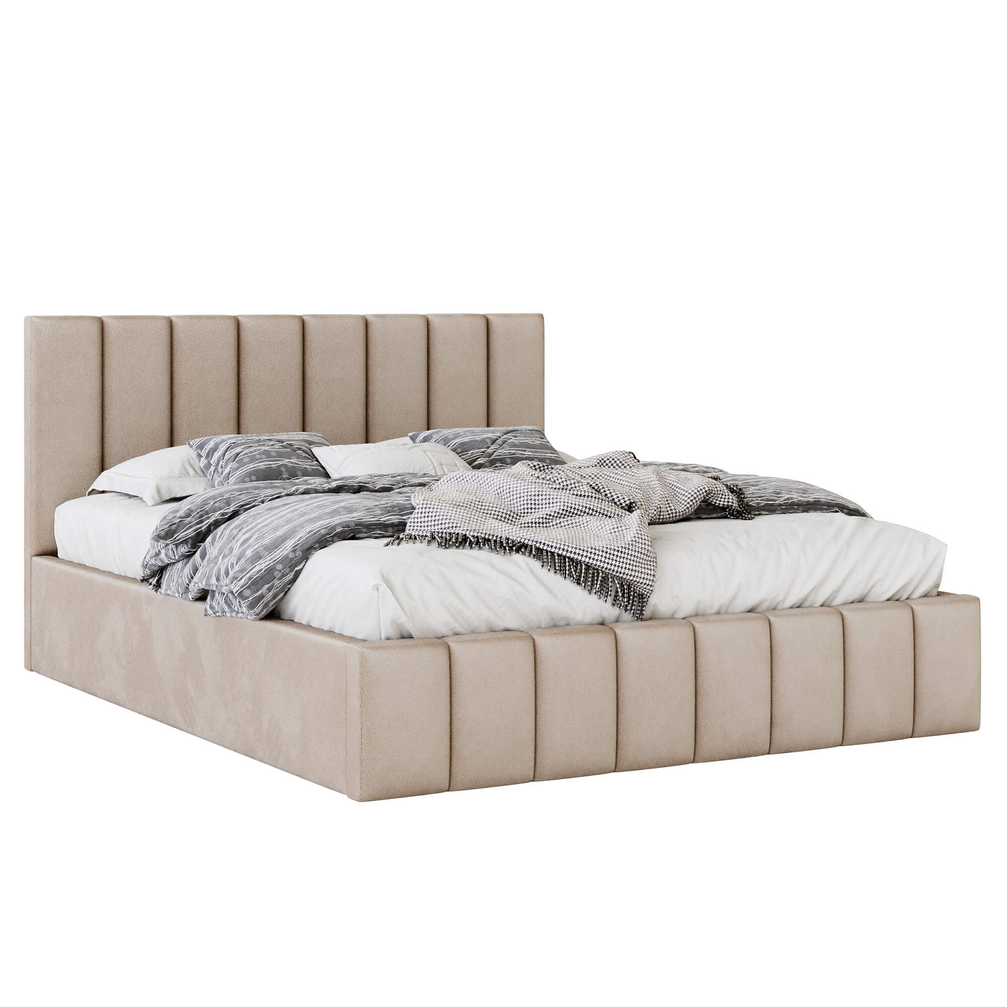 Łóżko tapicerowane z pojemnikiem SFG0116 | 140x200 | Welur | Ciemny beżowy | OUTLET