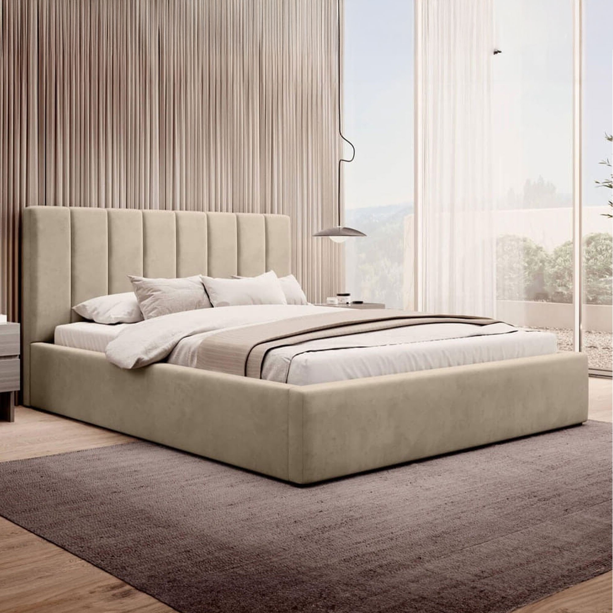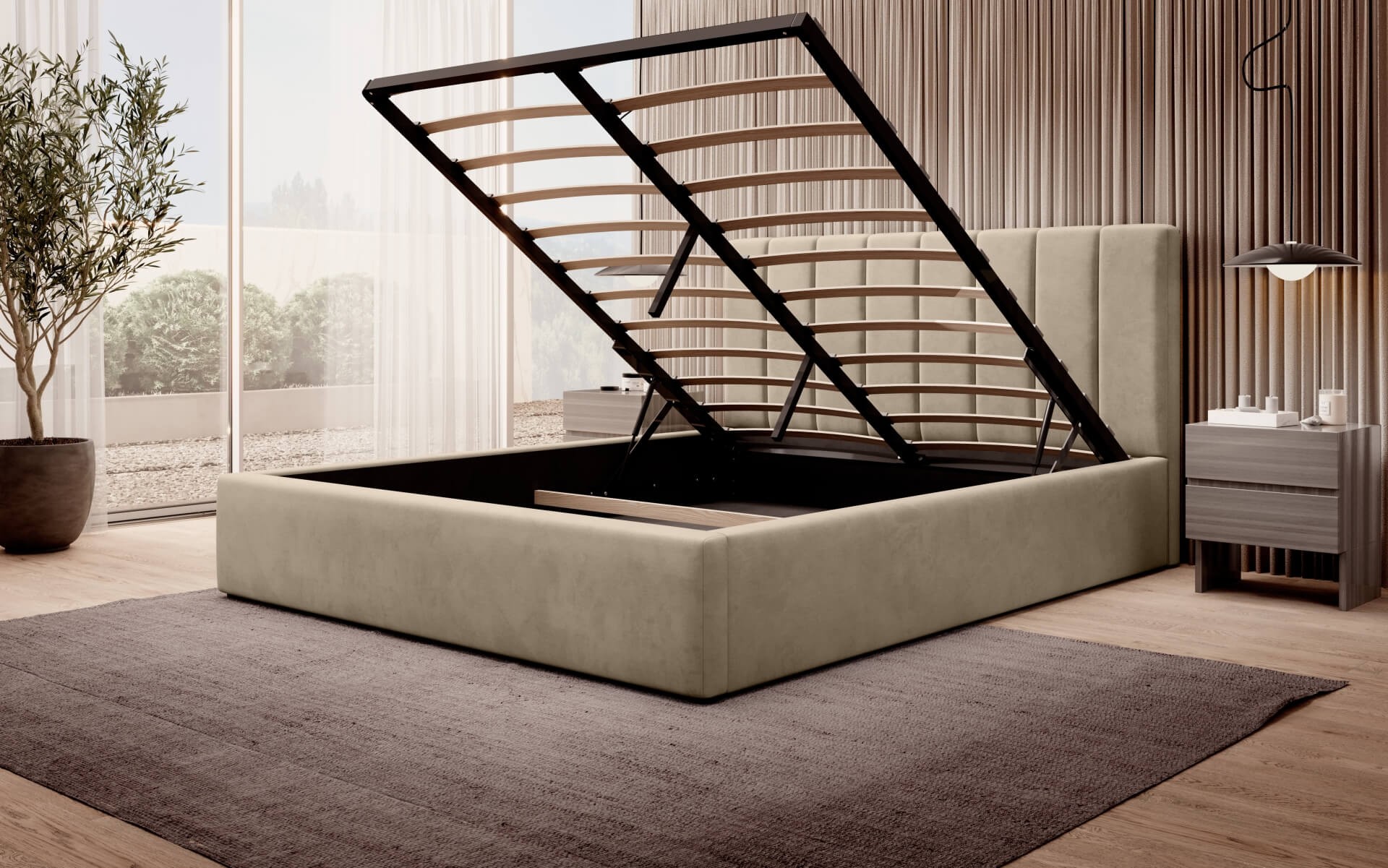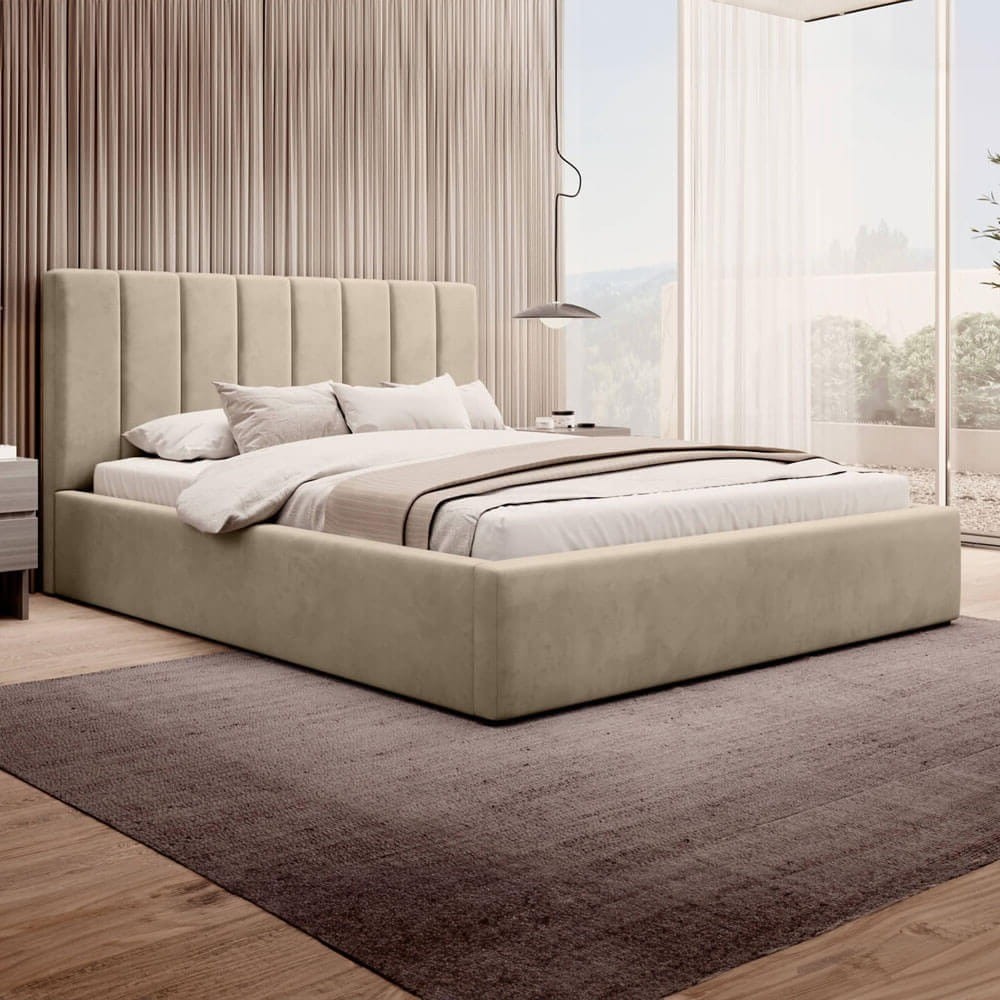 Łóżko tapicerowane z pojemnikiem SFG0116B P | 160x200 | Welur | Beżowy