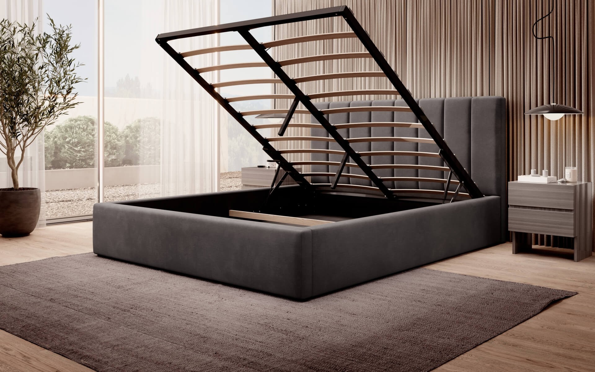 Łóżko tapicerowane z pojemnikiem SFG0116B P | 180x200 | Welur | Szary
