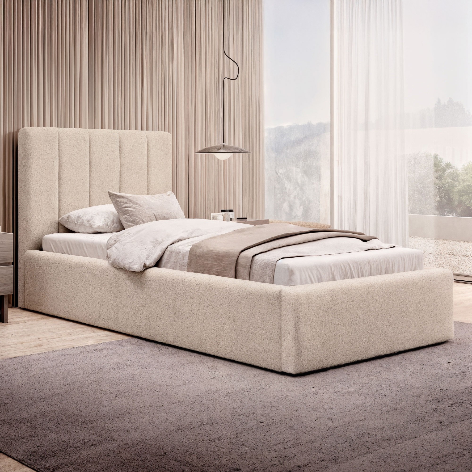 Łóżko tapicerowane z pojemnikiem SFG0116B P | 90x200 | Boucle | Beż