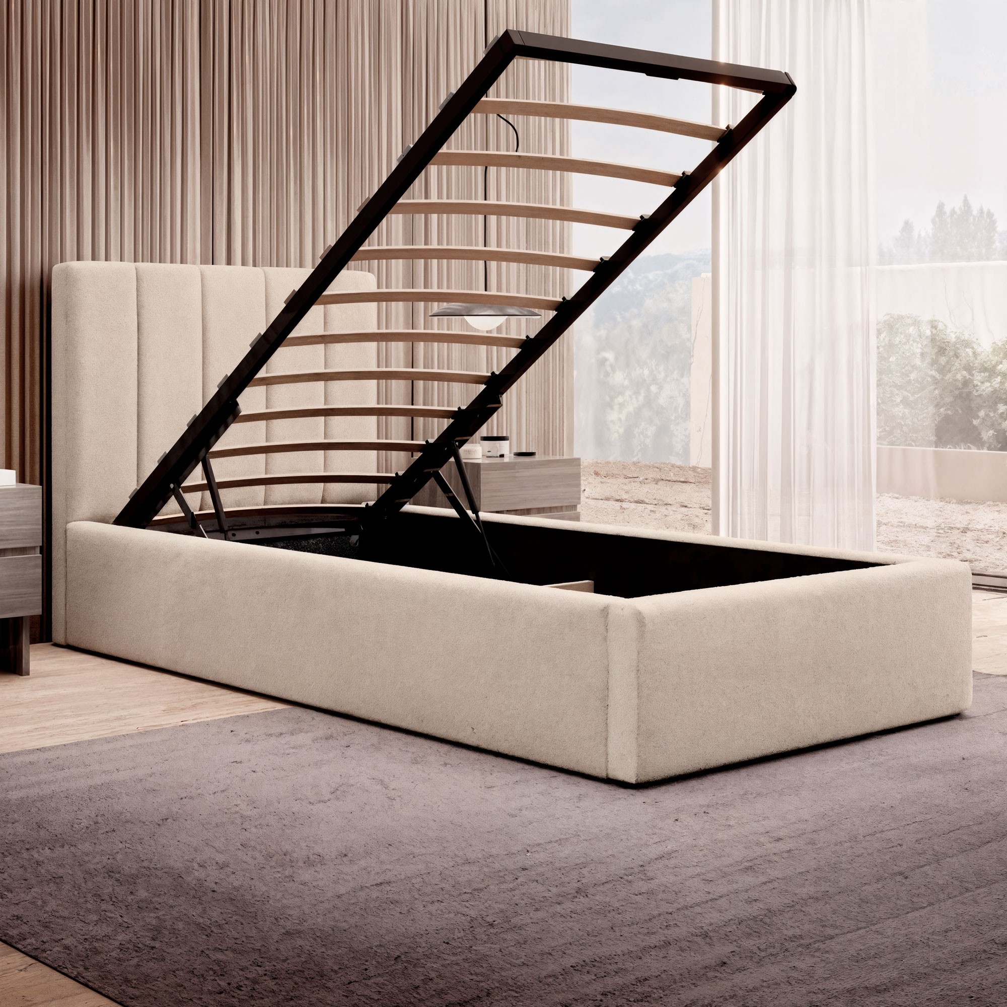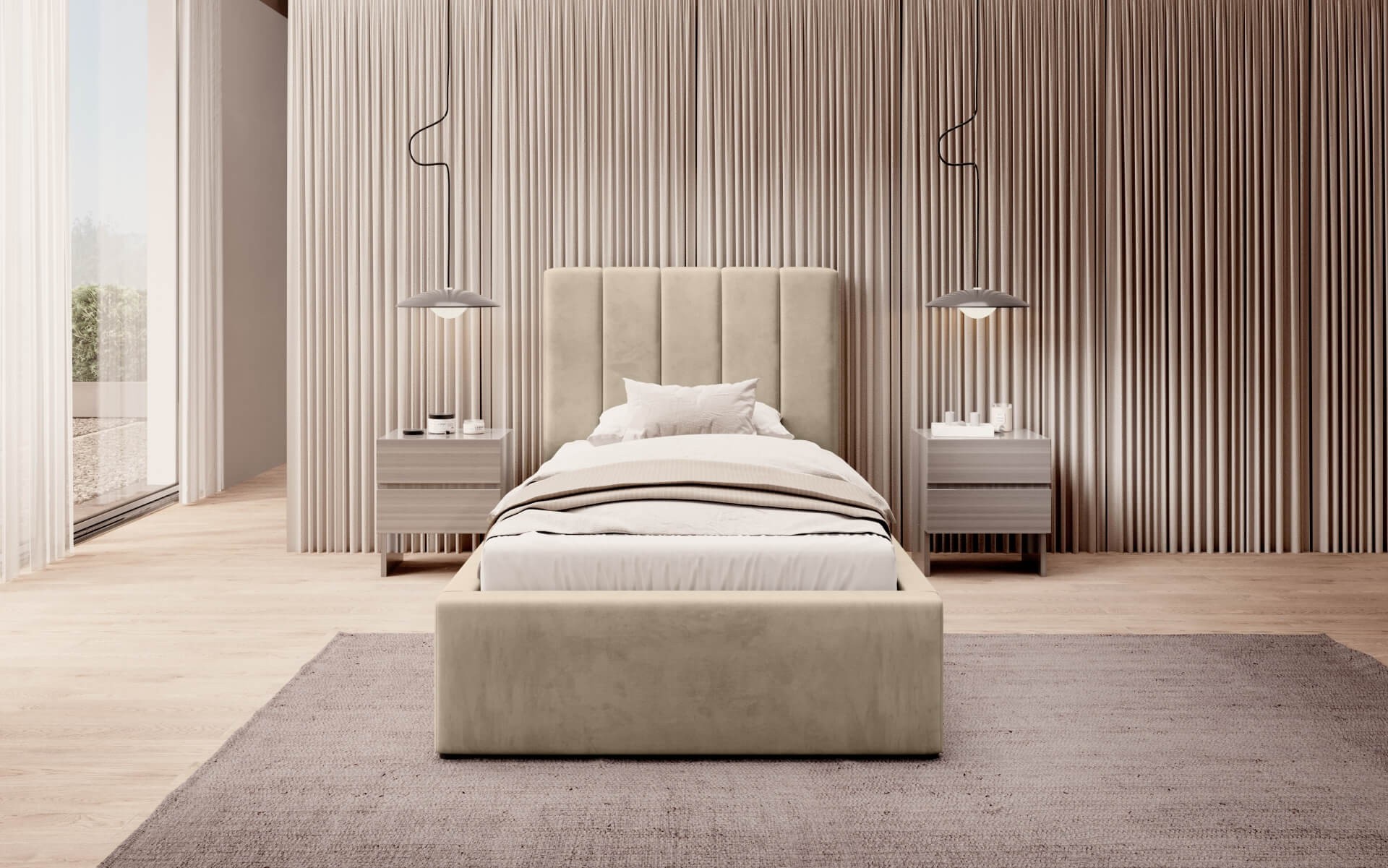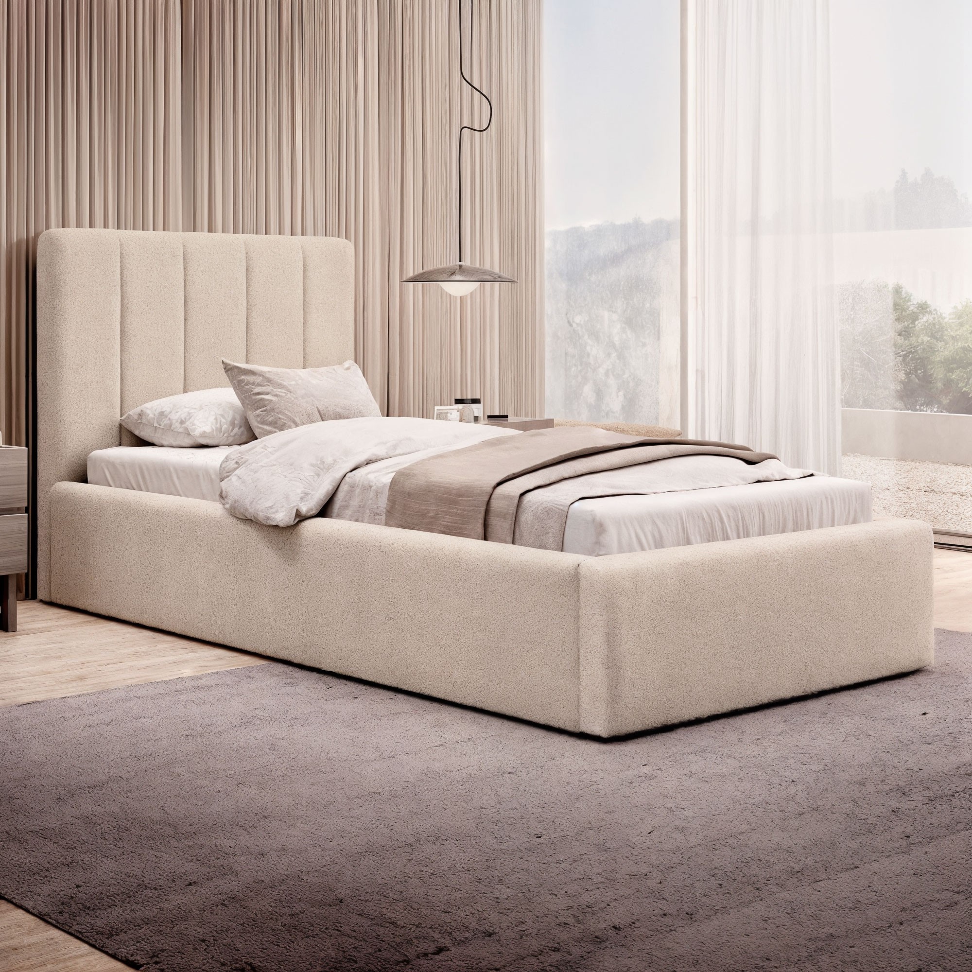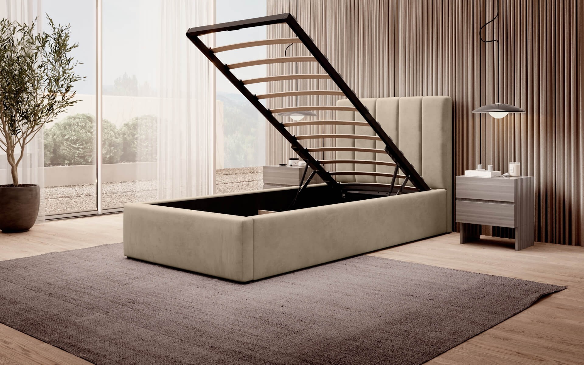 Łóżko tapicerowane z pojemnikiem SFG0116B P | 90x200 | Welur | Beżowy