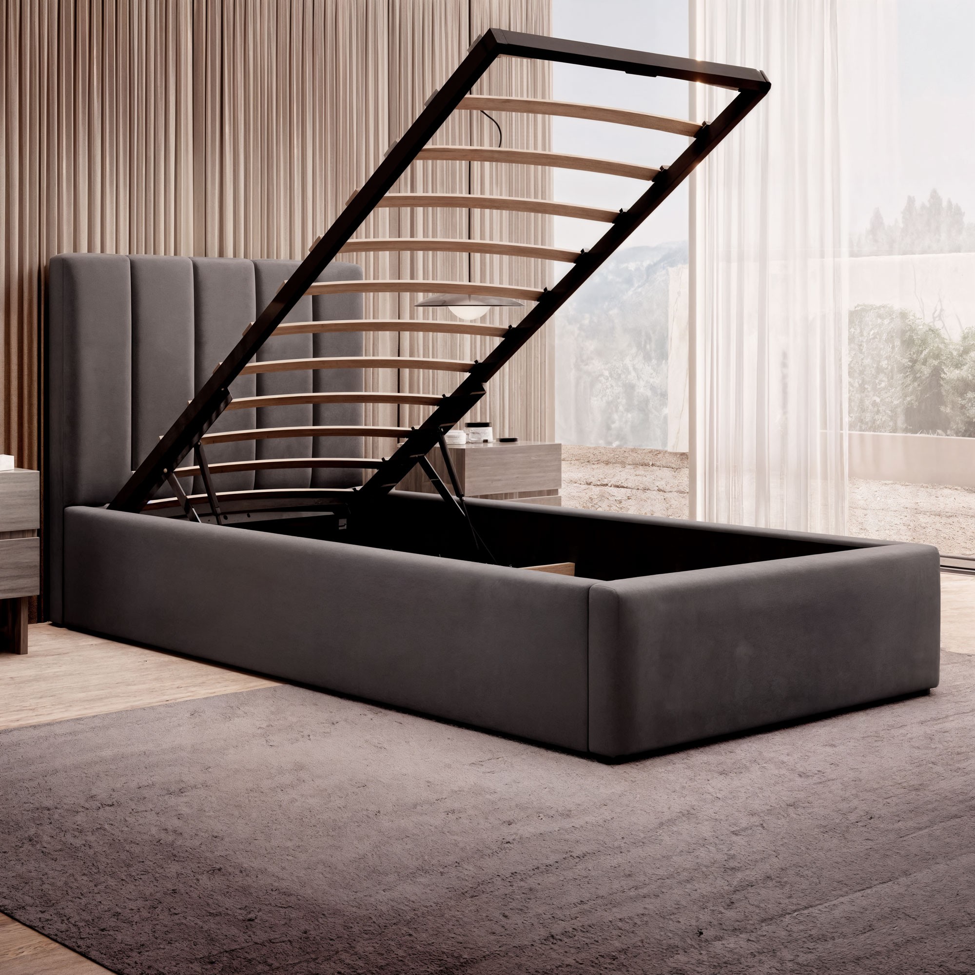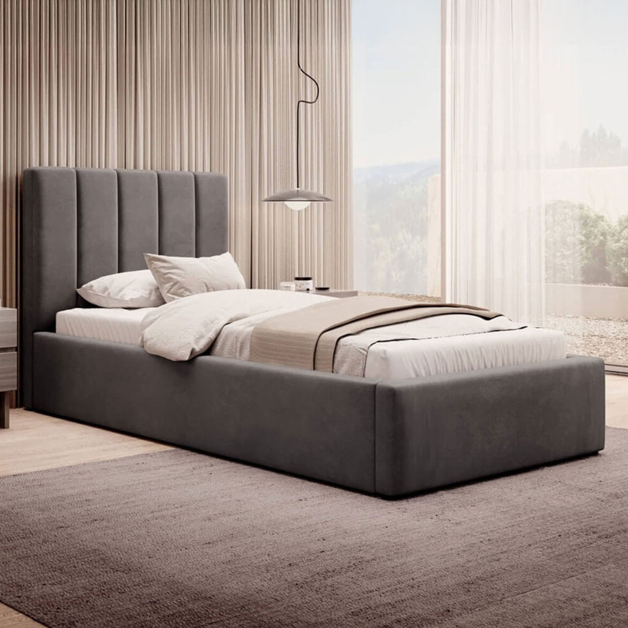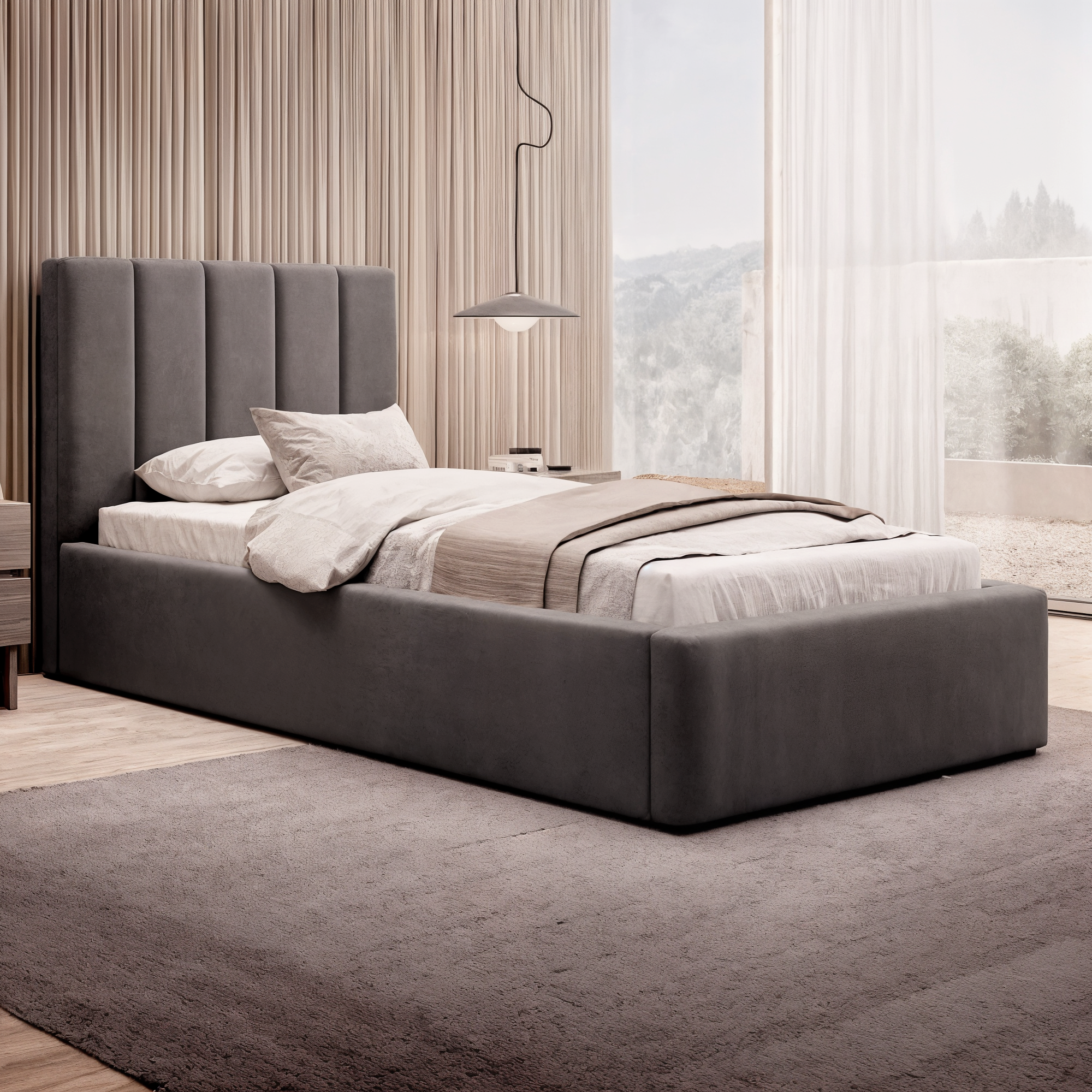 Łóżko tapicerowane z pojemnikiem SFG0116B P | 90x200 | Welur | Szary