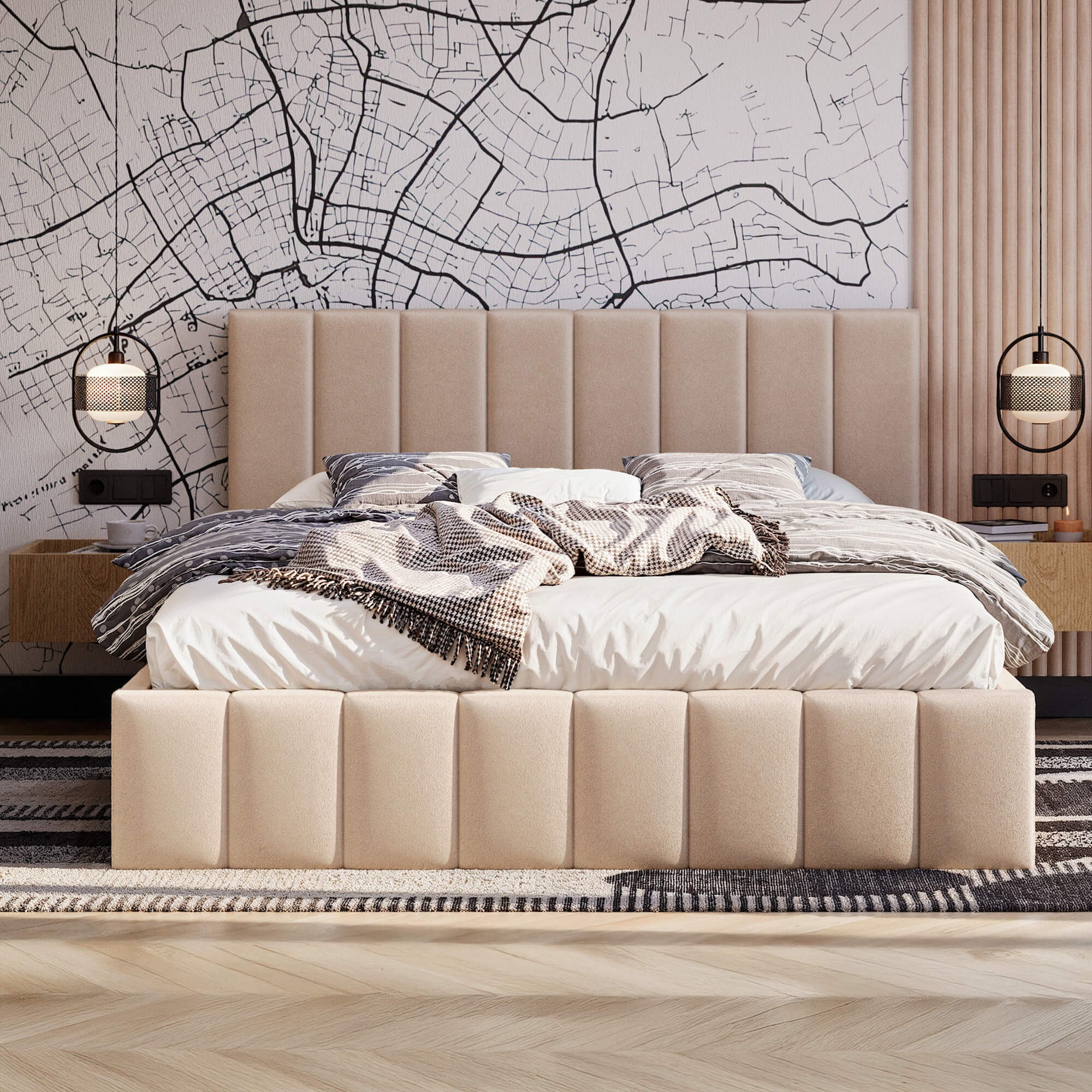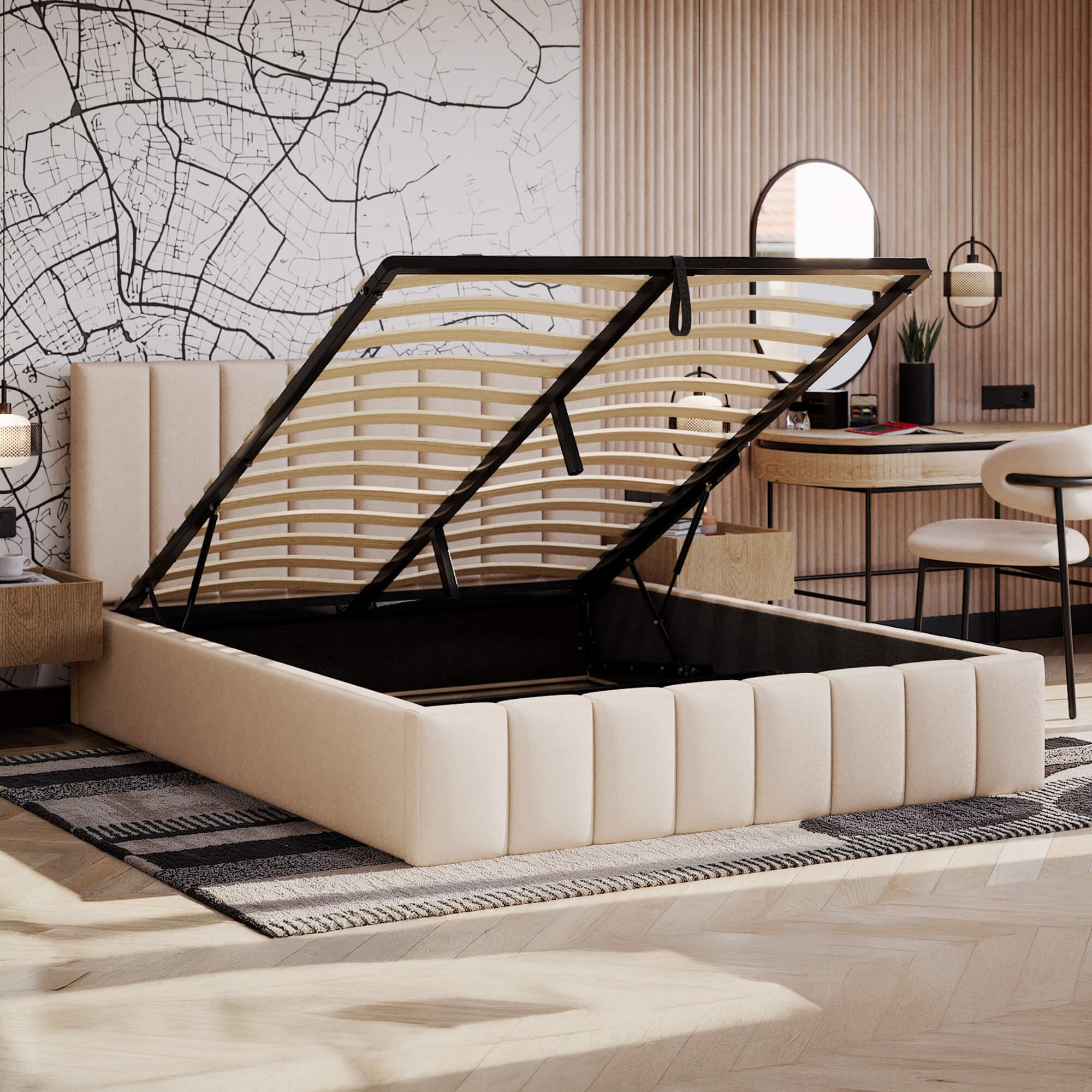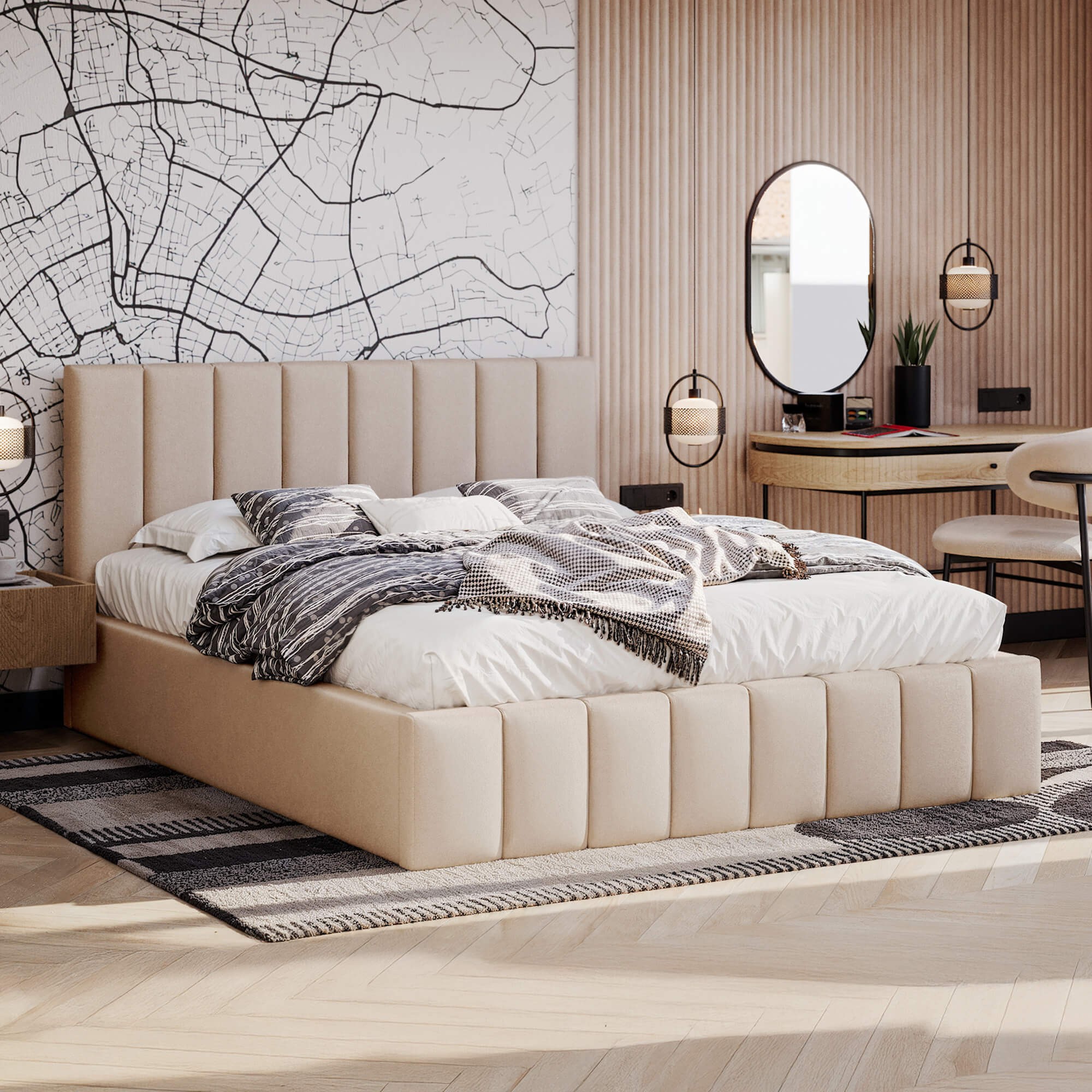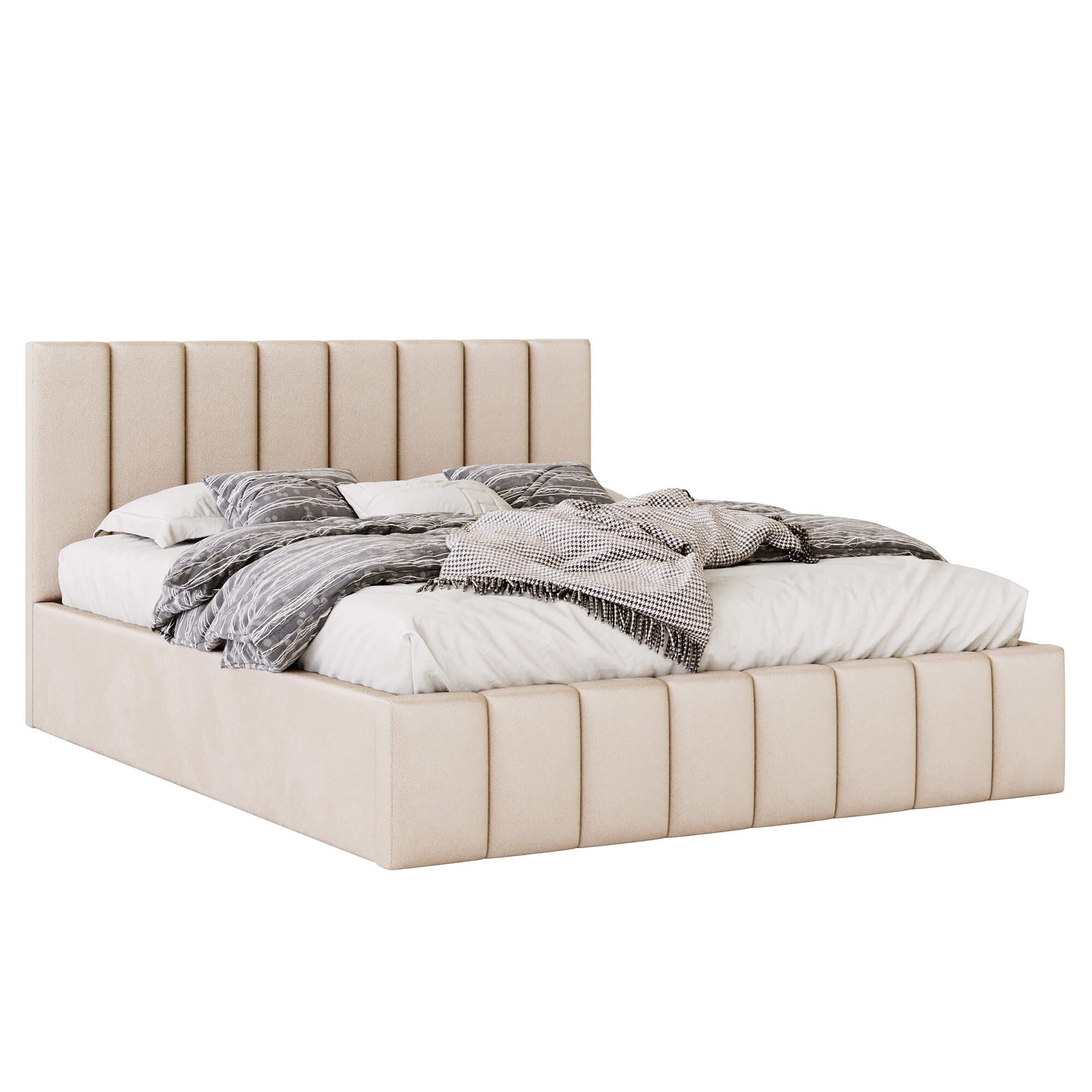 Łóżko tapicerowane z pojemnikiem SFG0116P | 180x200 | Welur | Beżowy