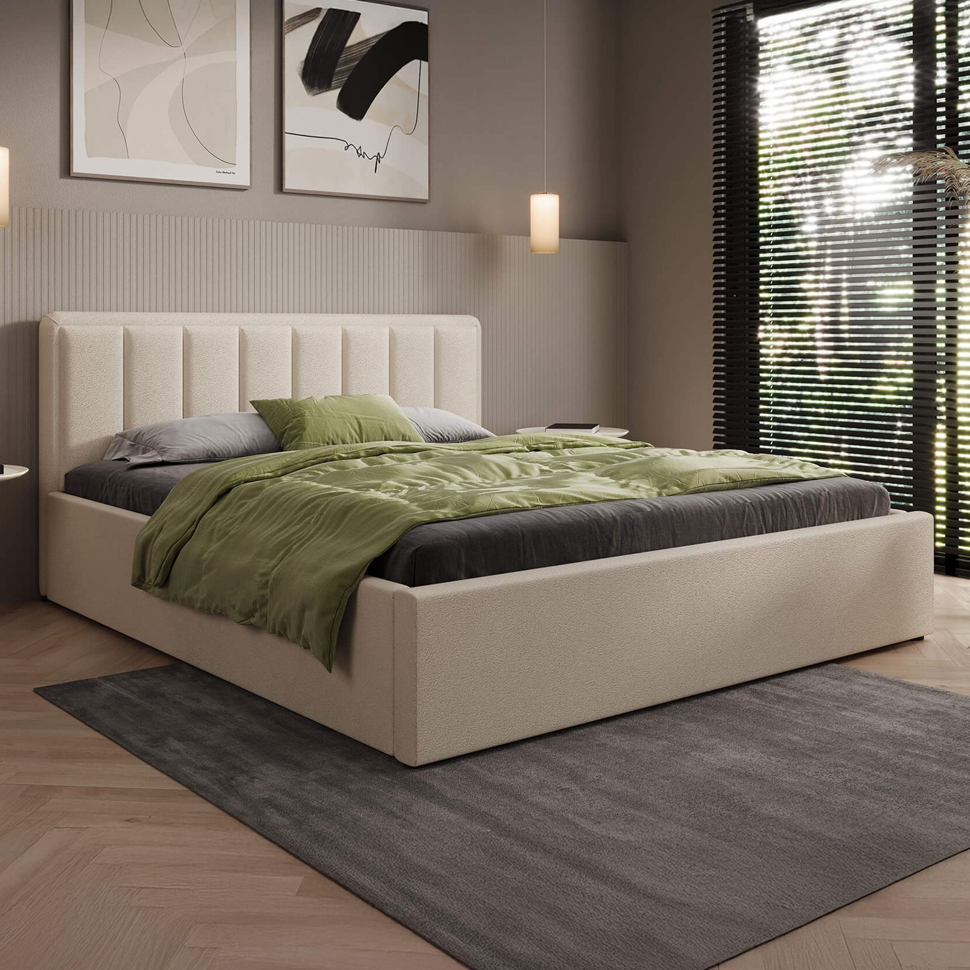 Łóżko tapicerowane z pojemnikiem SFG0143 | 160x200 | Boucle | Beż #3