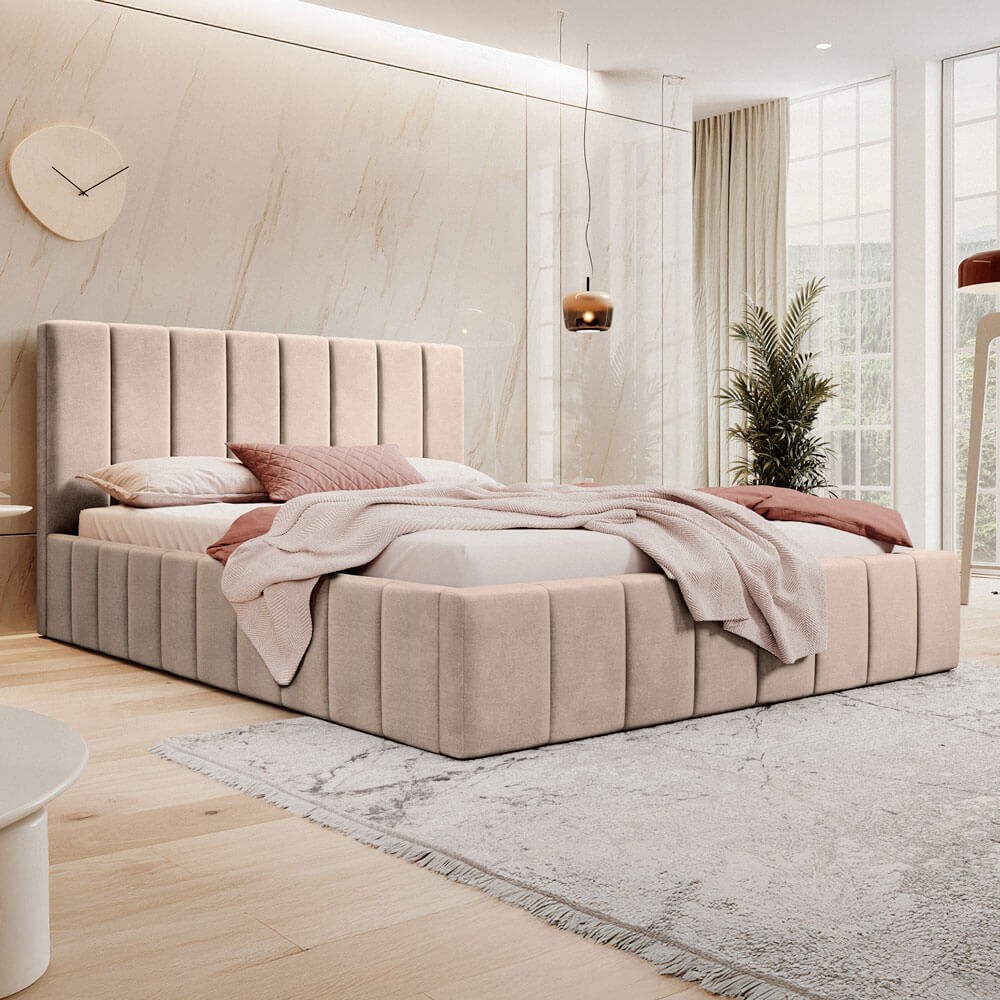 Łóżko tapicerowane z pojemnikiem SFG0144 | 140x200 | Welur | Ciemny beż #6