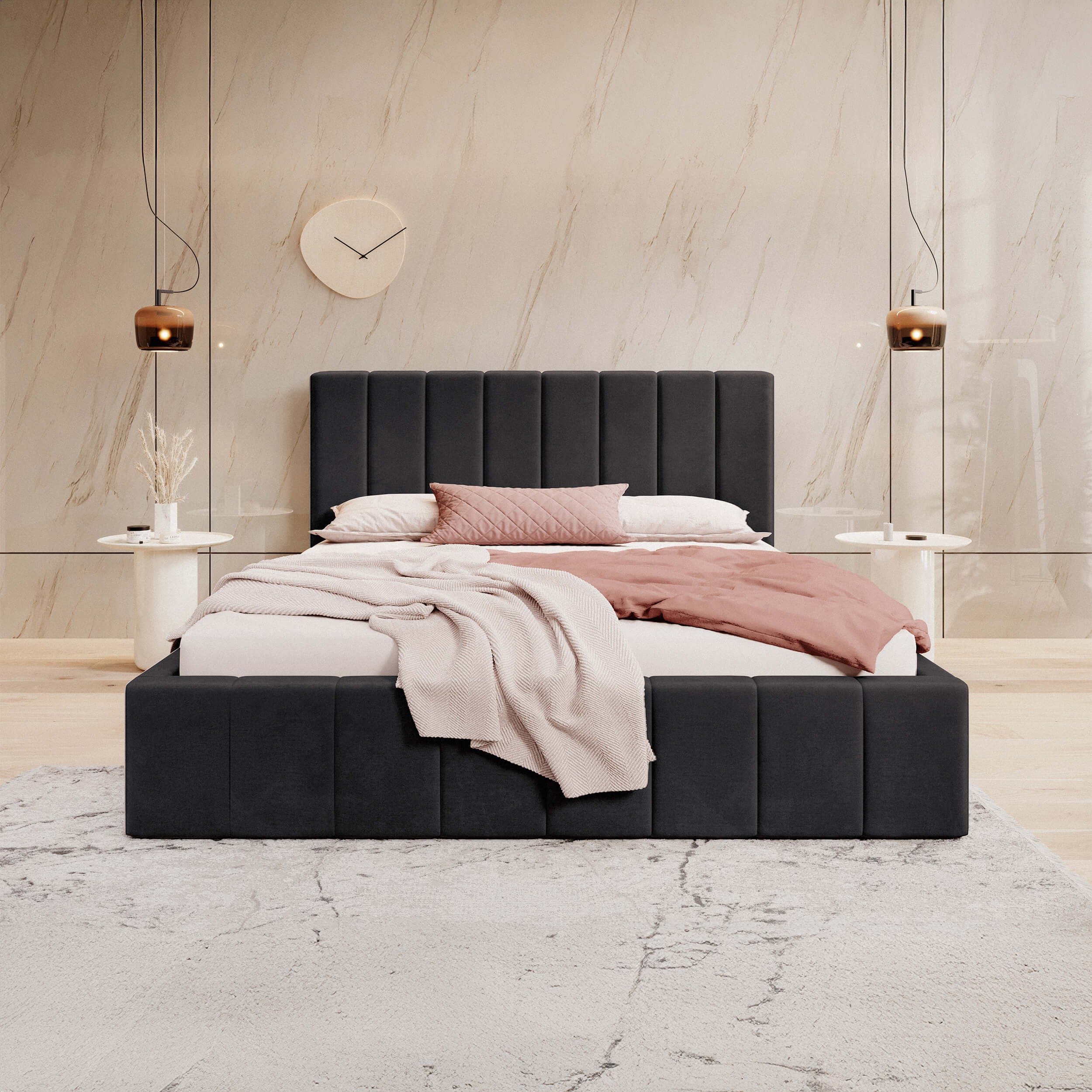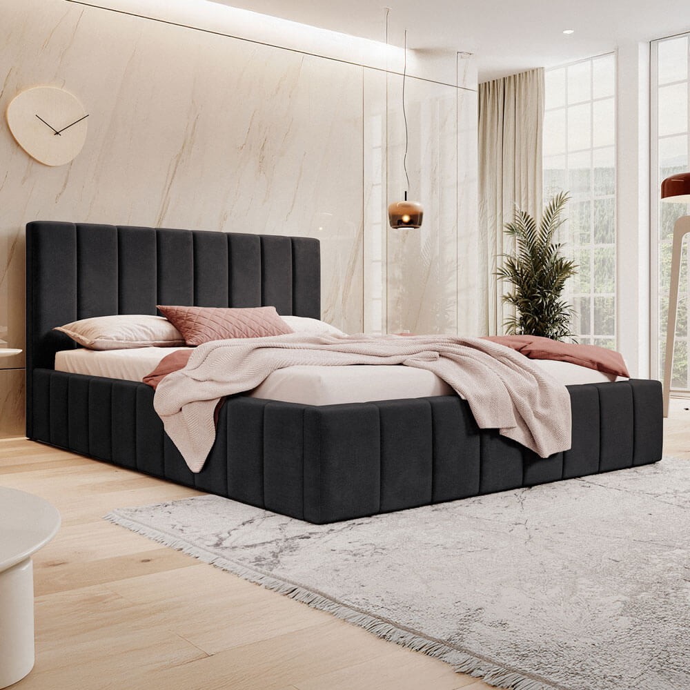 Łóżko tapicerowane z pojemnikiem SFG0144 | 140x200 | Welur | Czarny