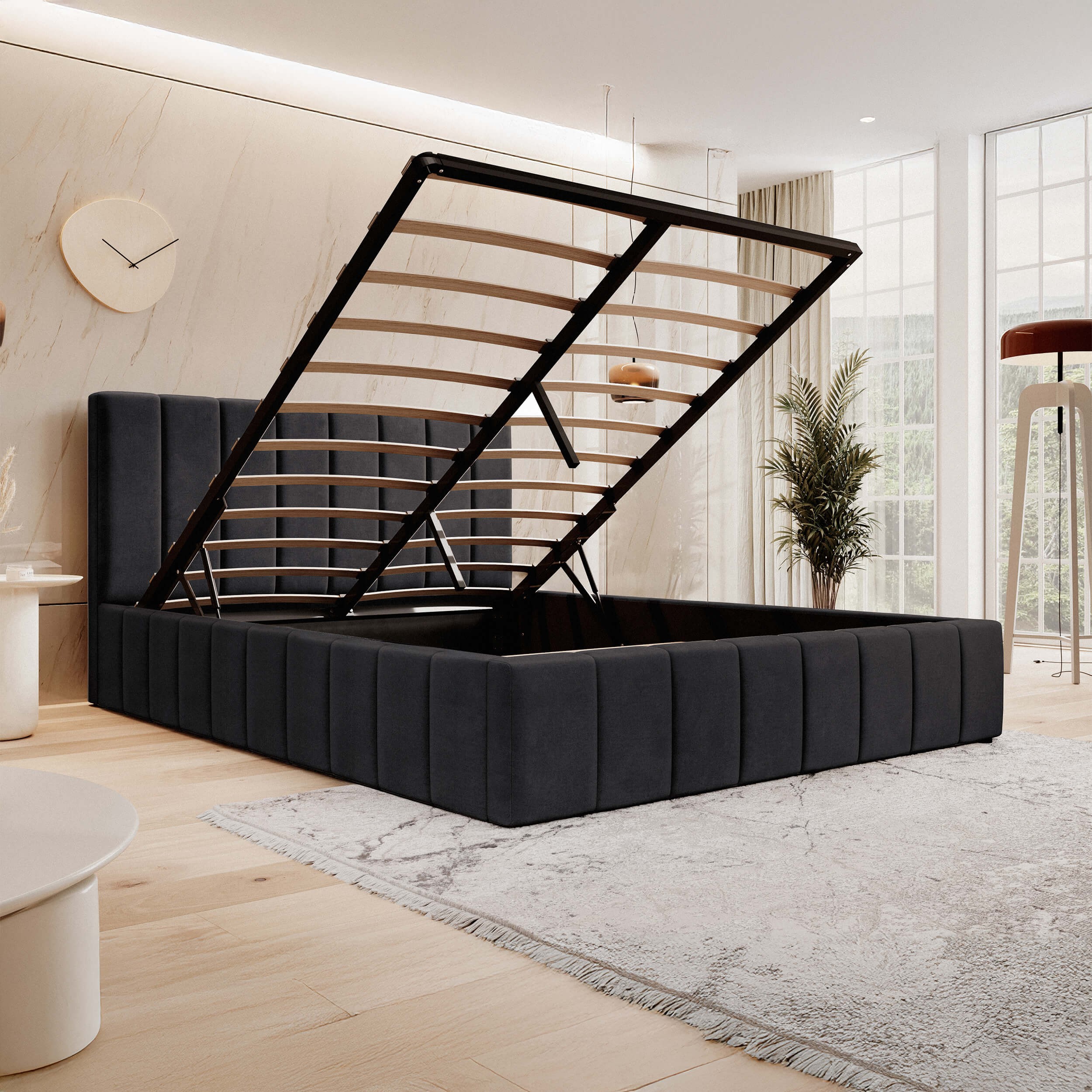 Łóżko tapicerowane z pojemnikiem SFG0144P | 180x200 | Welur | Czarny