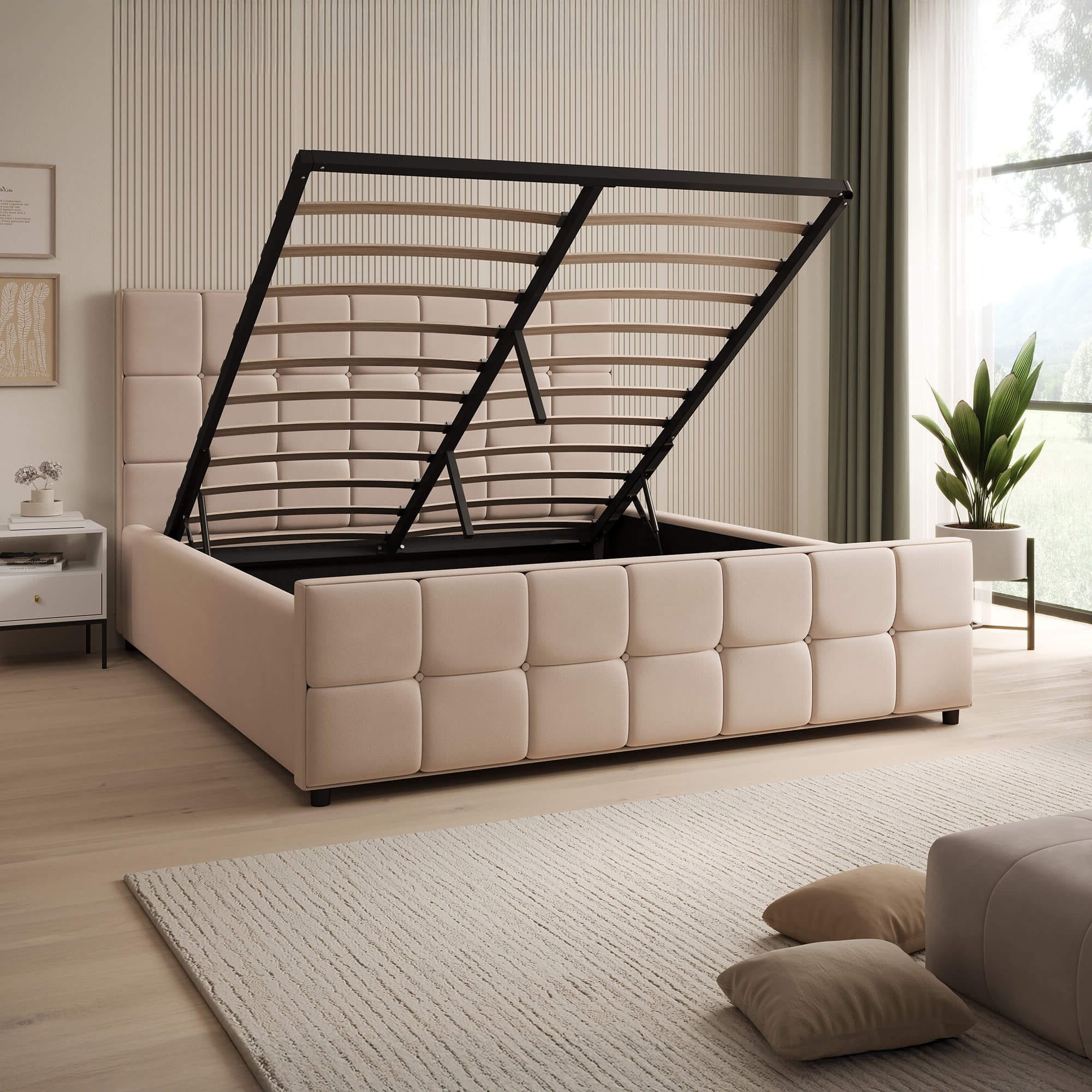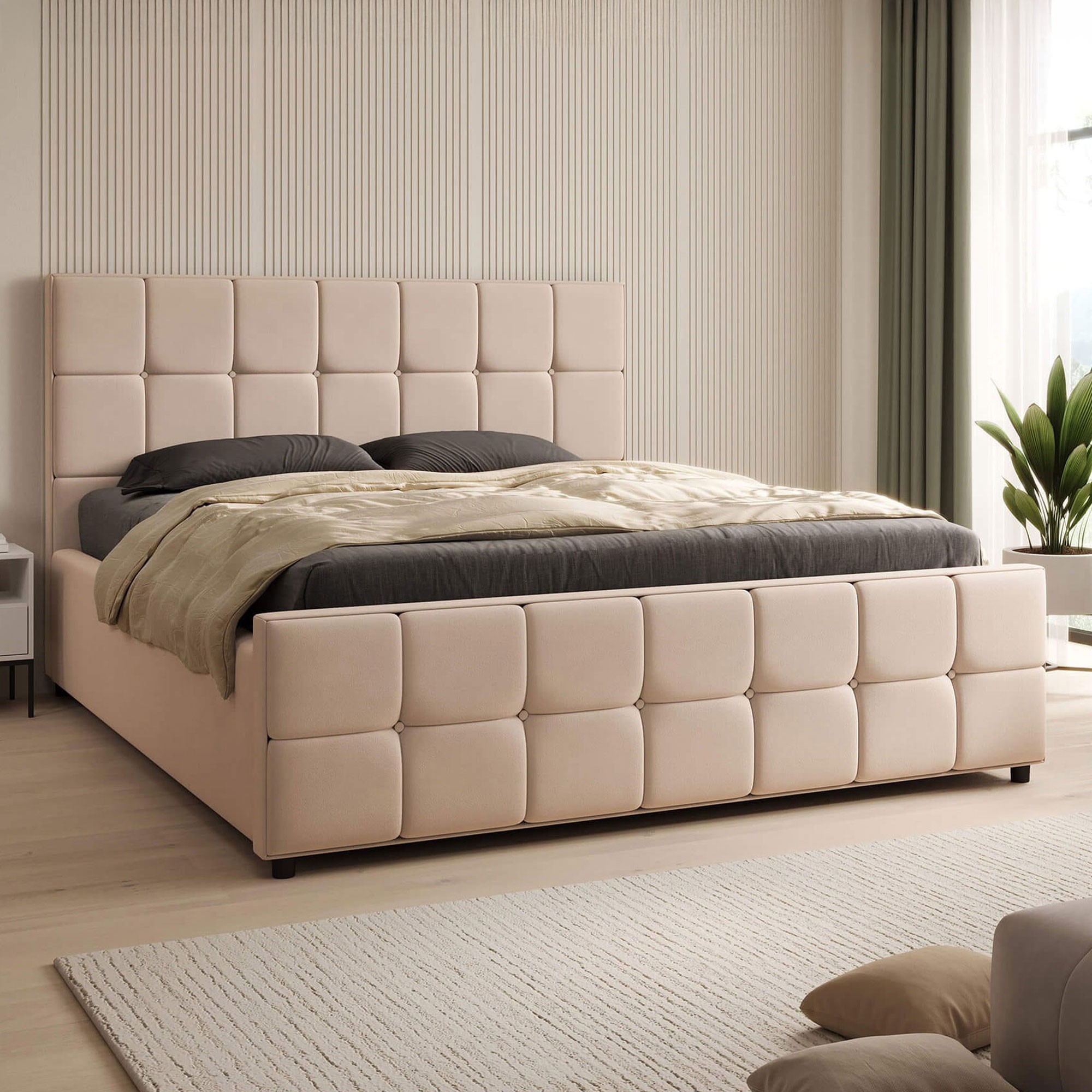 Łóżko tapicerowane z pojemnikiem SFG015 | 160x200 | Welur | Beżowy
