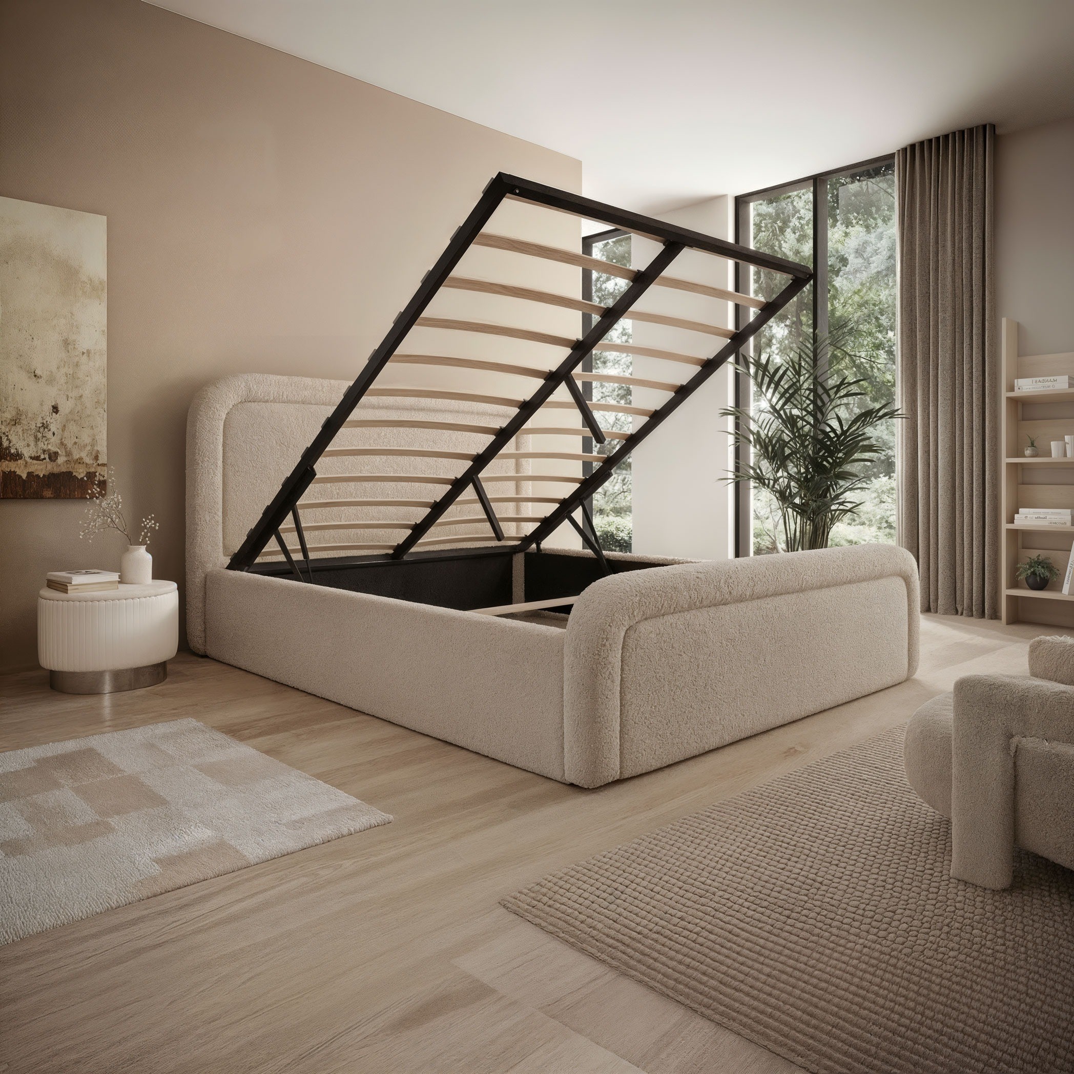 Łóżko tapicerowane z pojemnikiem SFG0154 | 140x200 | Boucle | Ciemny beż #4