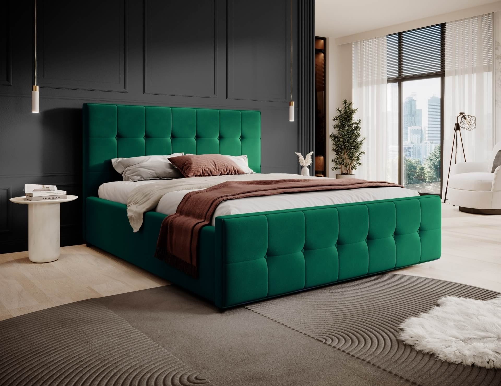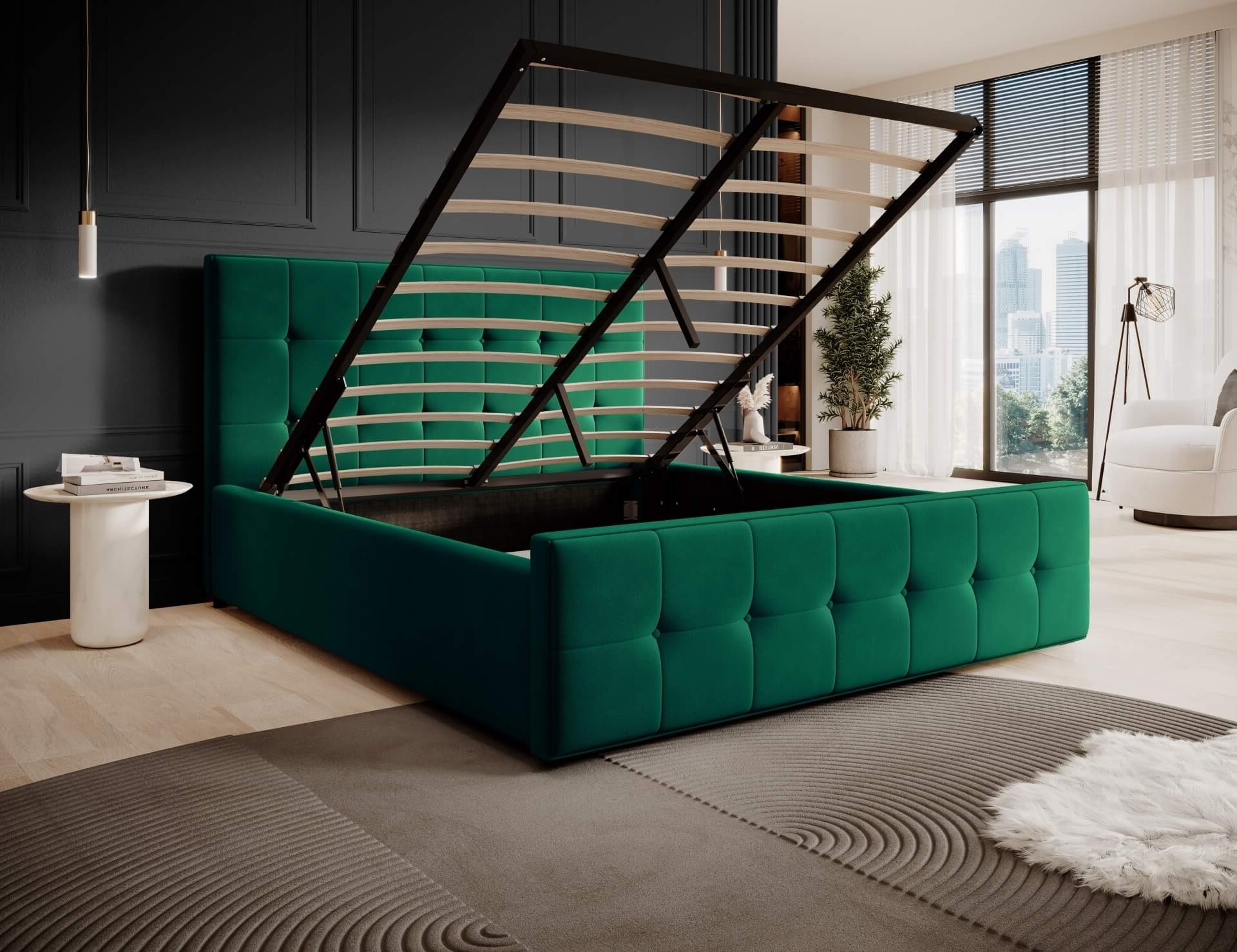 Łóżko tapicerowane z pojemnikiem SFG015P | 160x200 | Welur | Zielony #64 | OUTLET