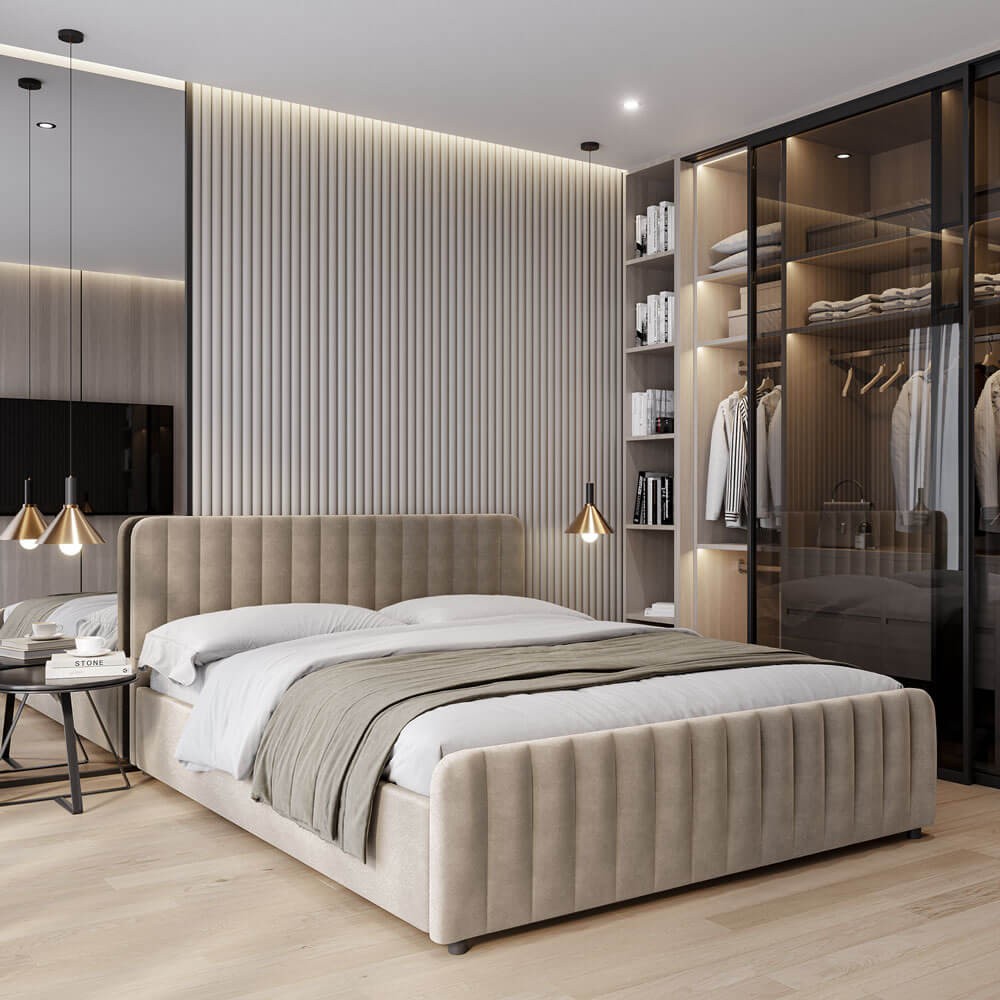 Łóżko tapicerowane z pojemnikiem SFG0160 | 160x200 | Welur | Ciemny beżowy #6 | OUTLET