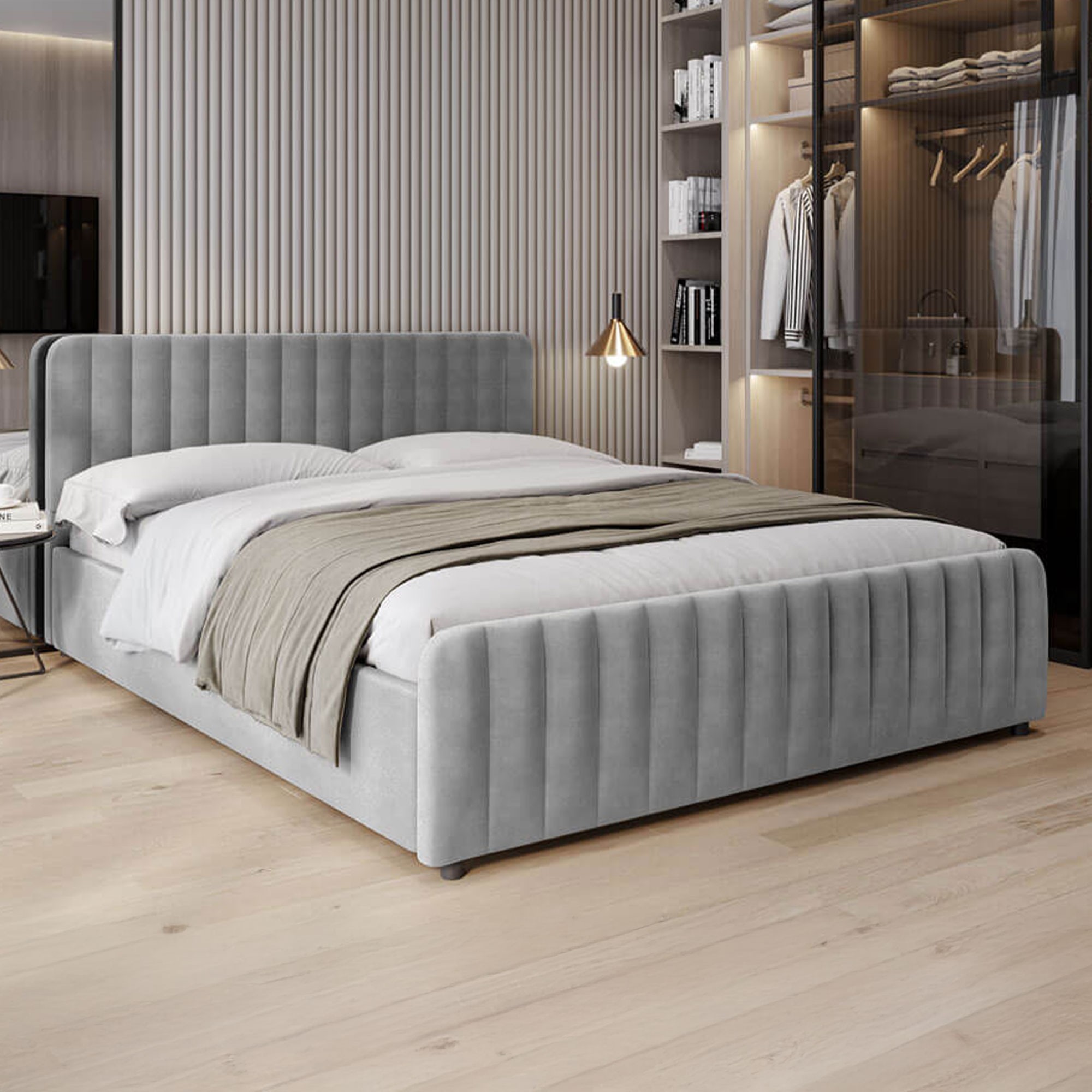 Łóżko tapicerowane z pojemnikiem SFG0160 | 180x200 | Welur | Szary #53