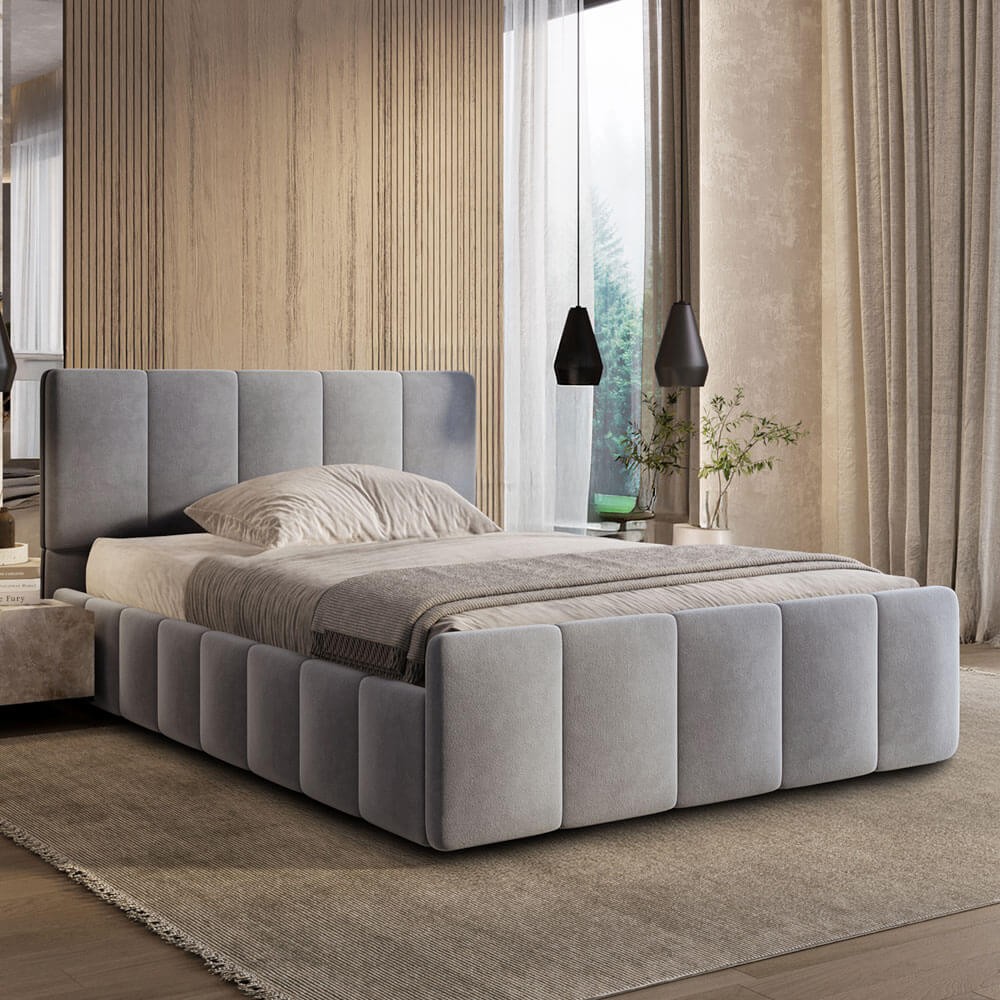 Łóżko tapicerowane z pojemnikiem SFG0166P | 90x200 | Welur | Jasny szary #53