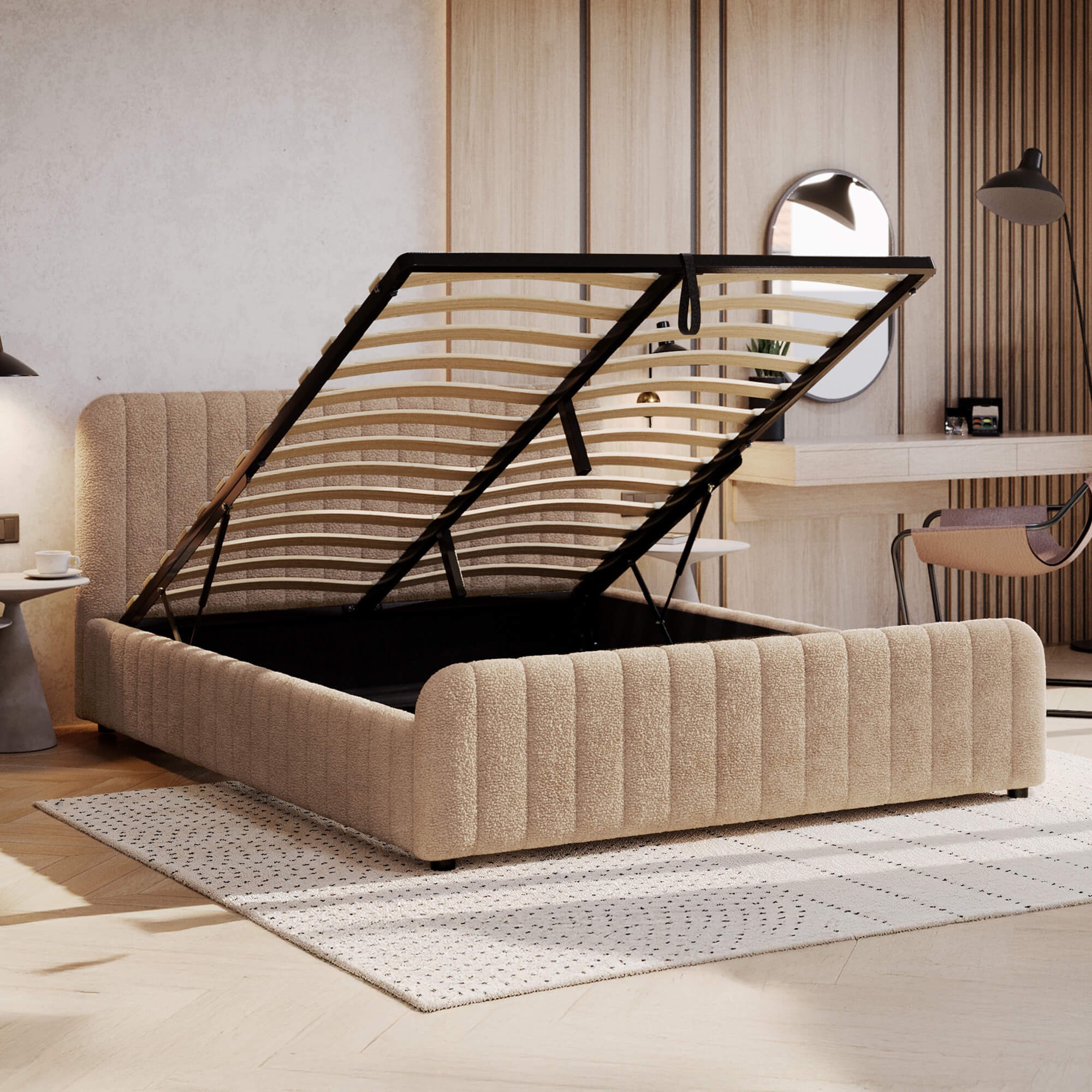 Łóżko tapicerowane z pojemnikiem SFG0167 | 120x200 | Boucle | Beż #4