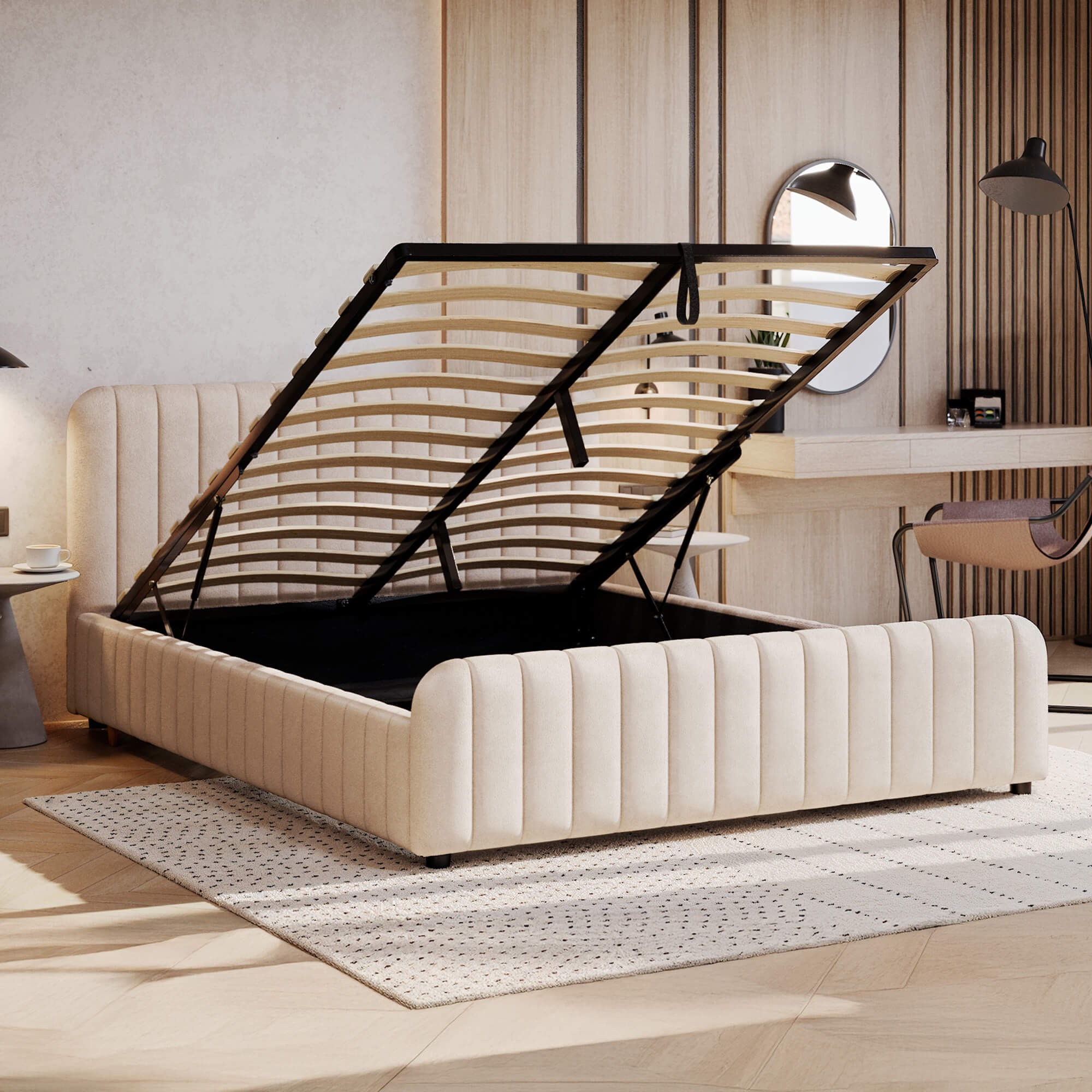 Łóżko tapicerowane z pojemnikiem SFG0167 | 120x200 | Welur | Beż #3