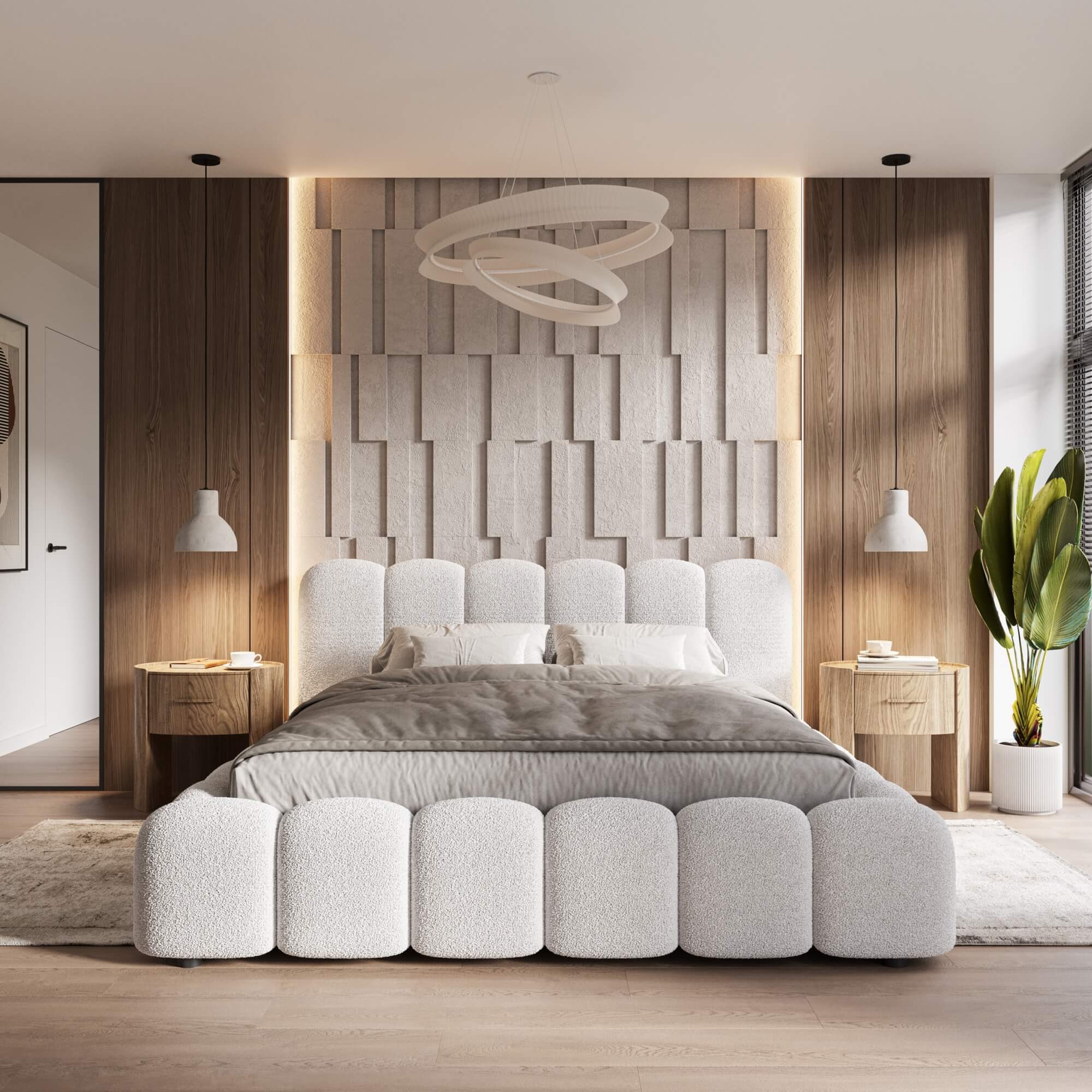 - Aksamitna tkanina typu boucle dodająca przytulności