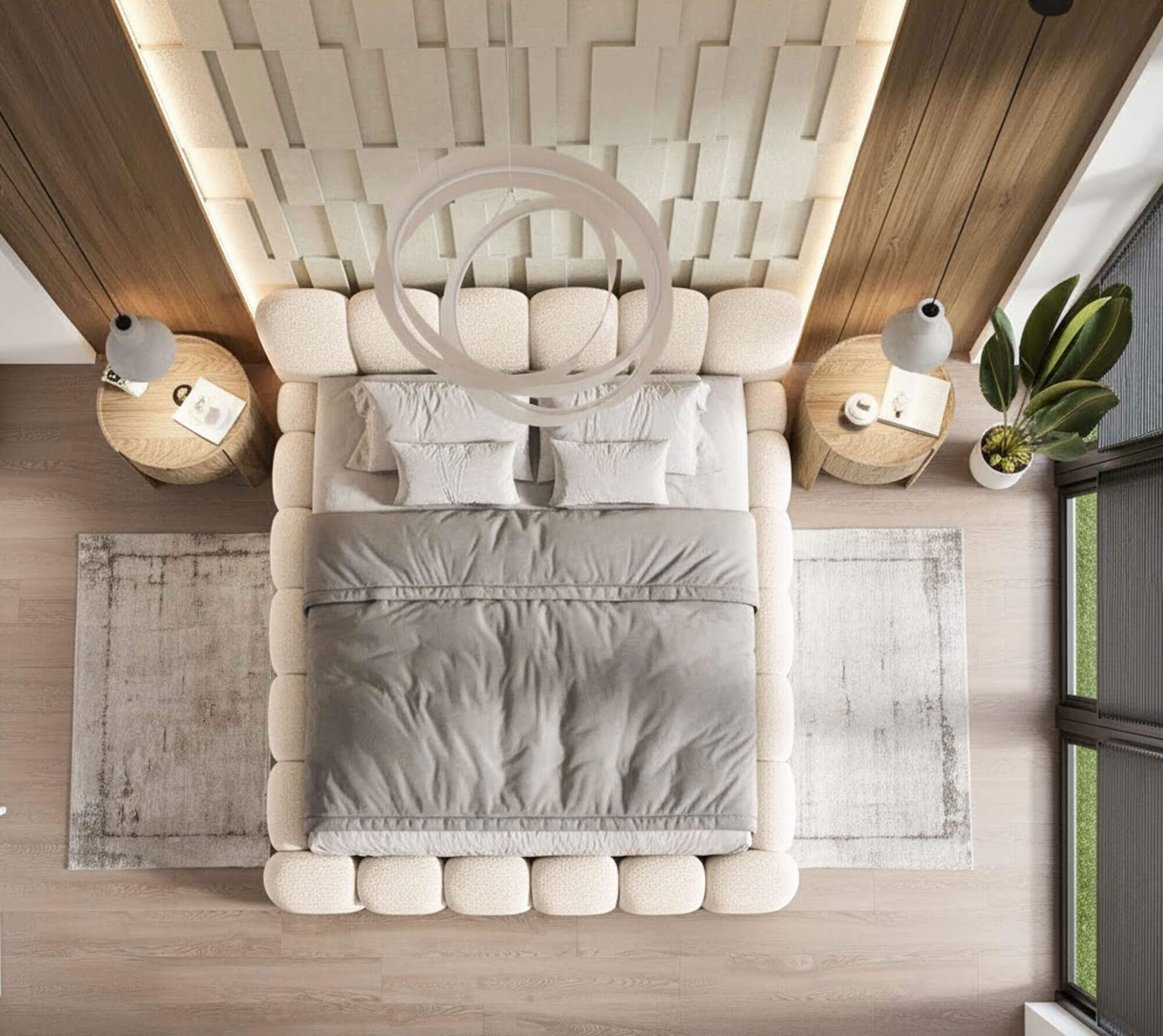 • Aksamitna tkanina boucle dodająca przytulności