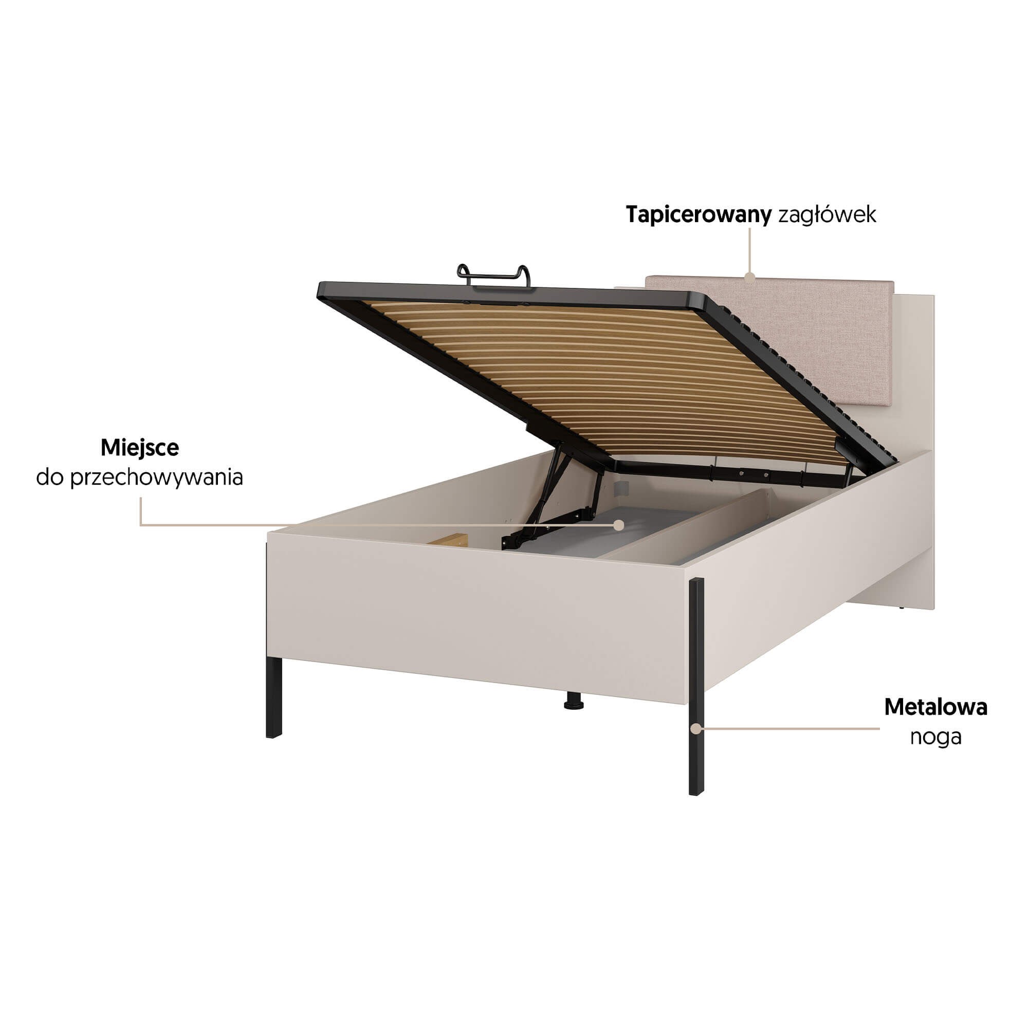 • Wyposażone w stelaż oraz pojemnik na pościel.