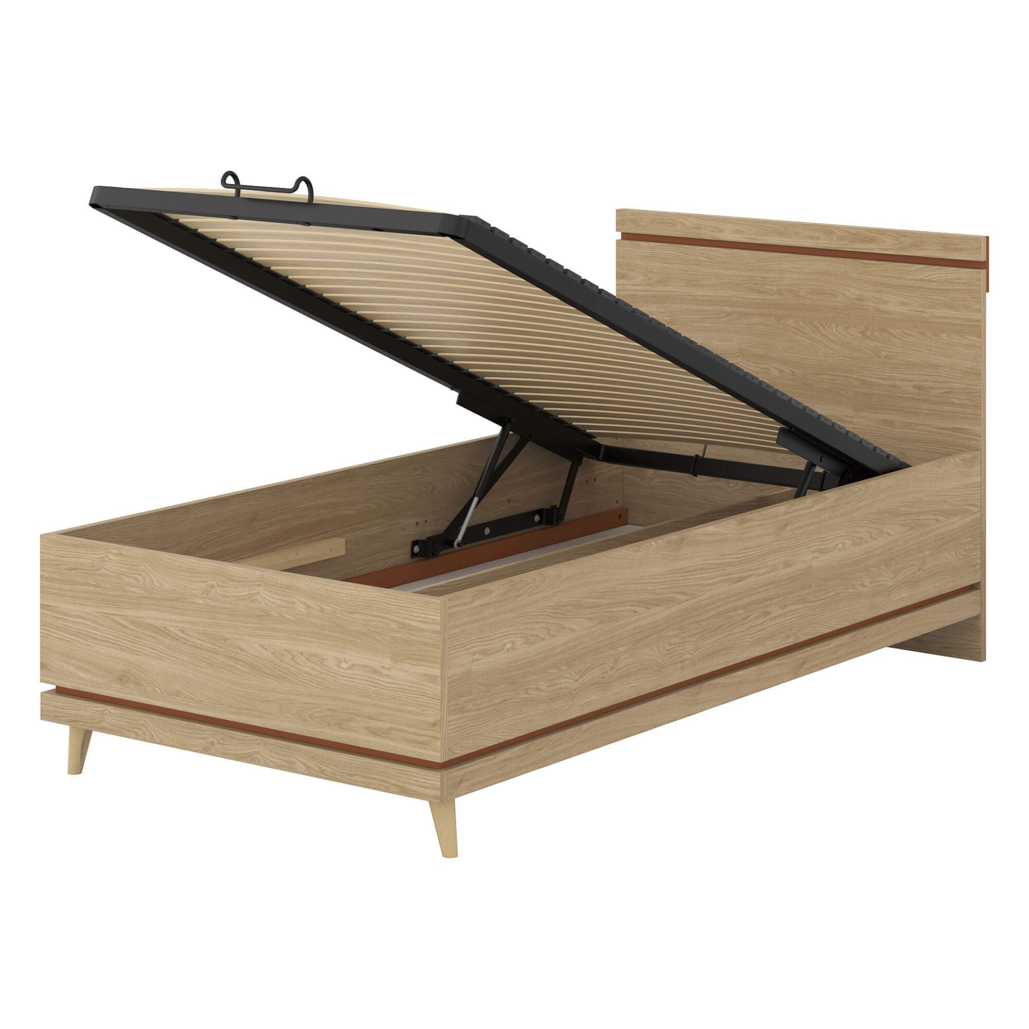 Łóżko z pojemnikiem 100 SCANDI | Dąb olejowany-ceglany