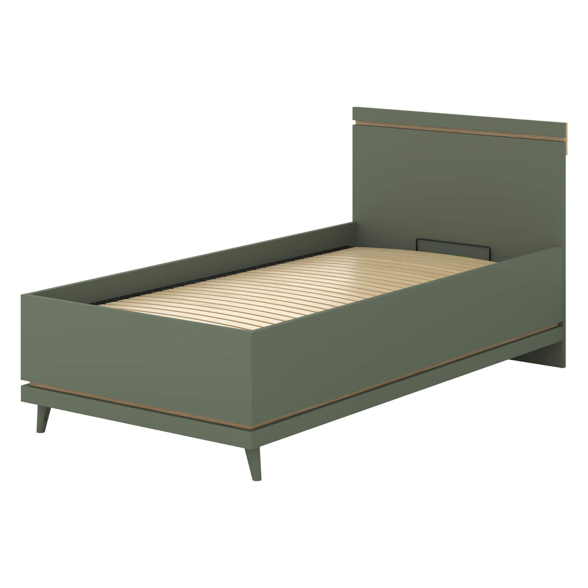 Łóżko z pojemnikiem 100 SCANDI | Zgaszona zieleń-dąb olejowany