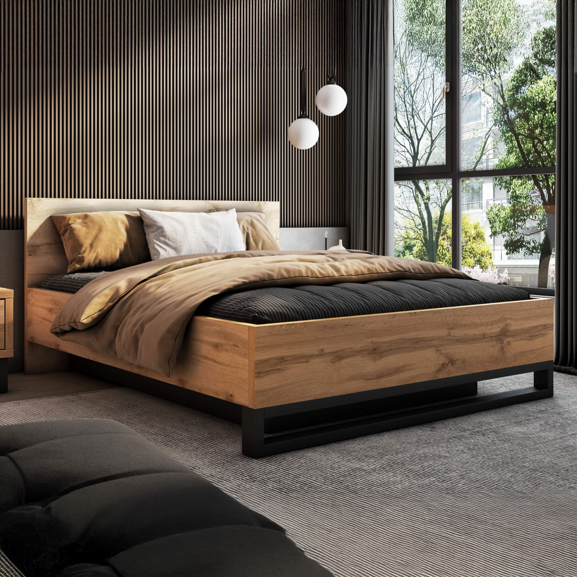 Wprowadź loftowy design do swojej sypialni z łóżkiem HALLE od MebliMWM. Ten wyjątkowy mebel łączy w sobie elegancki wygląd z surowym stylem, tworząc nowoczesne wnętrze, które zachwyci każdego miłośnika industrialnych aranżacji. Dzięki połączeniu drewna w kolorze dębu wotan z czarną, solidną konstrukcją łóżko HALLE doskonale wpisuje się w trendy nowoczesnych mebli, które stawiają na minimalizm oraz funkcjonalność.