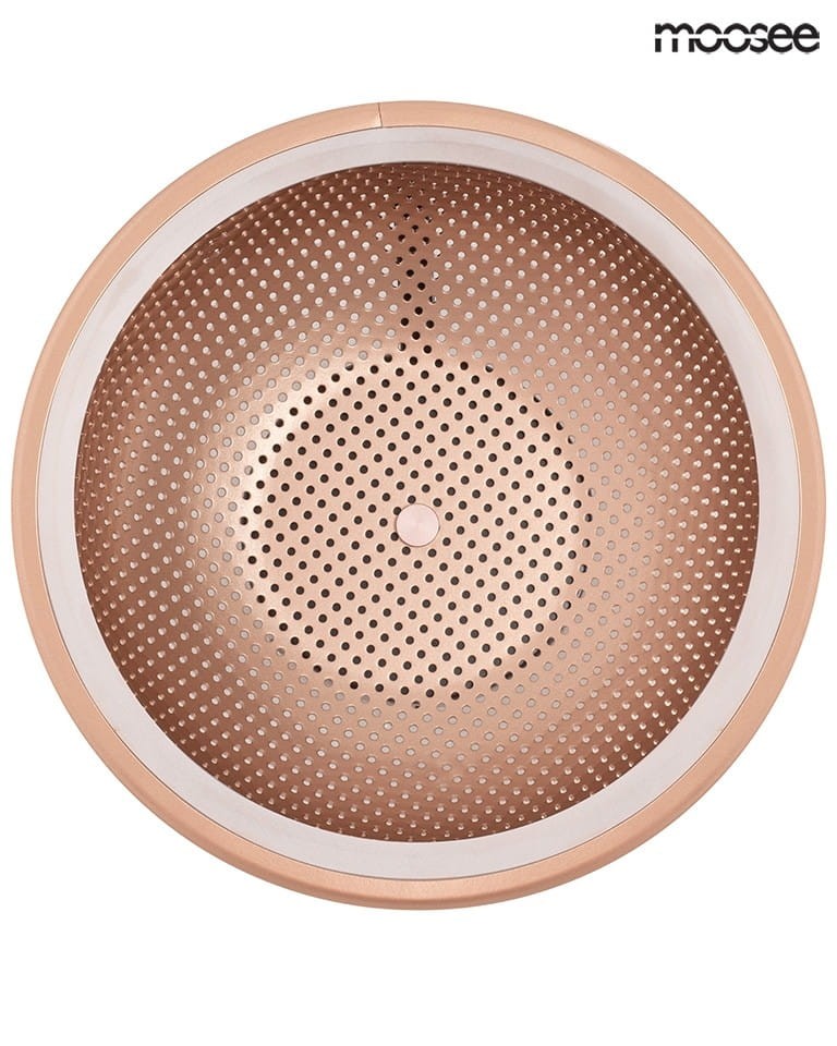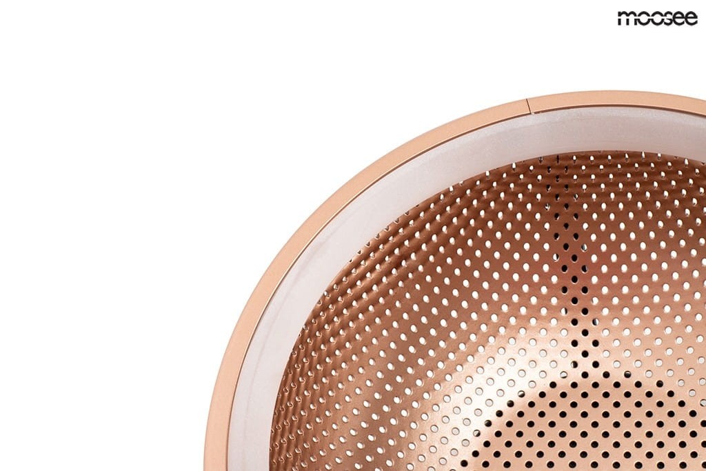 Oprawa wykonana jest z połączenia akrylu i aluminium w miedzianym kolorze. Ciepłe światło rozświetla matowy klosz, a ażurowe wykończenie tworzy niesamowity efekt świetlny. Faro odnajdzie się w aranżacjach nowoczesnych, jak i loftowych.