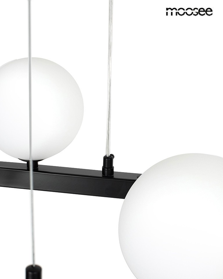 Lampa, która zachwyca nowoczesną formą i subtelną elegancją. Konstrukcja ze stali została wzbogacona o efektowne, kuliste klosze z mlecznego, białego szkła, które pięknie rozpraszają światło, tworząc przytulną i nastrojową atmosferę. Kontrast pomiędzy matową czernią a bielą kloszy nadaje całości wyrafinowanego charakteru.