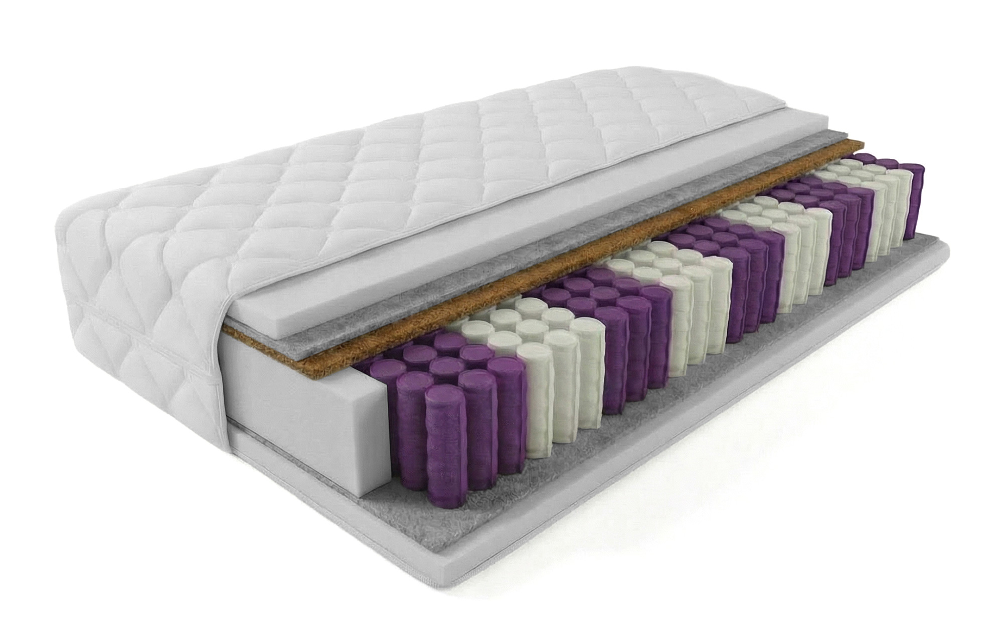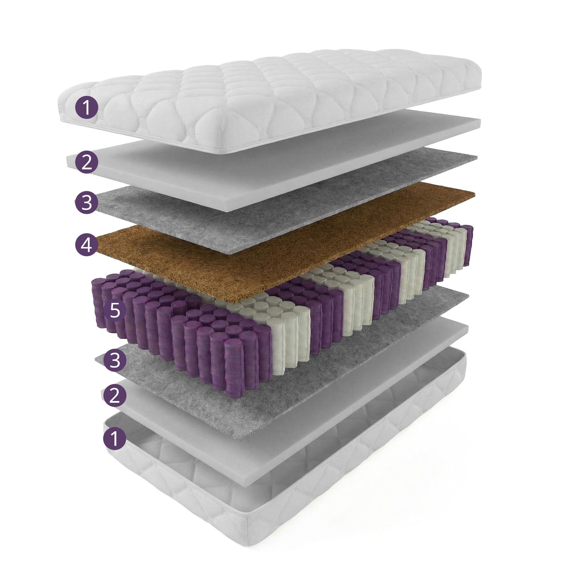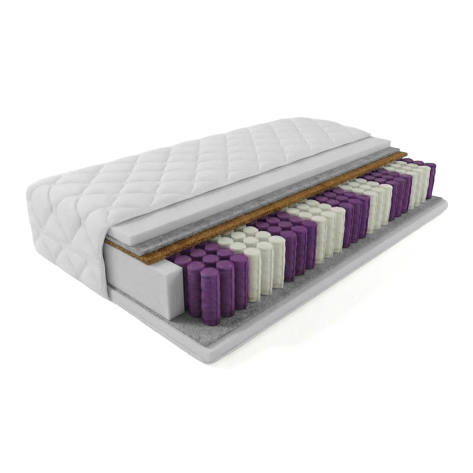 4. Kokos lateksowany - surowiec naturalny wykonany z włókna kokosowego wulkanizowanego naturalnym lateksem. Nie wydziela żadnych toksyn, ani szkodliwych substancji, które mogłyby niekorzystnie oddziaływać na skórę bądź drogi oddechowe. Warstwa kokosu nadaje twardość i wytrzymałość nie ujmując przy tym elastyczności. Pochłania wydzielany pot i wilgoć co w połączeniu ze strukturalnymi właściwościami włókien zapewnia idealną warstwę przewiewną dla materaca. Ma bardzo dobre właściwości termiczne, antyalergiczne i antygrzybiczne.