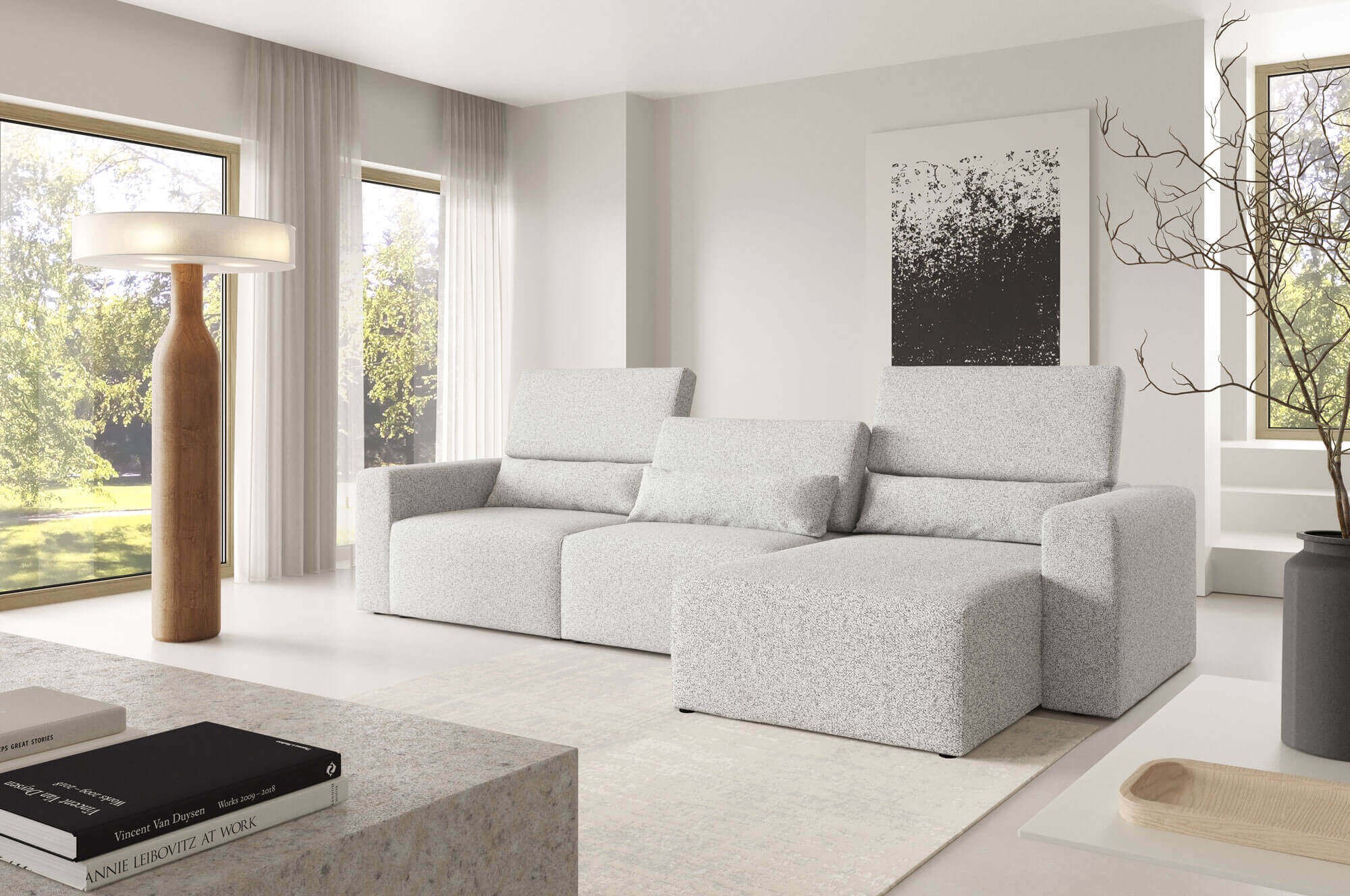 • Tapicerowany tył tkaniną umożliwiający ustawienie mebla w centrum